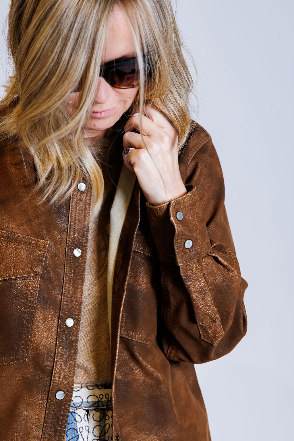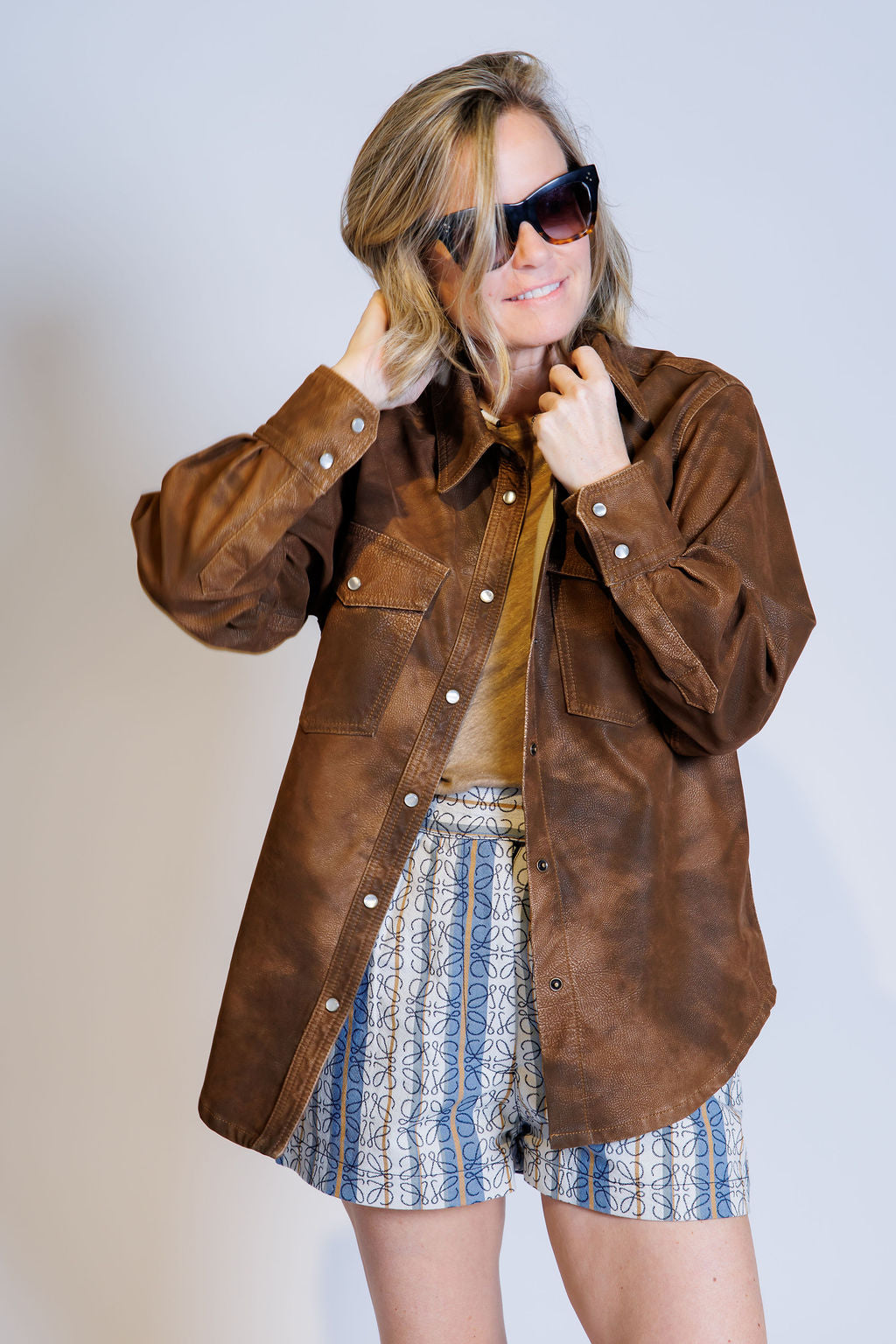 Dark Tobacco KARIMA Faux Leather Shirt / ISABEL MARANT ETOILE - Size 36