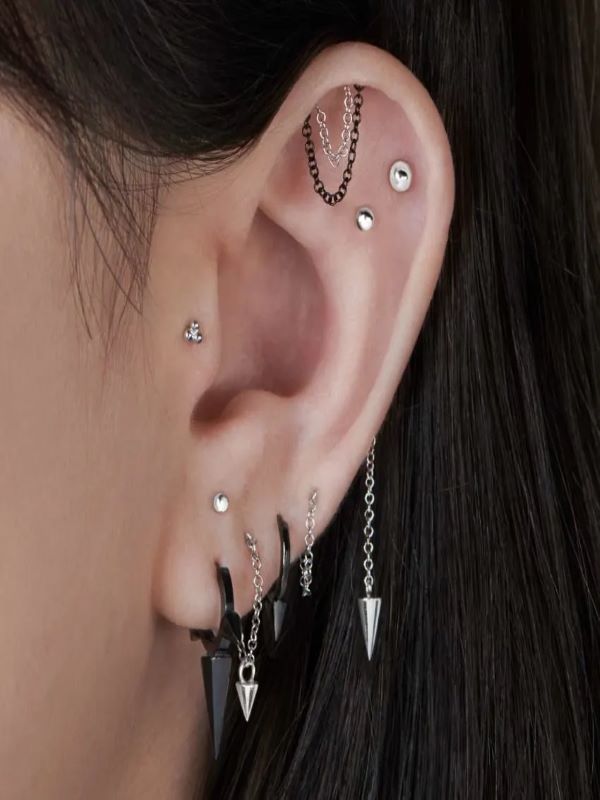 Double Chain Drape with White and Sleek Black Gold / MARIA TASH