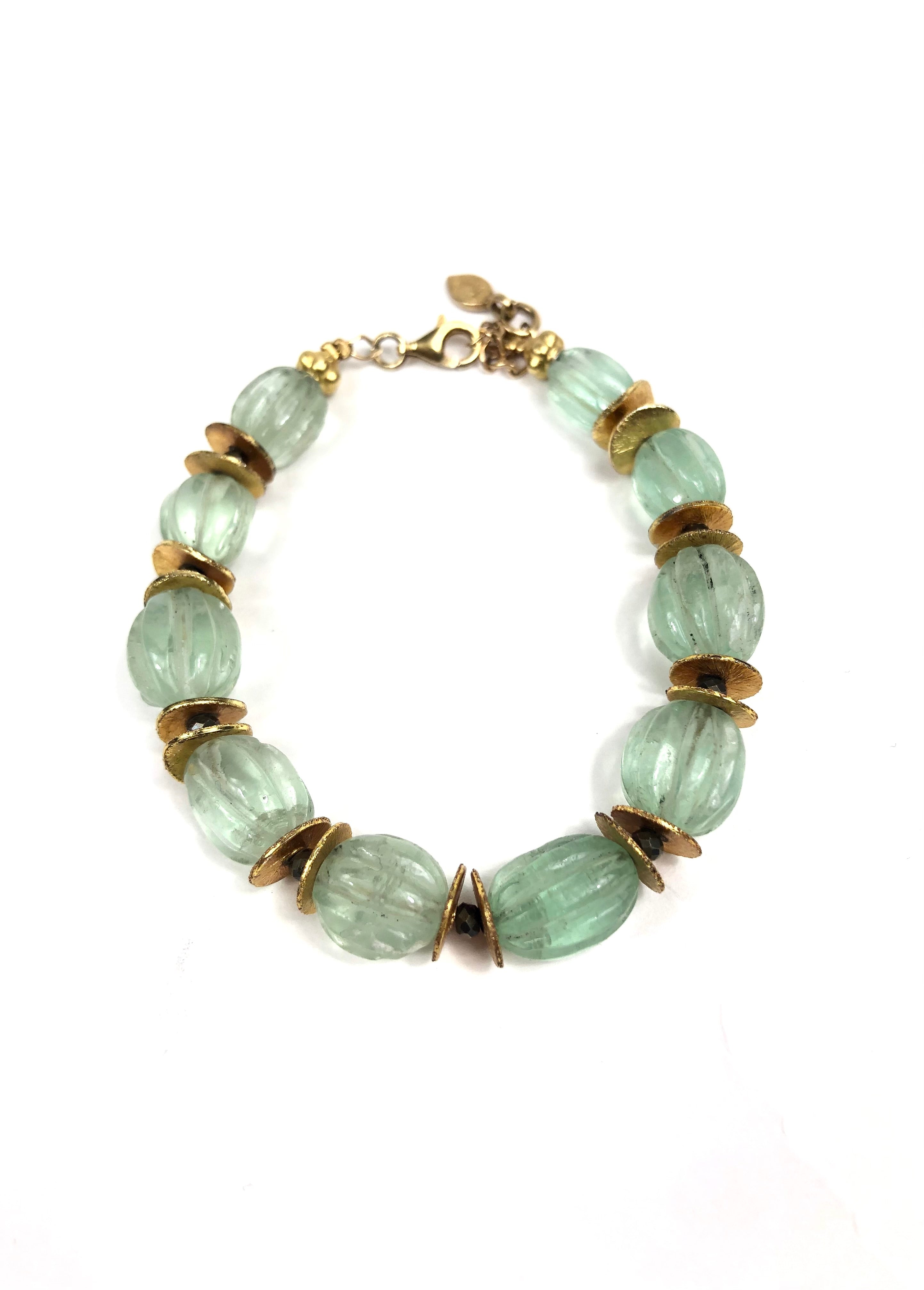 Fluorite Beads and Pyrite Stones Gold Plated Bracelet / BY SHIREL - One Size