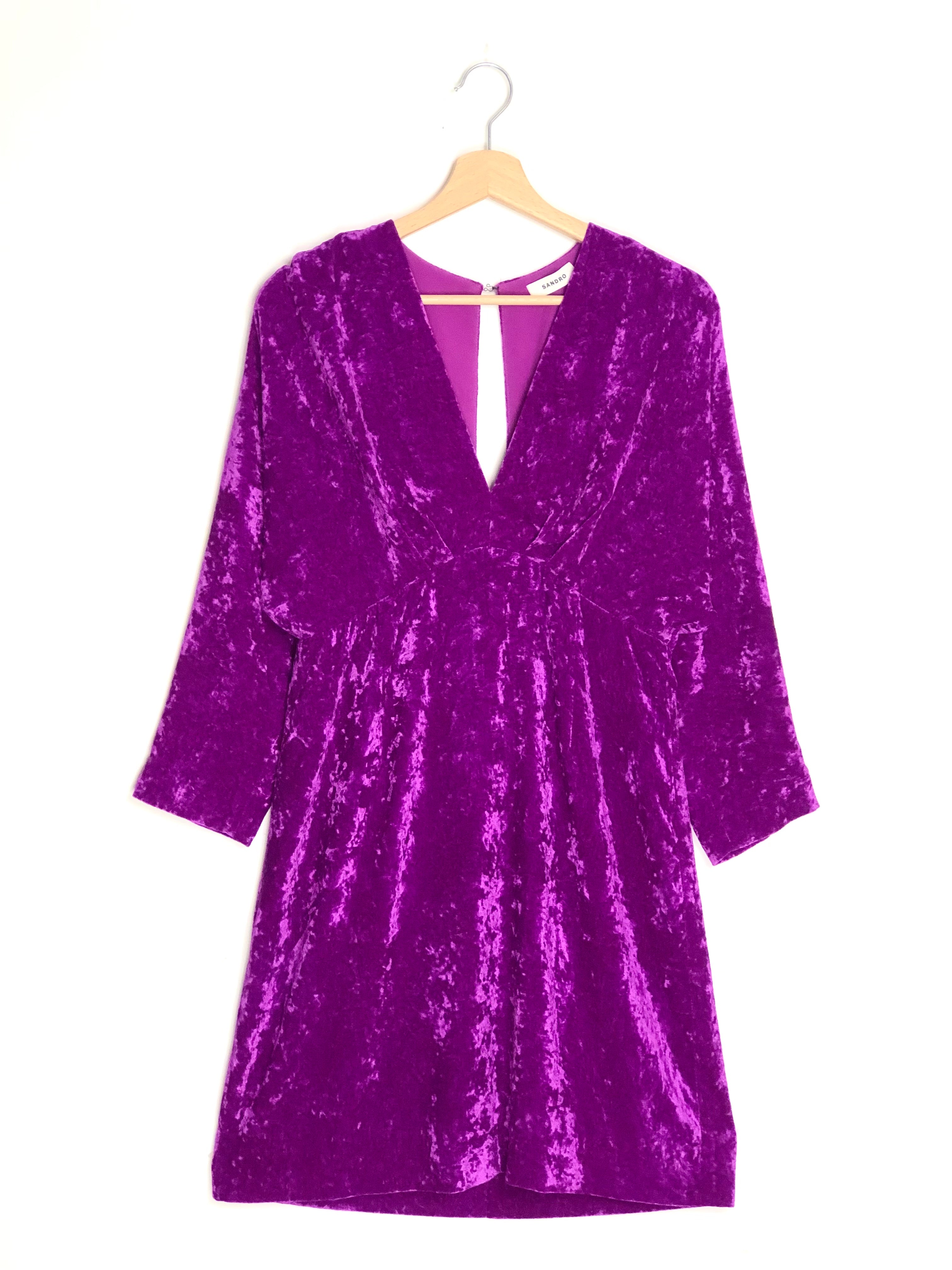 Fuchsia Pink Crushed Velvet Mini Dress / SANDRO - Size 38