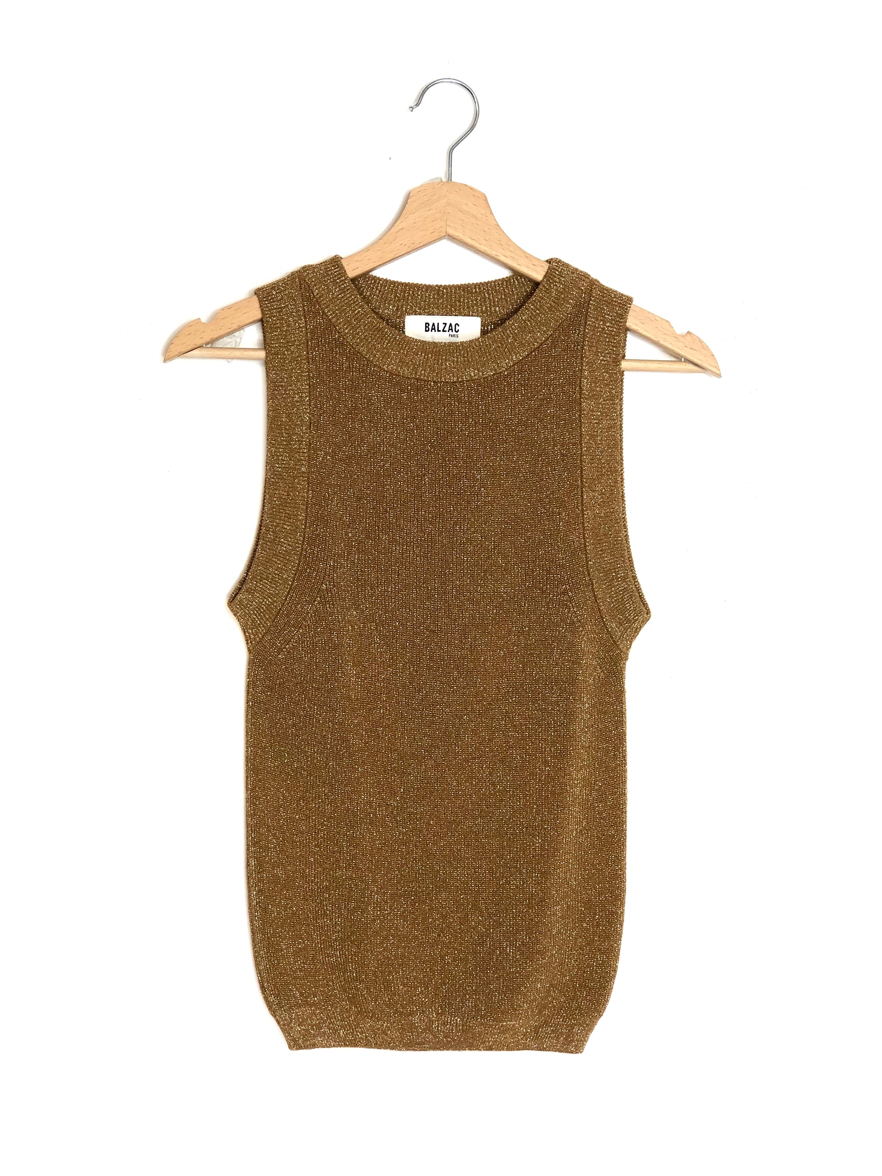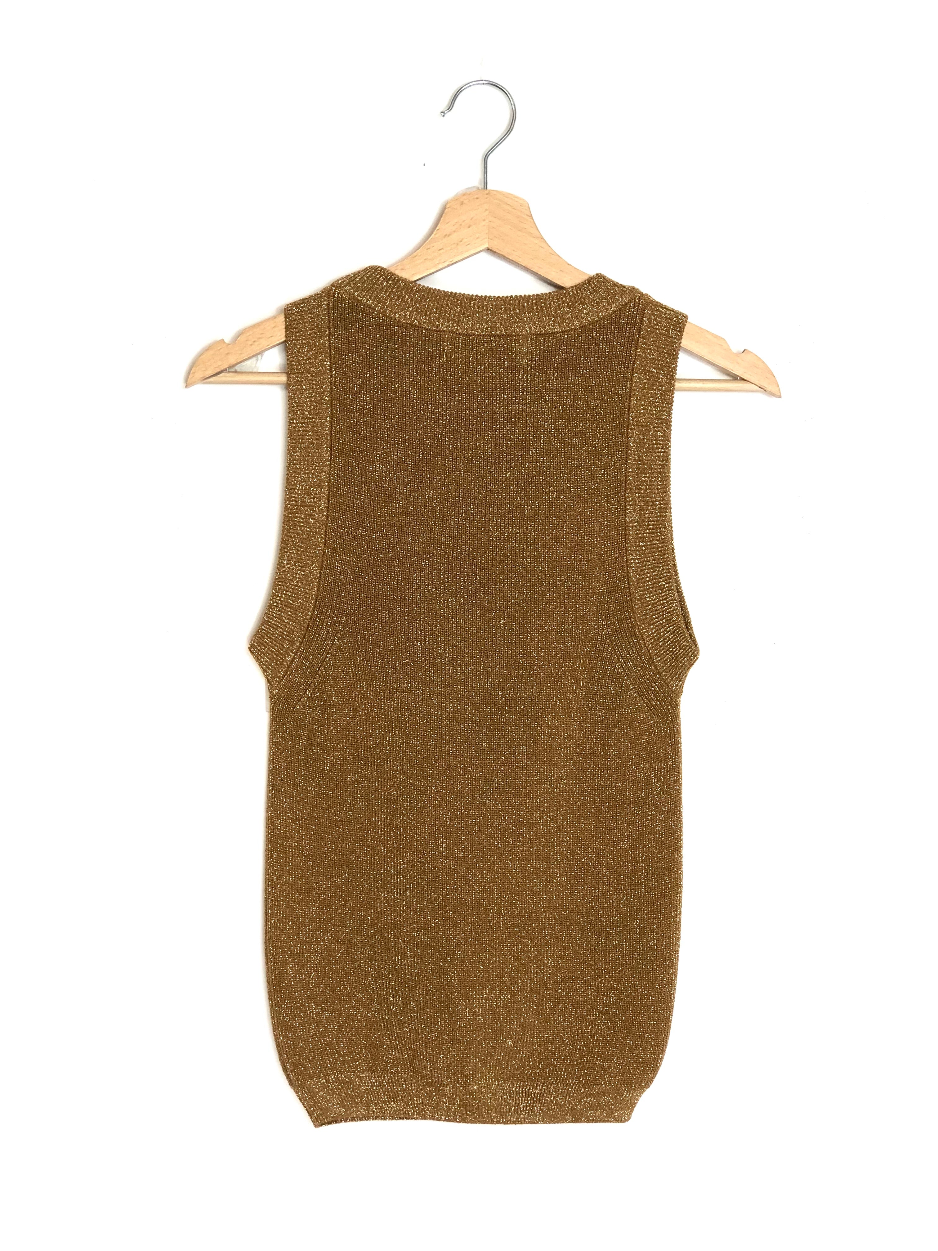 Gold KAHN Shiny Knitted Sleeveless Top / BALZAC PARIS - Size XS