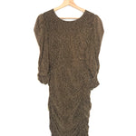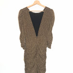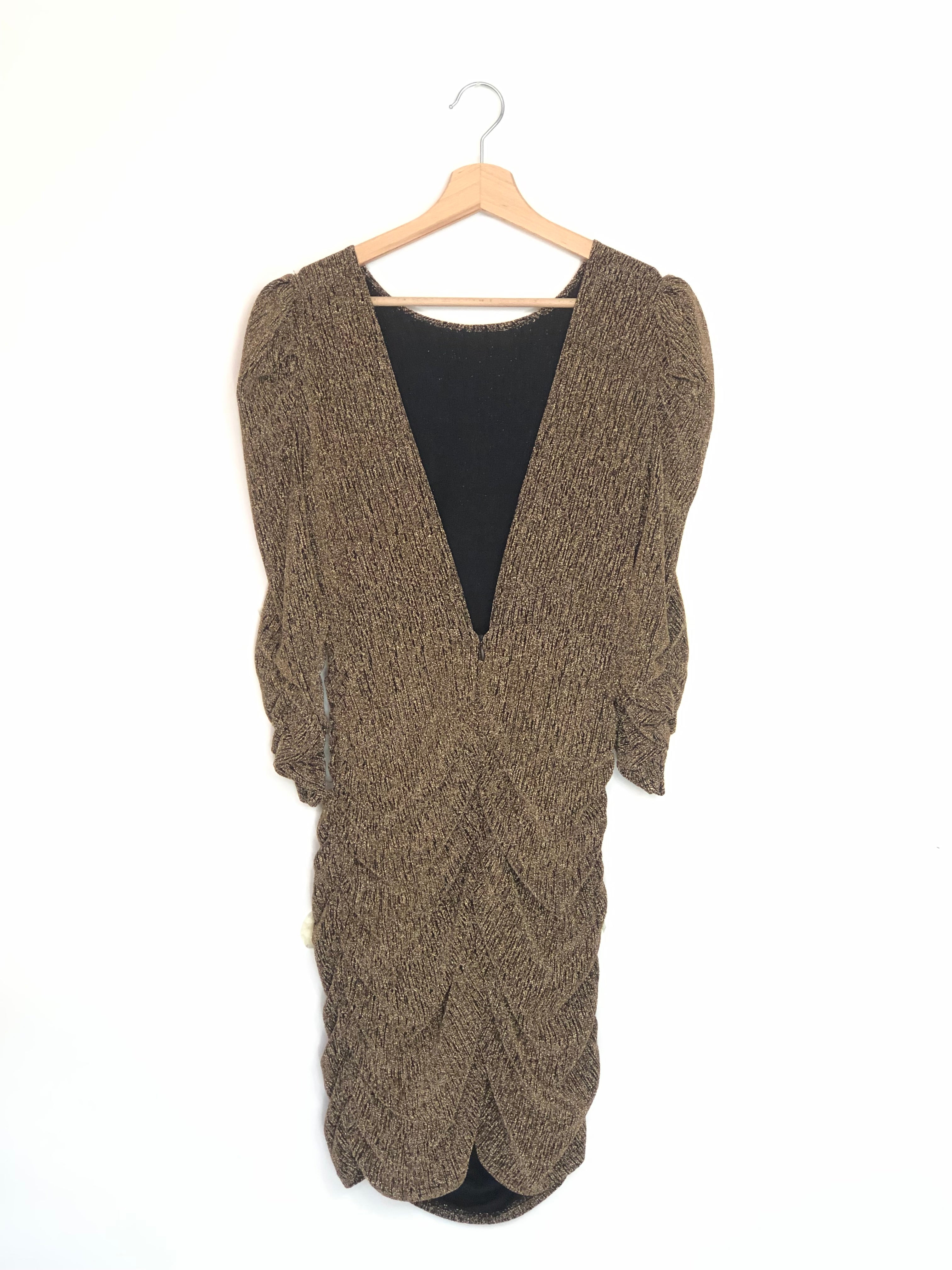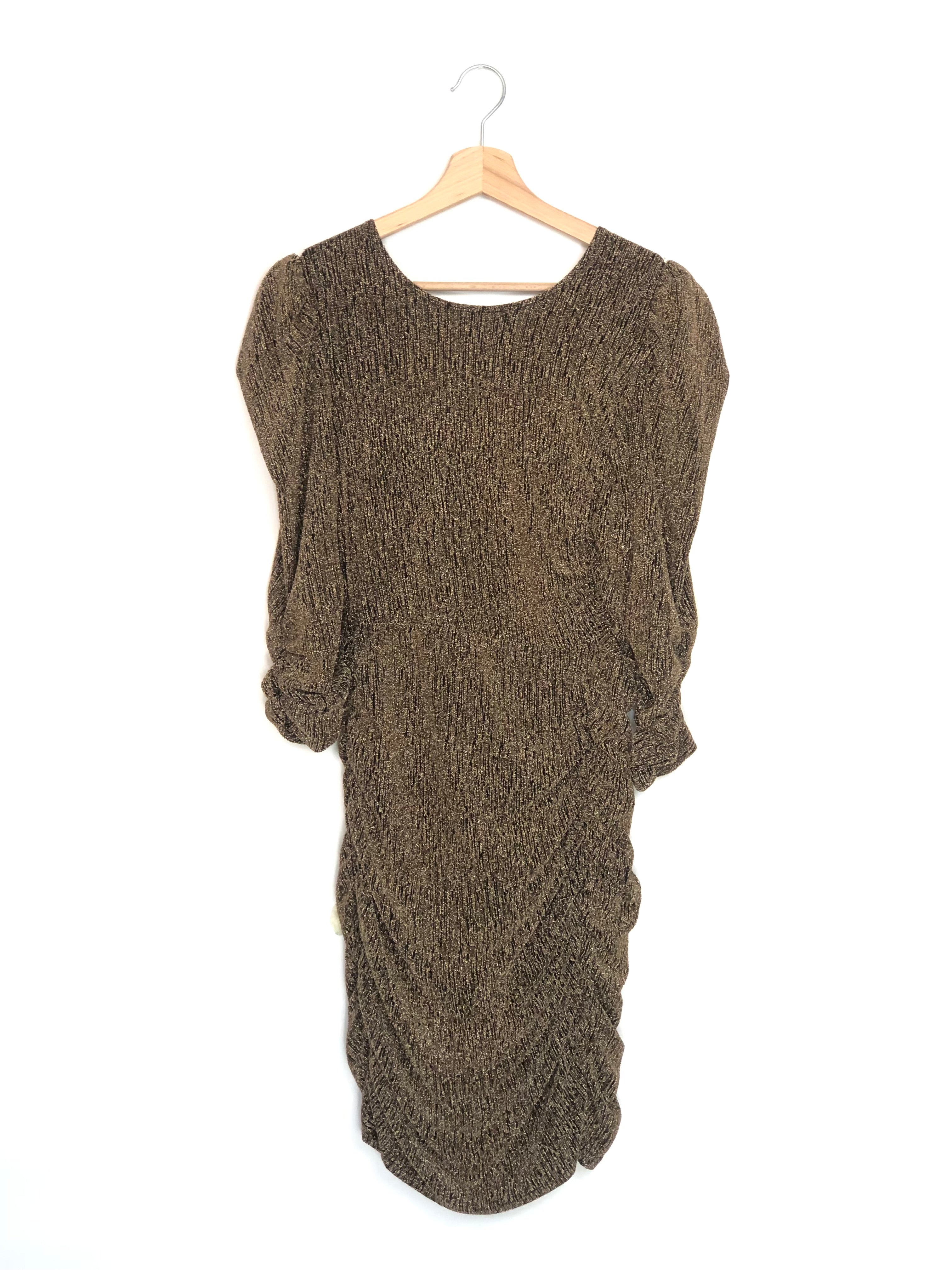 Gold Metallic Puffed Sleeve Open Back Midi Dress / OPULLENCE - Size S