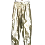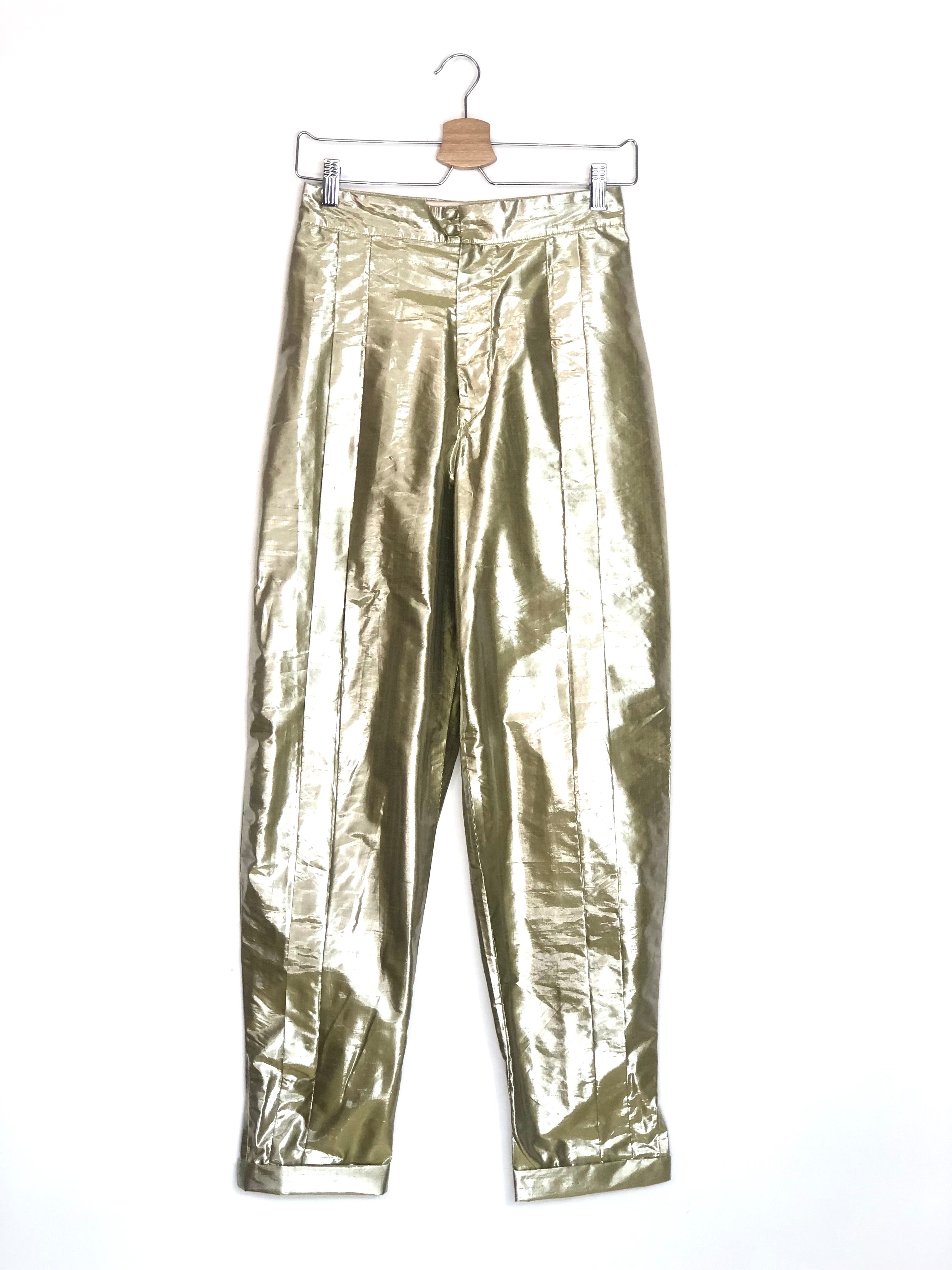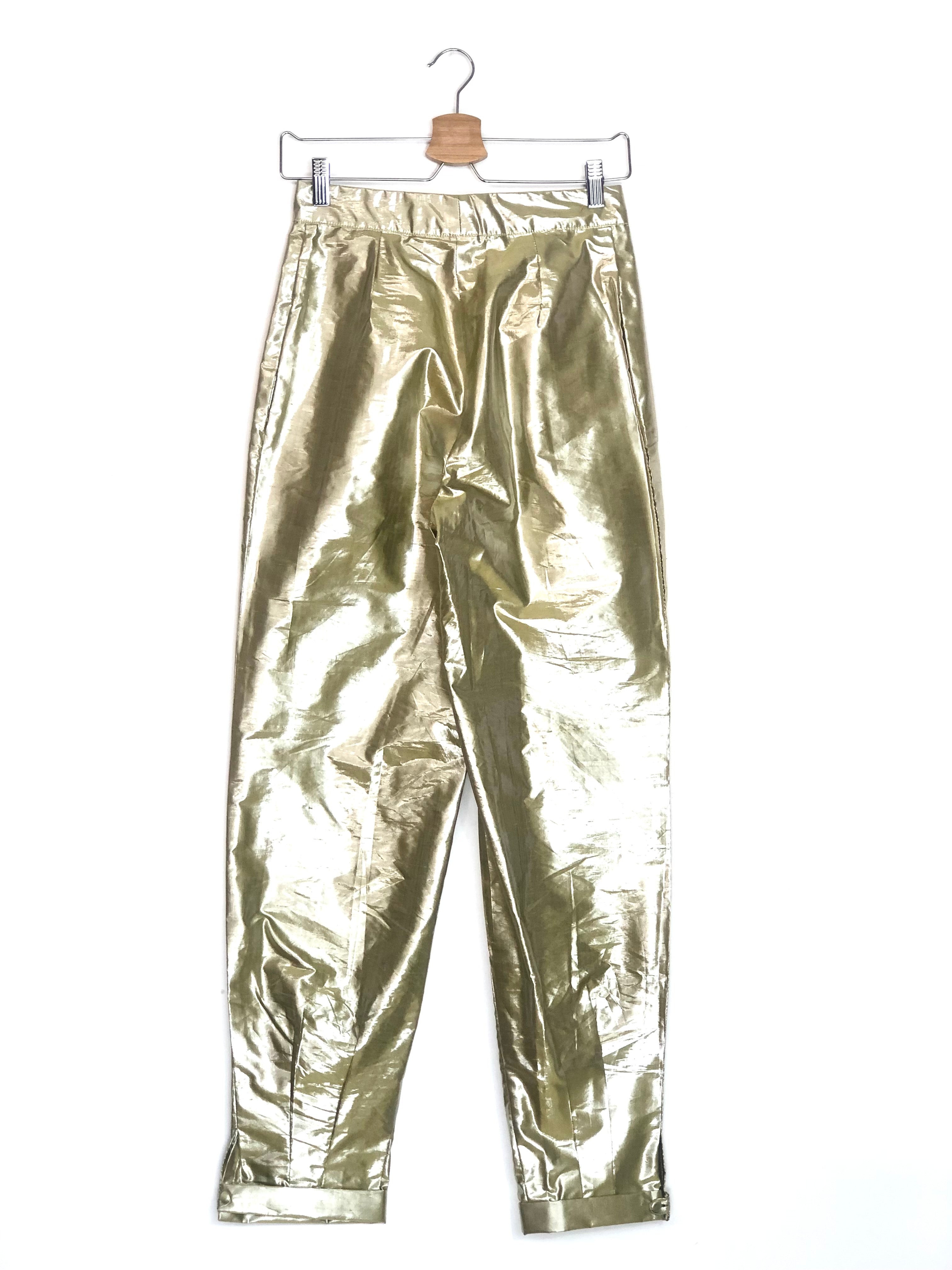 Gold Metallic Silk High Rise Pants / LUKHANYO MDINGI - Size 36