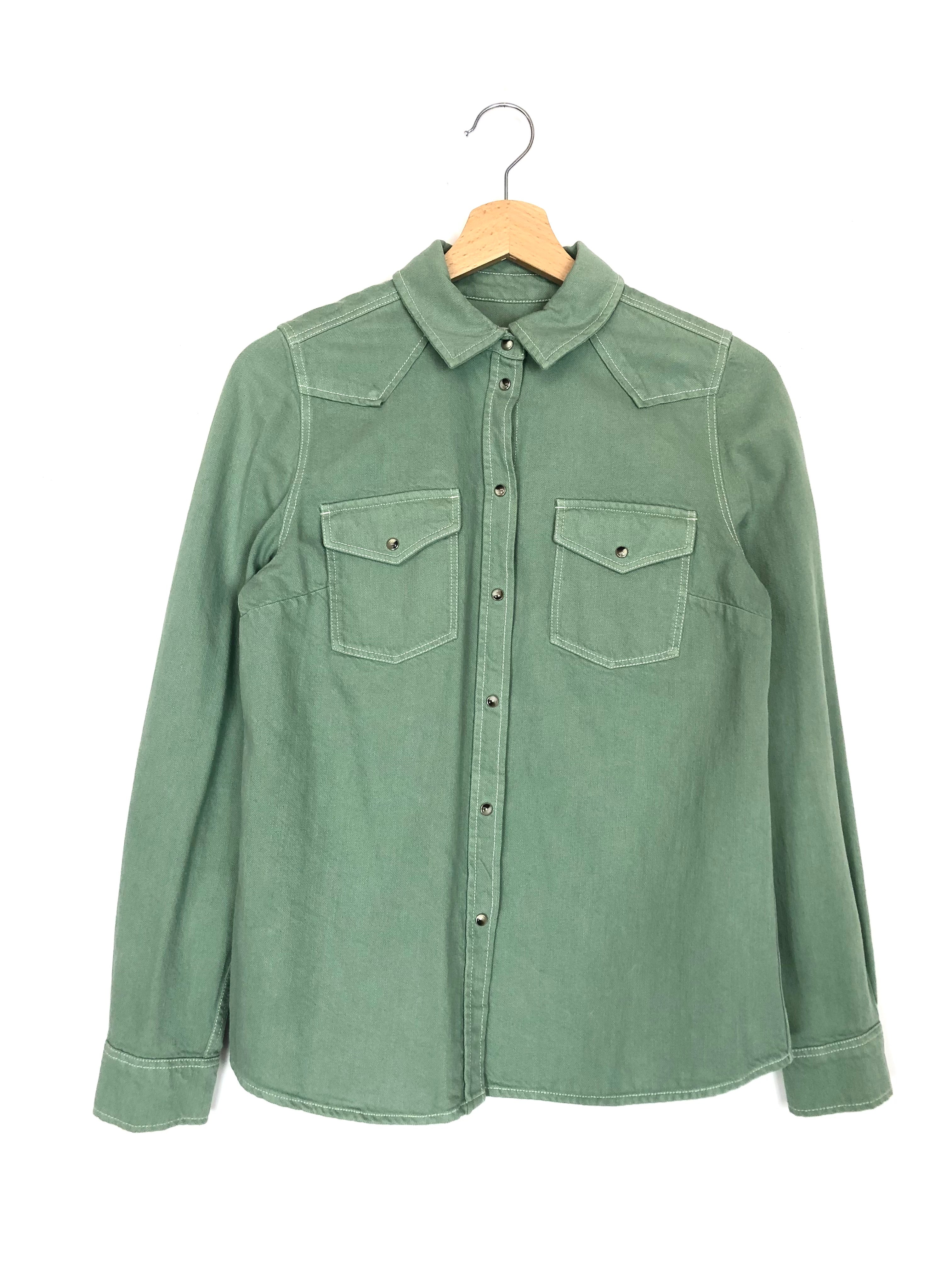 Green Denim SERVANNE Front Snaps Shirt / SEZANE - Size 34