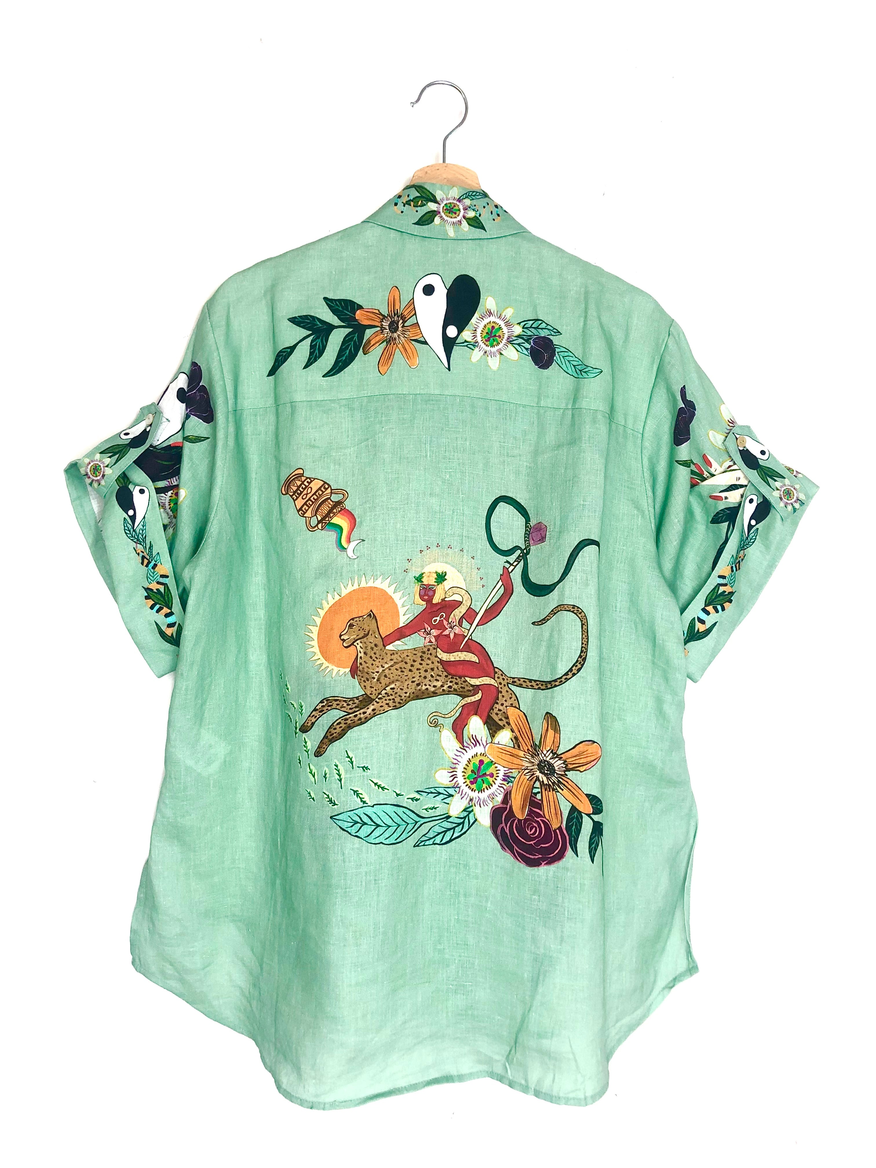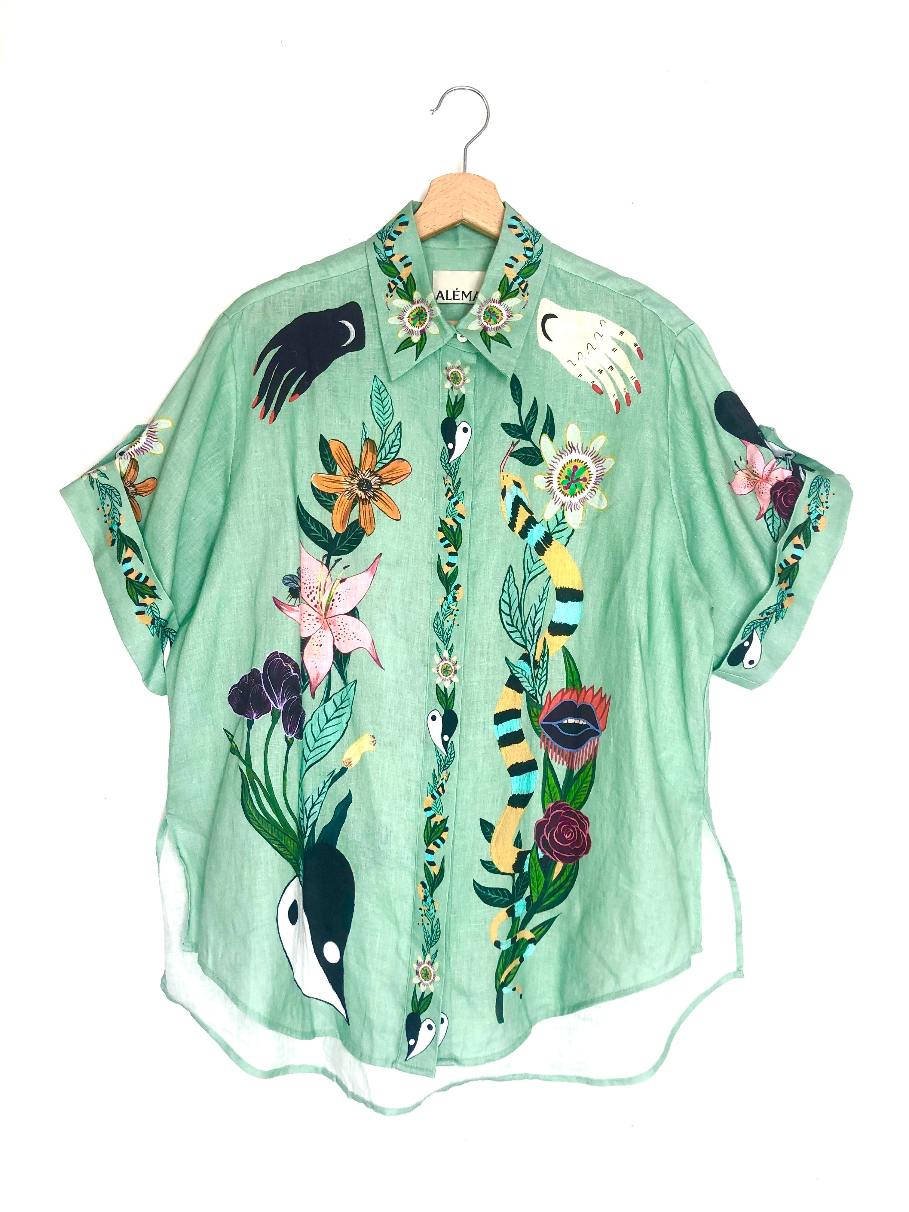 Green MEGAN Printed Oversized Linen Shirt / ALEMAIS - Size US 4