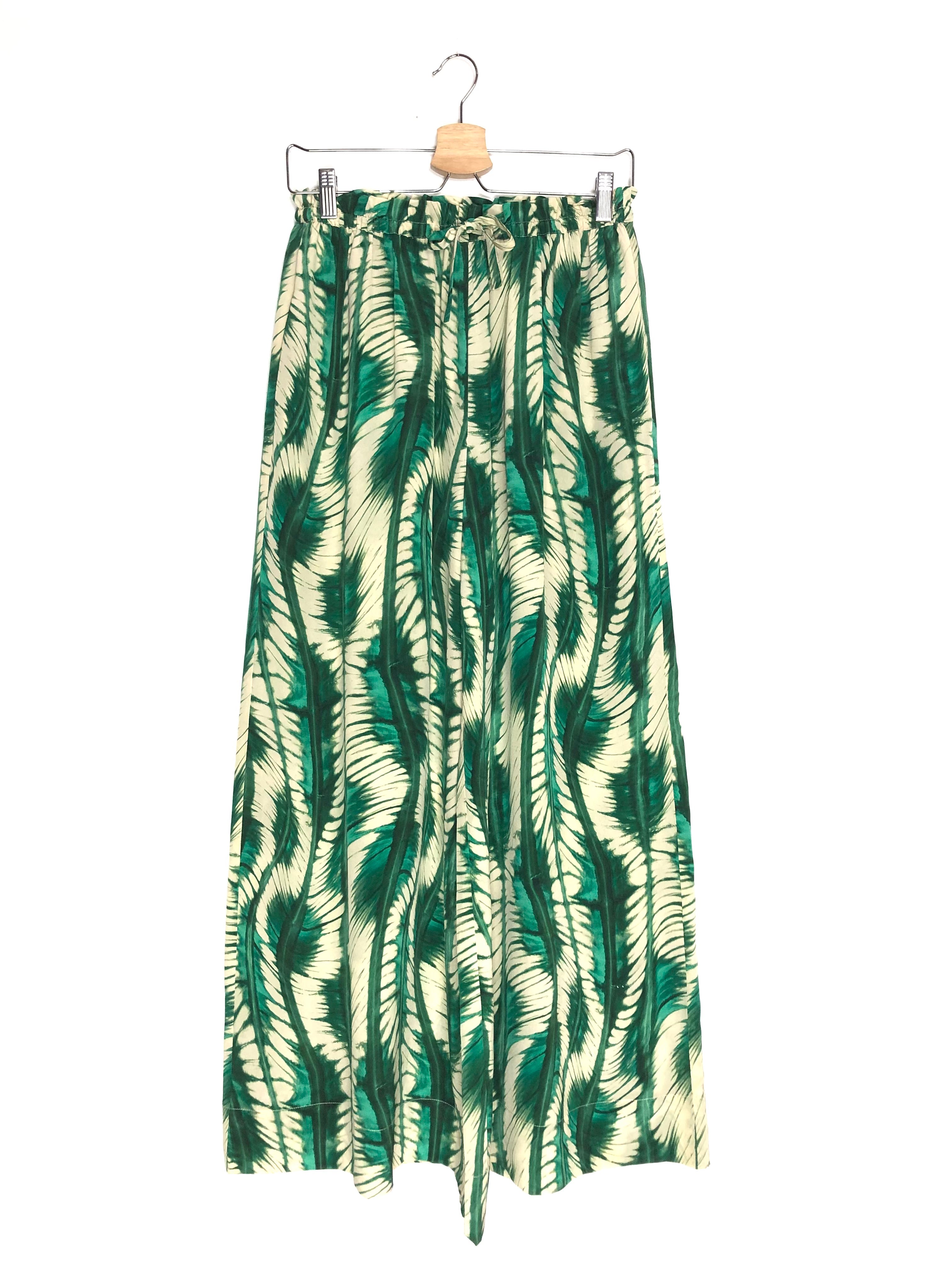 Green SAWYER Printed Silk Wide Leg Pants / ULLA JOHNSON - Size US 2