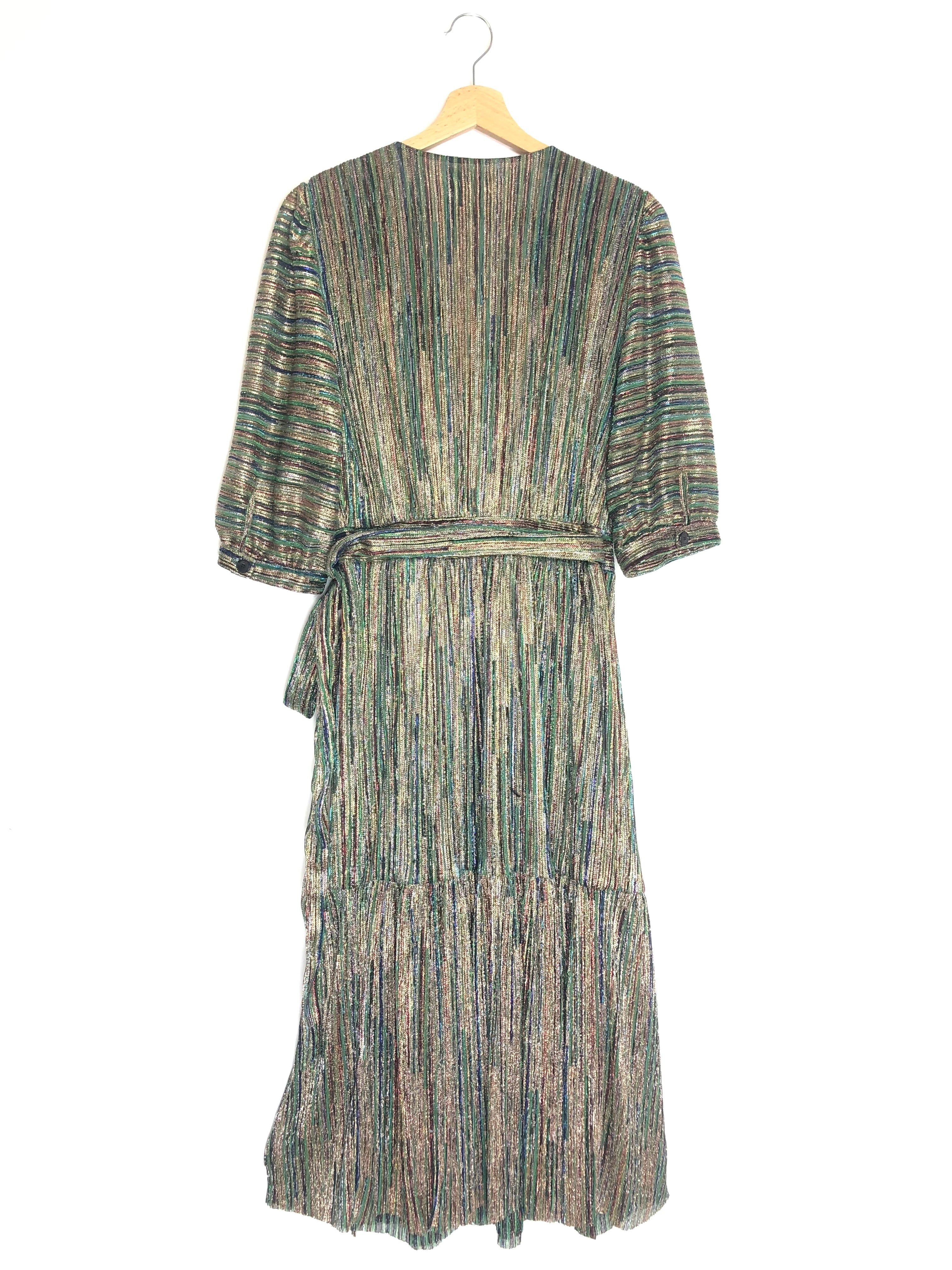 Green/Gold Multicolor Lurex STAR Wrap Midi Dress / BA&SH - Size 2