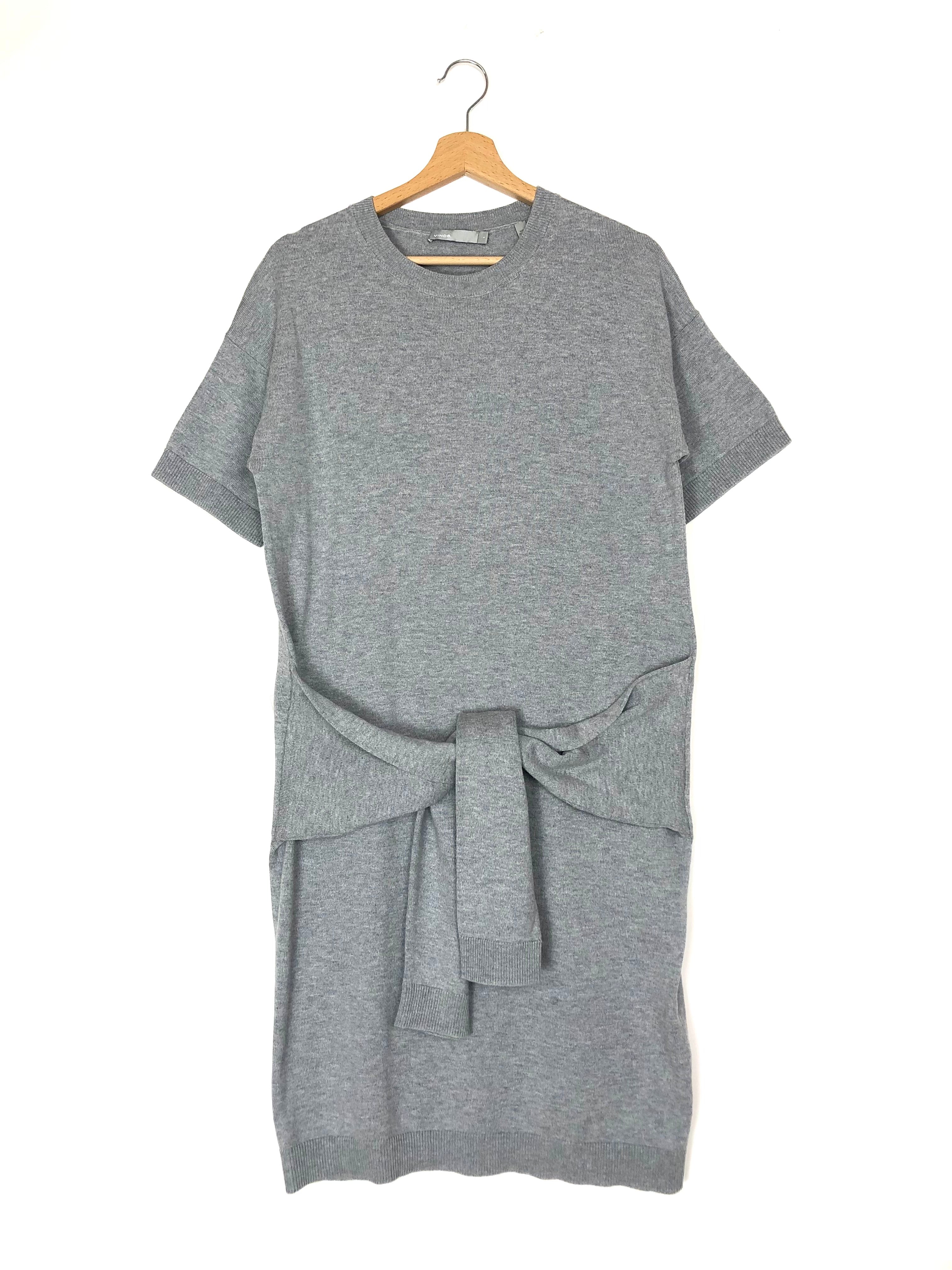 Grey Knot Detail Short Sleeves Dress / VINCE - Size S