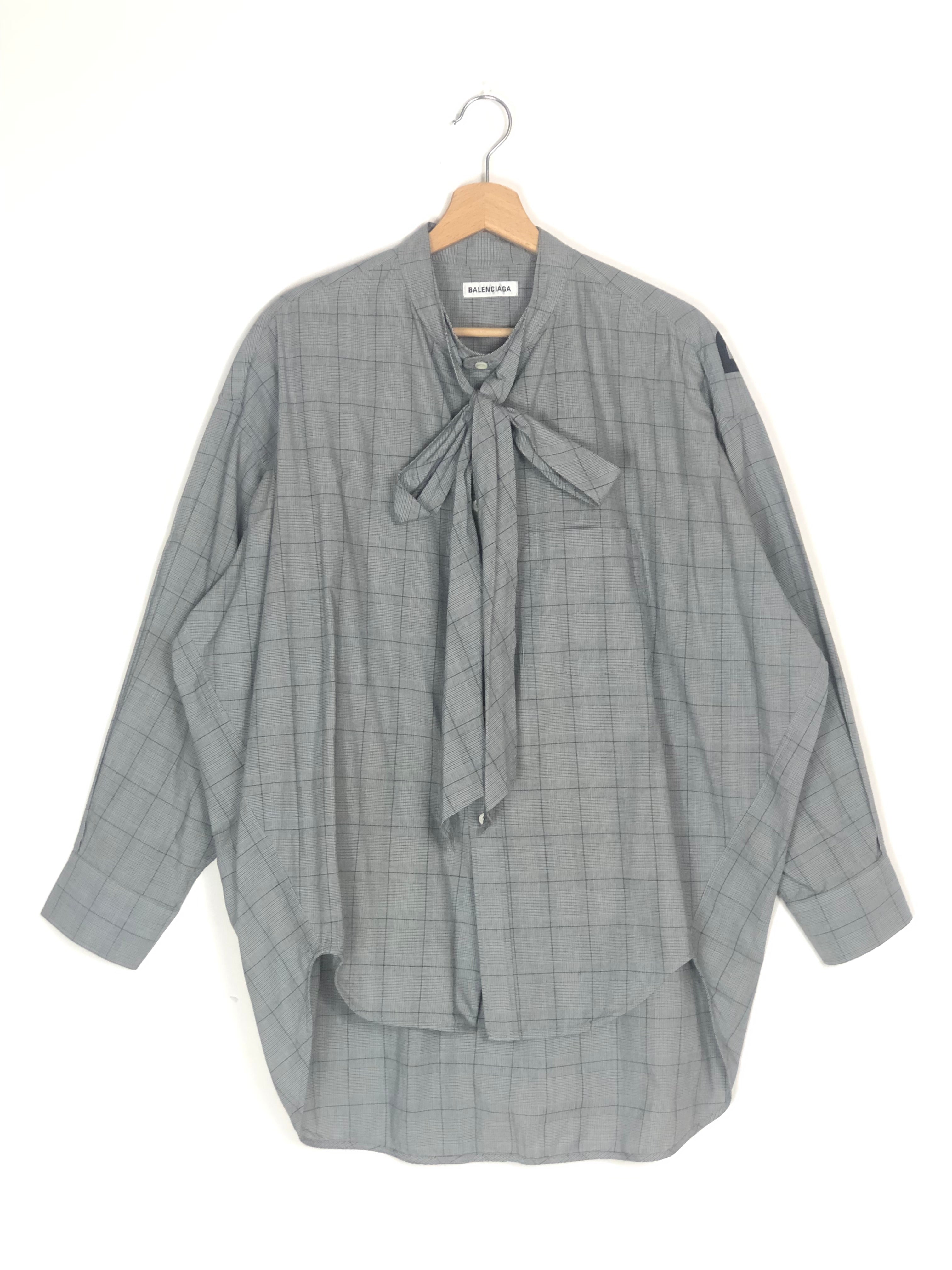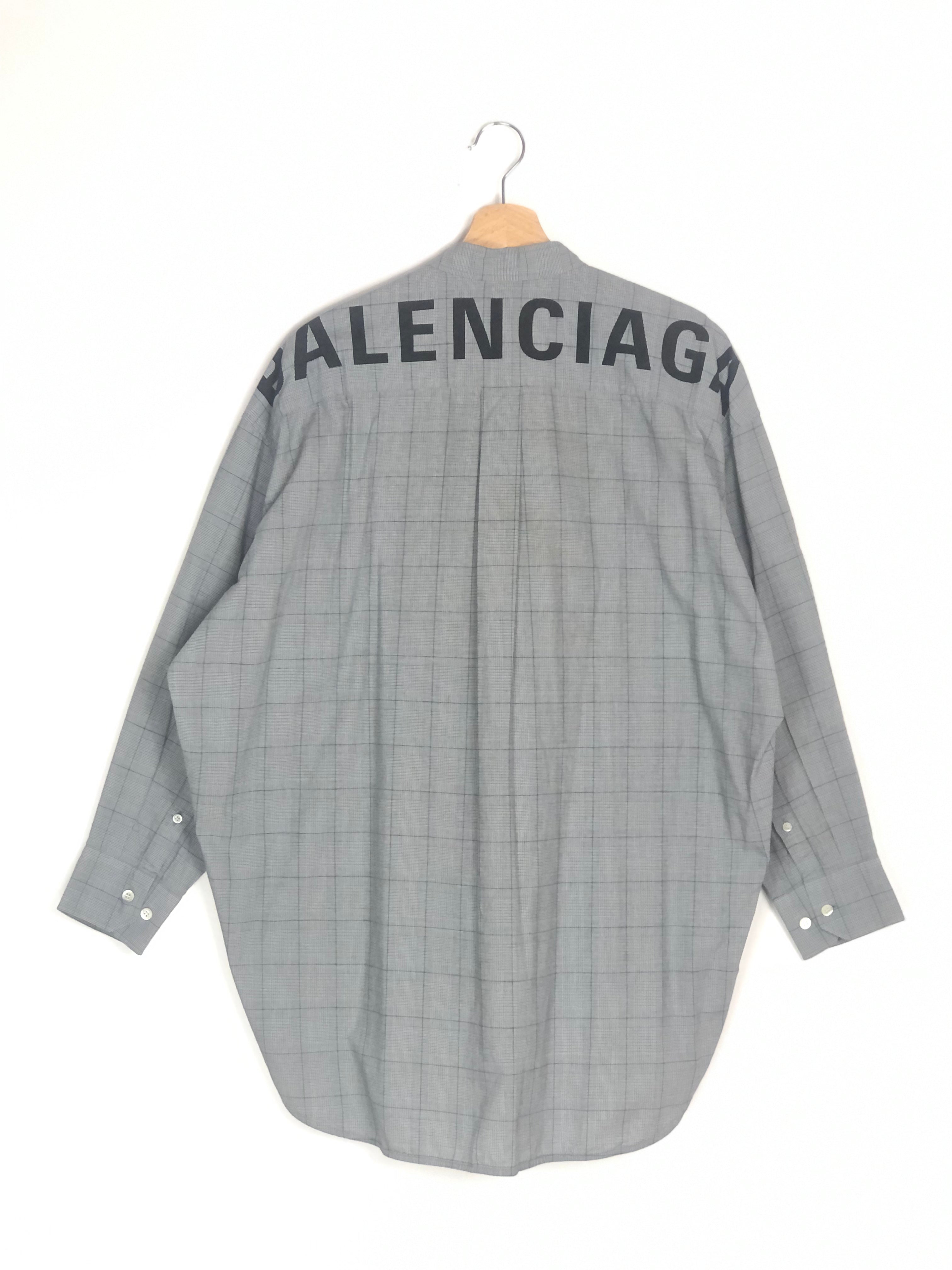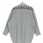 Grey Prince of Wales Logo Cotton Poplin Swing Shirt / BALENCIAGA