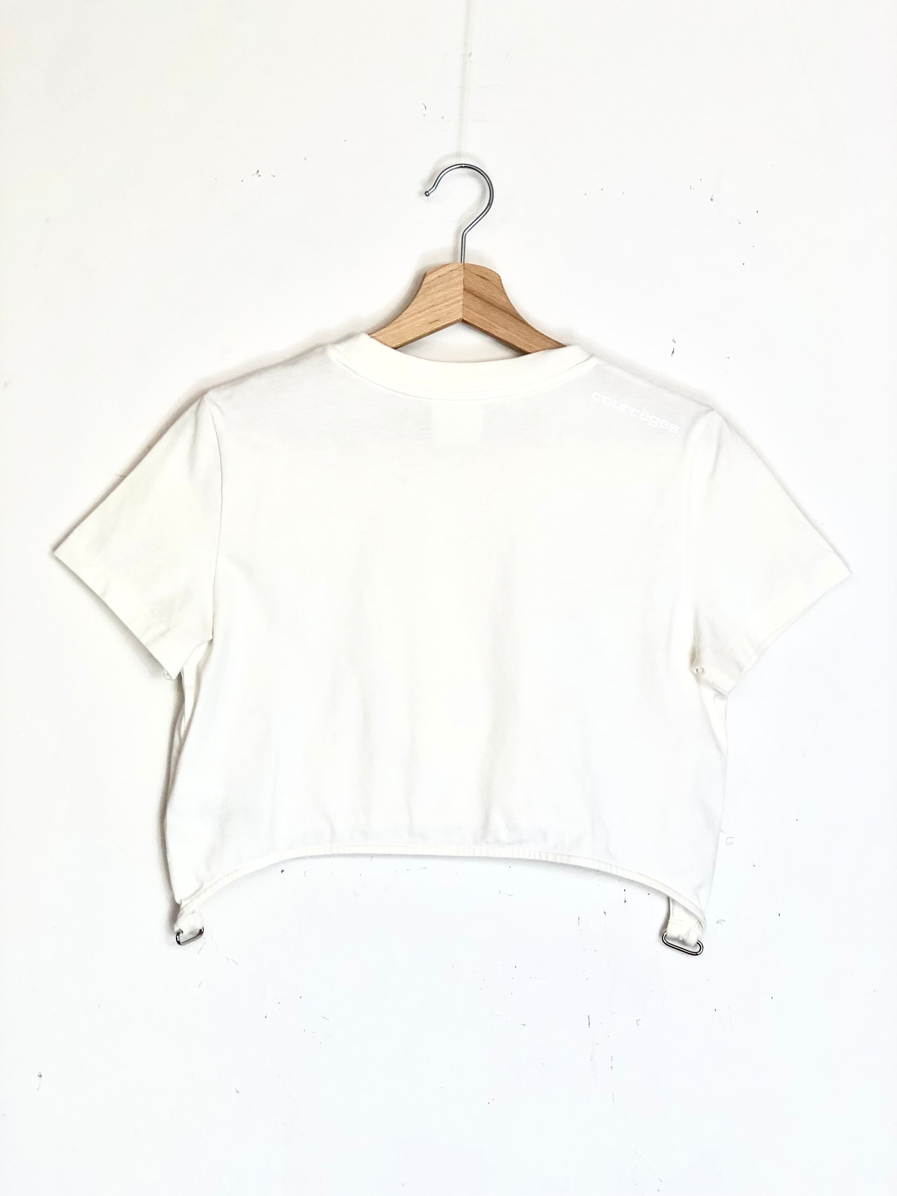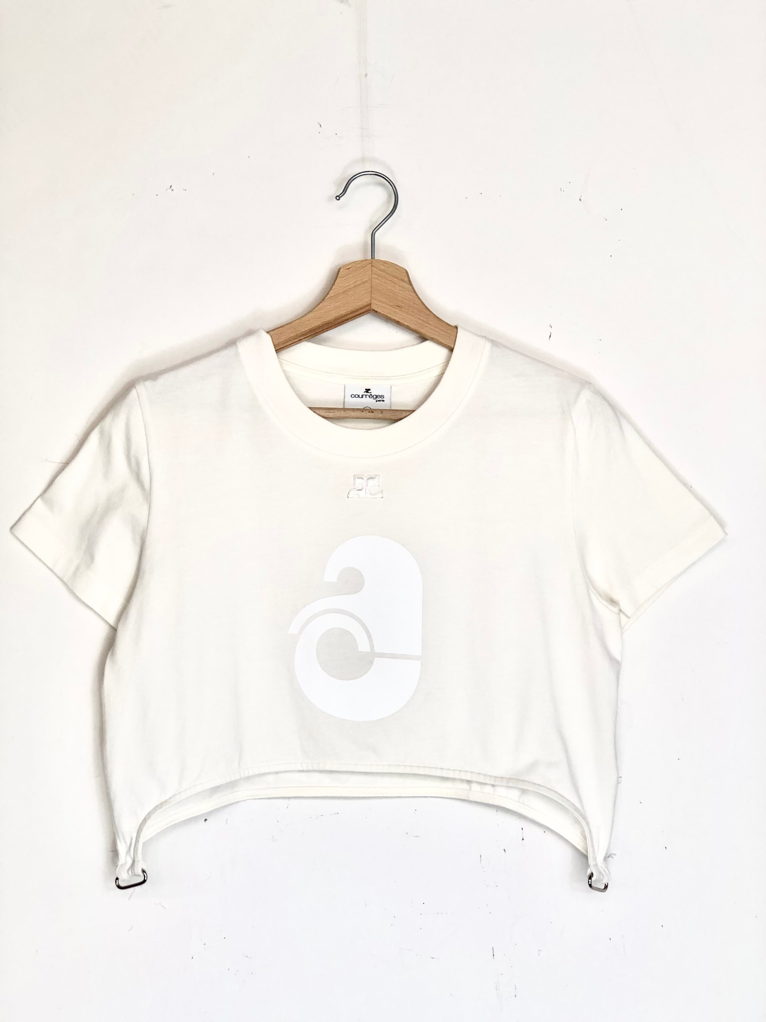 Ivory Cotton Logo Print Crop T-shirt / COURREGES - Size M
