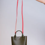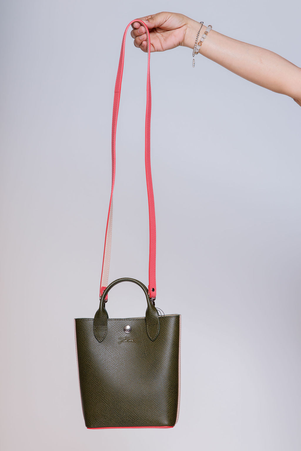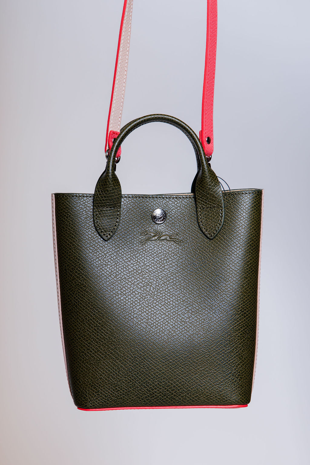Khaki and Pink EPURE XS Leather Tote Bag / LONGCHAMP