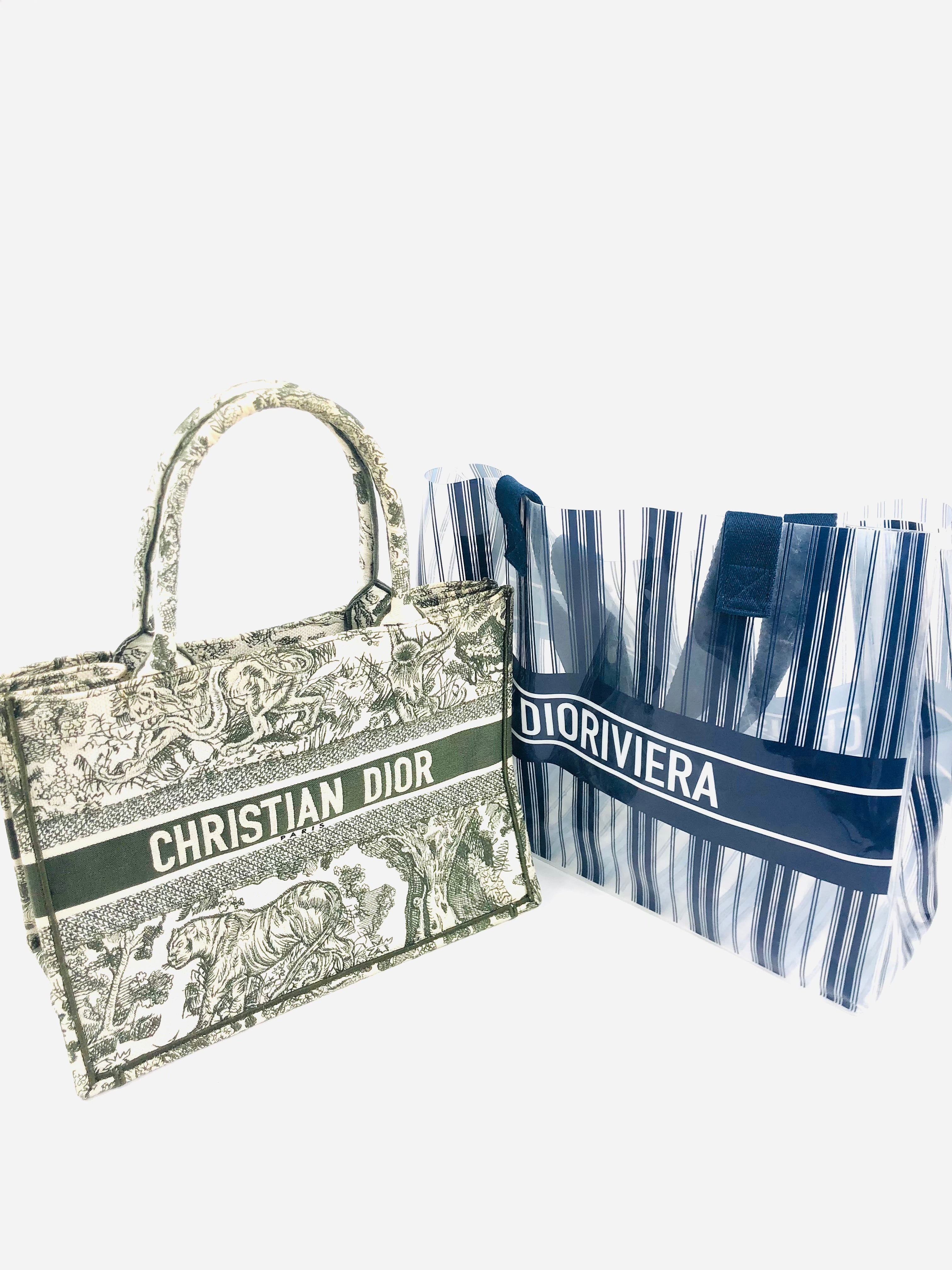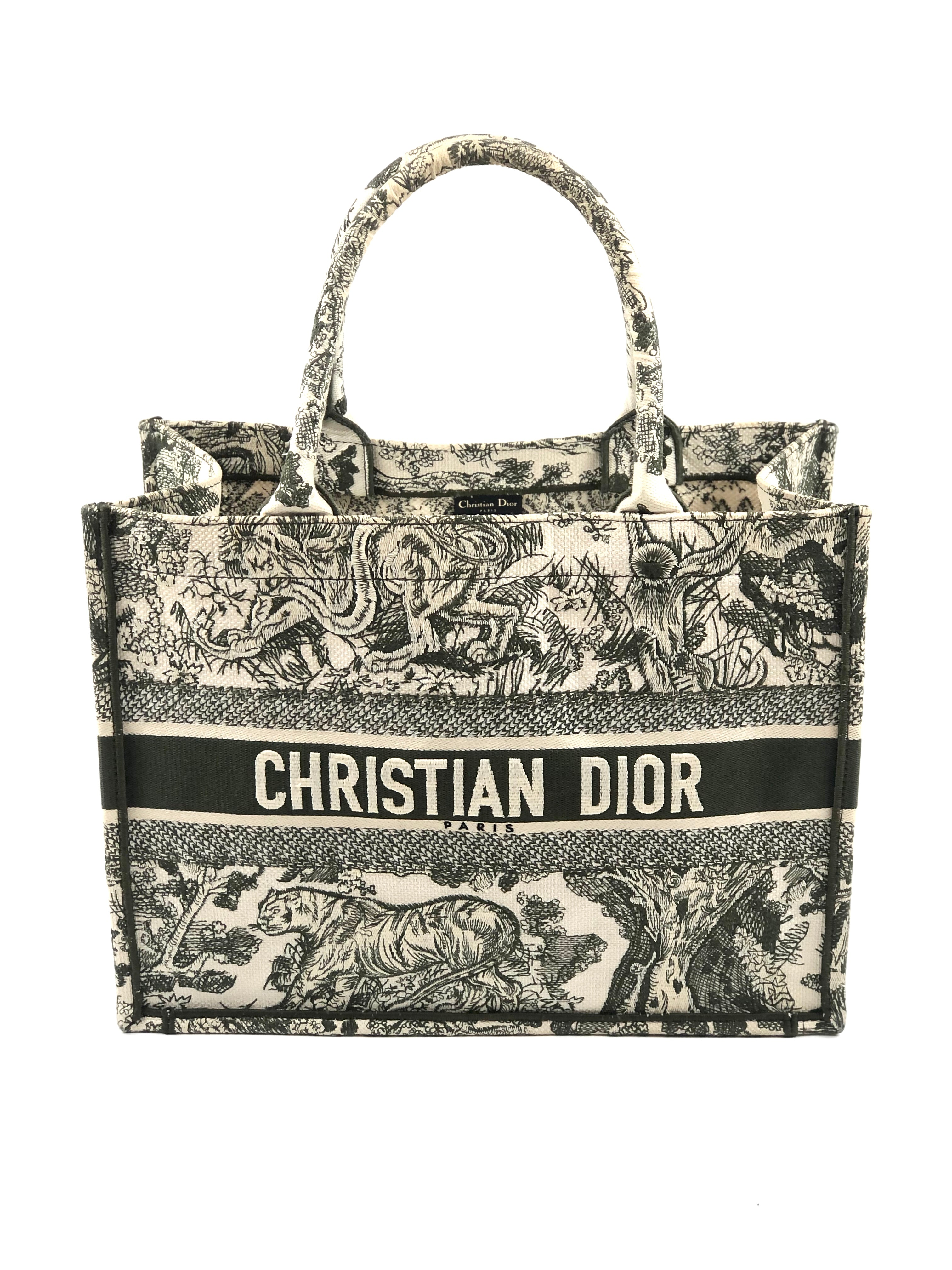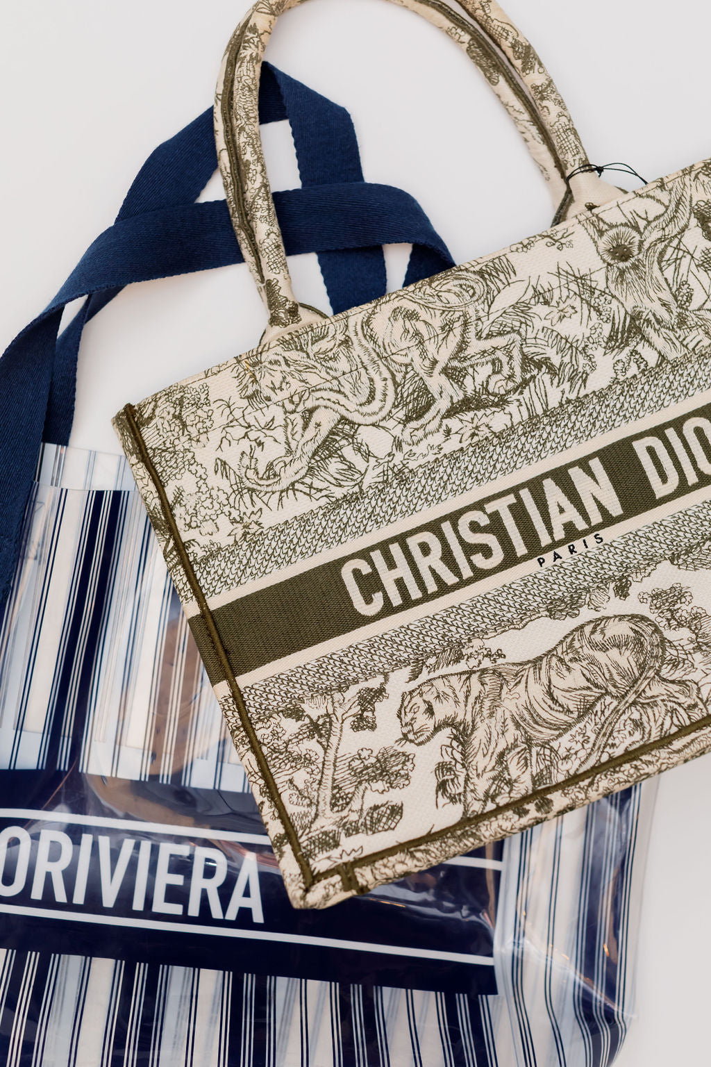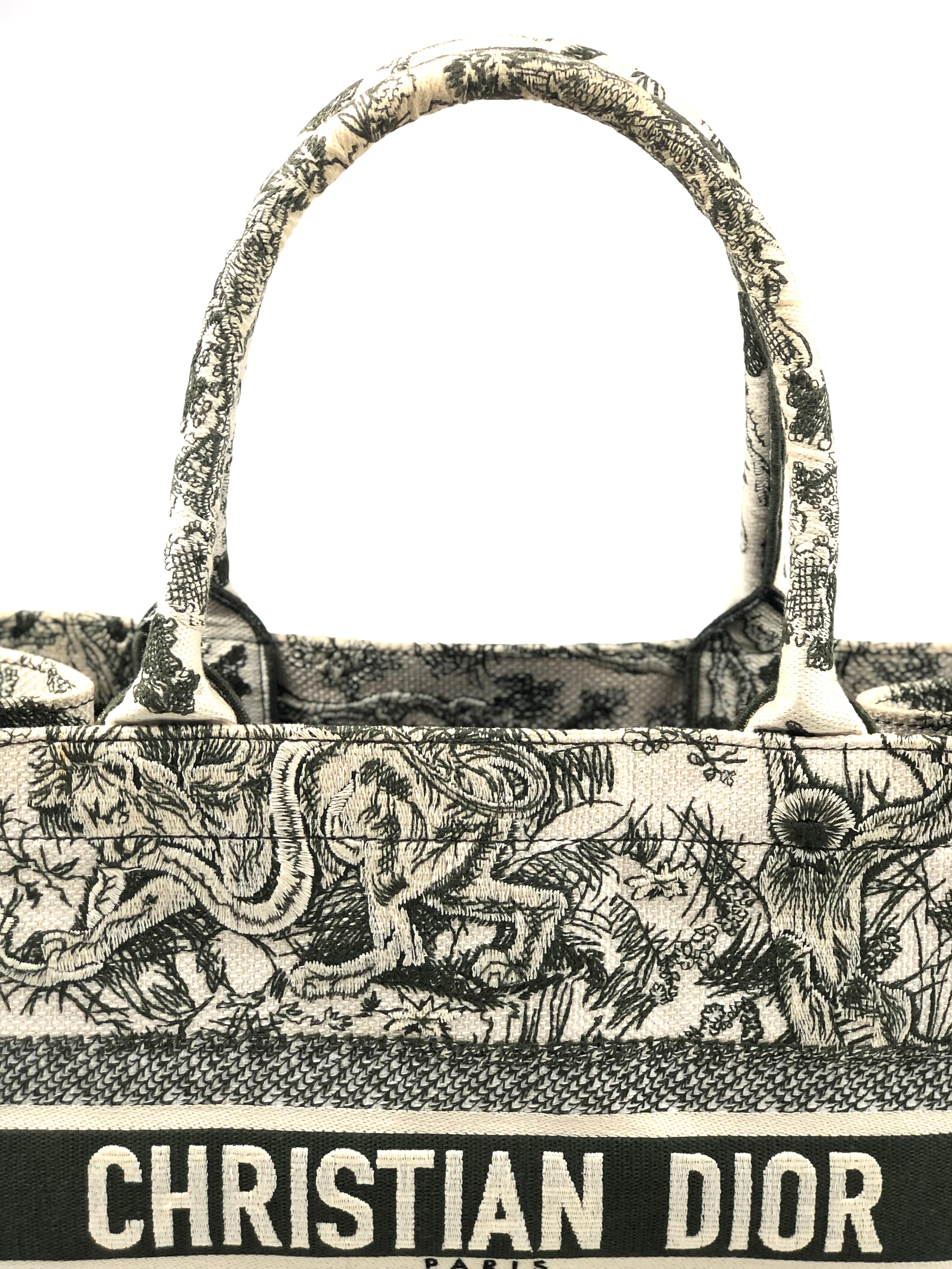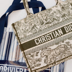 Khaki Canvas Toile De Jouy Medium Book Tote Woven Bag / CHRISTIAN DIOR