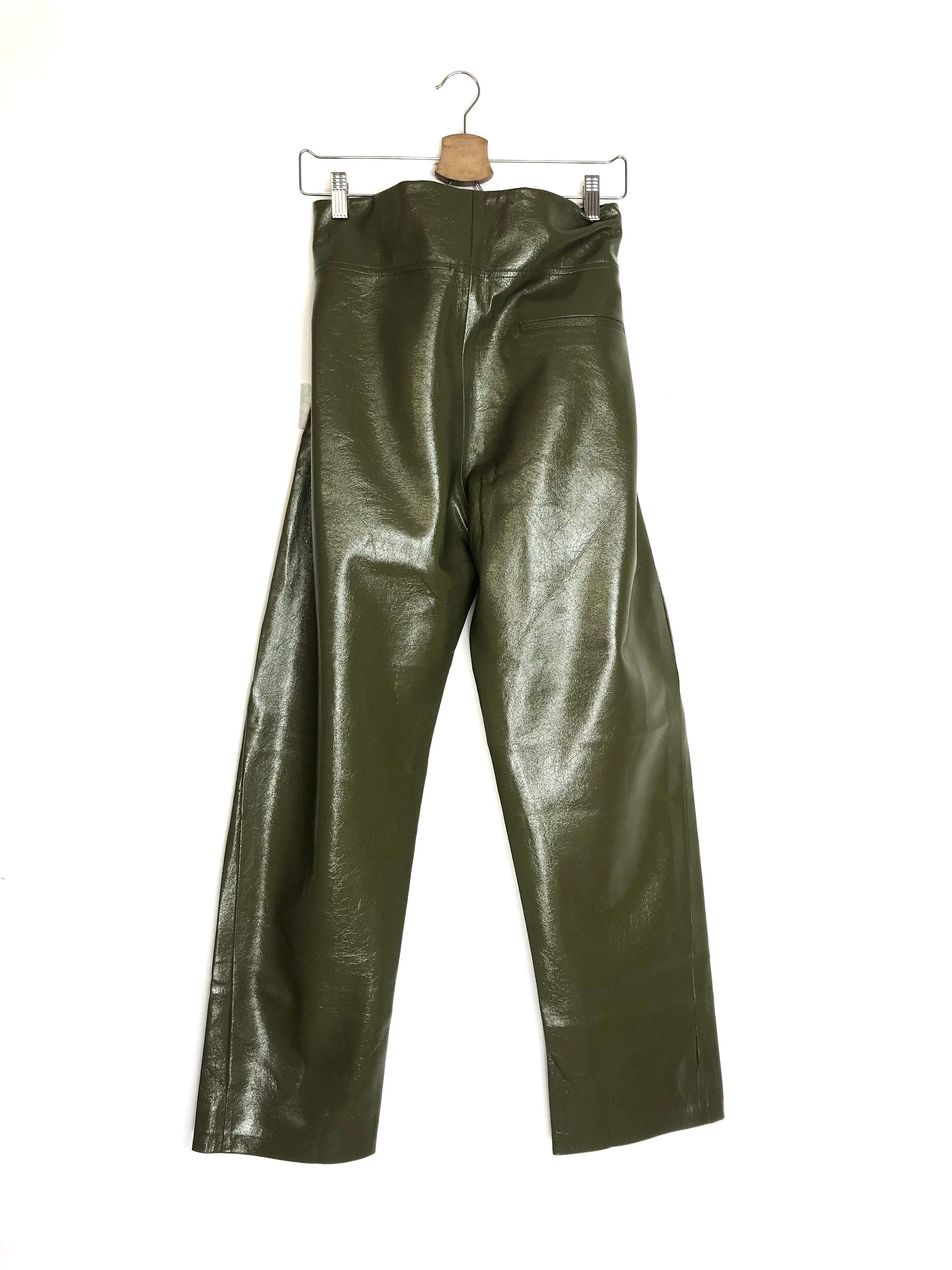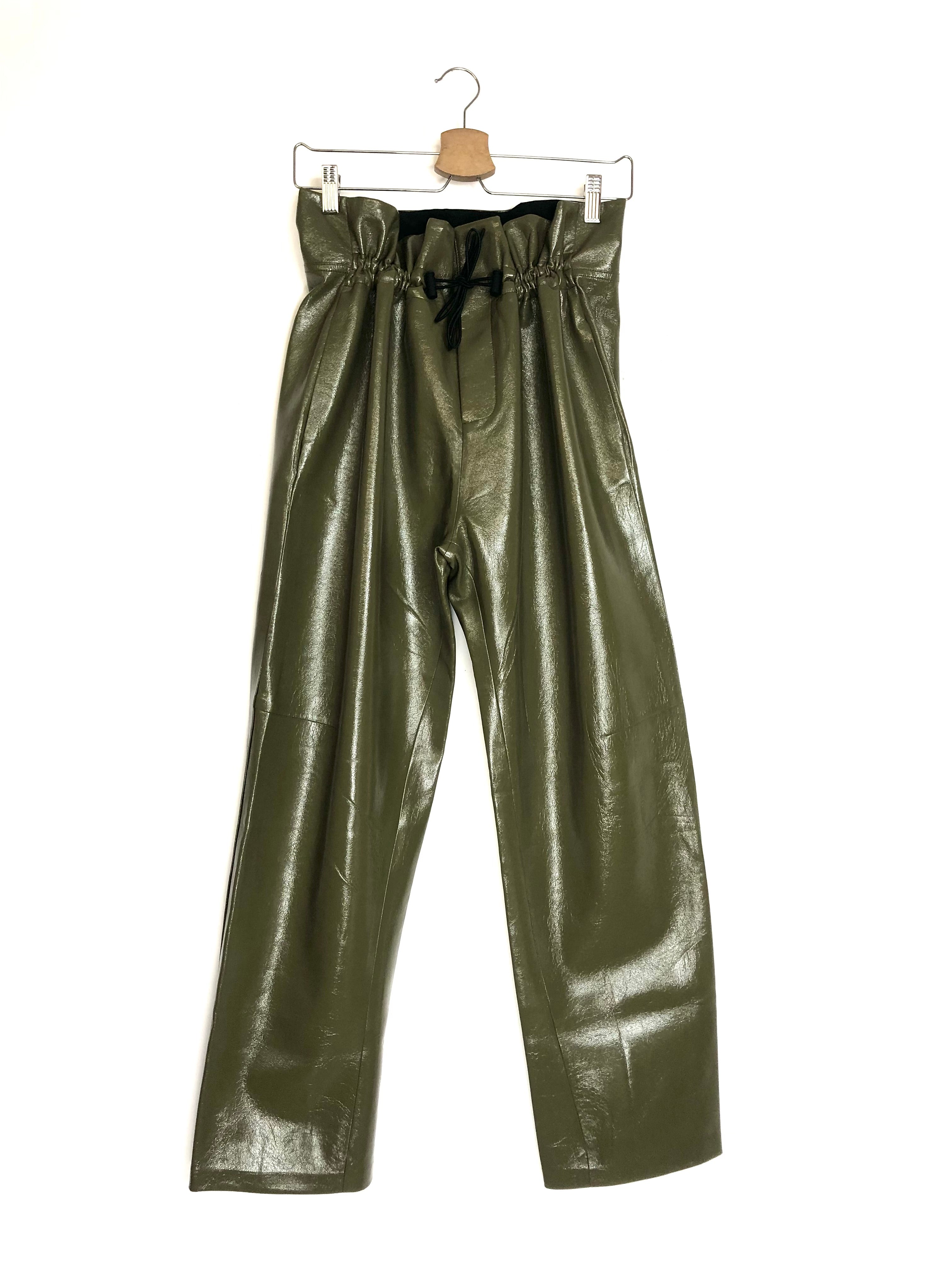 Khaki Green Vegan Leather Parachute Pants / BLSSD - Size XS