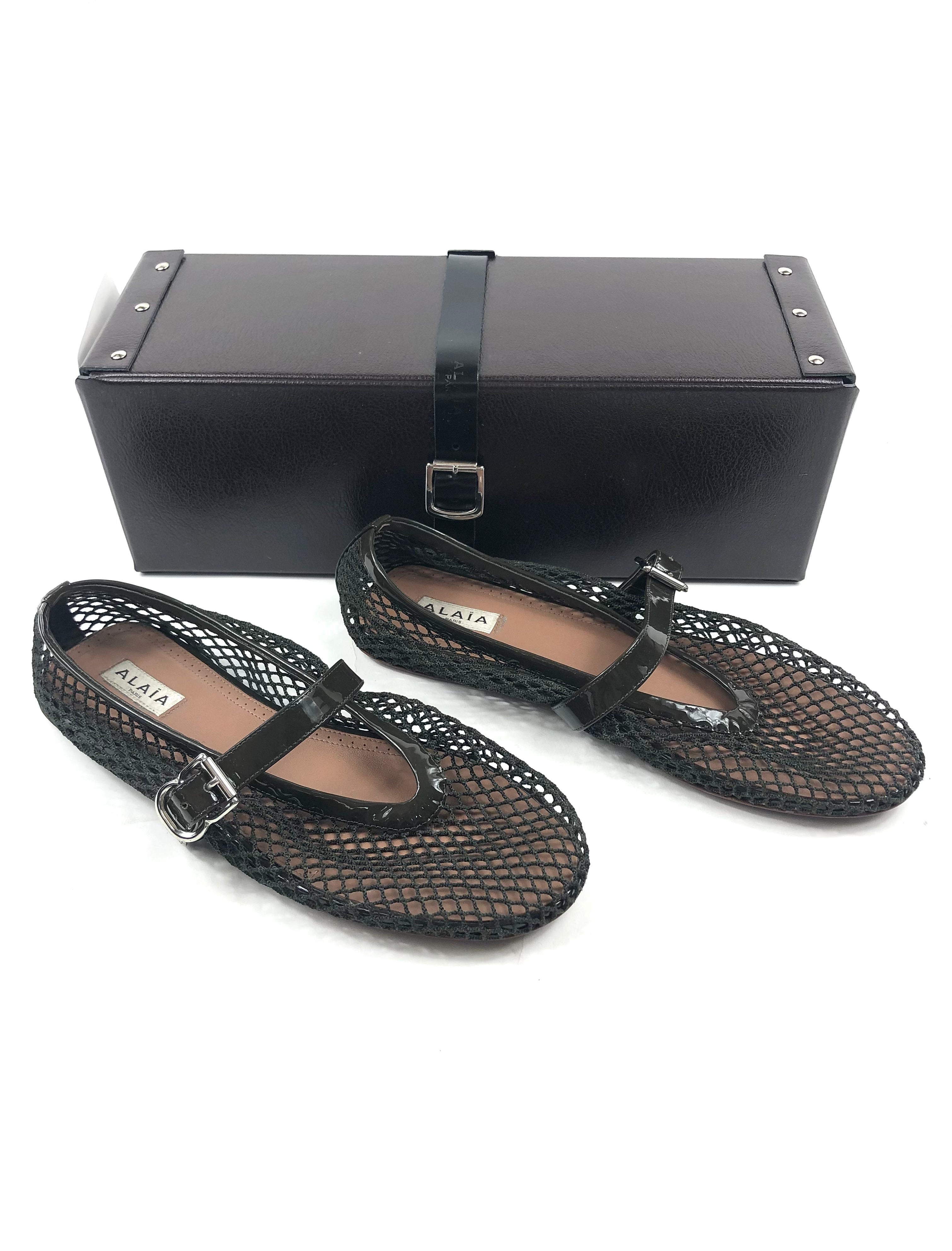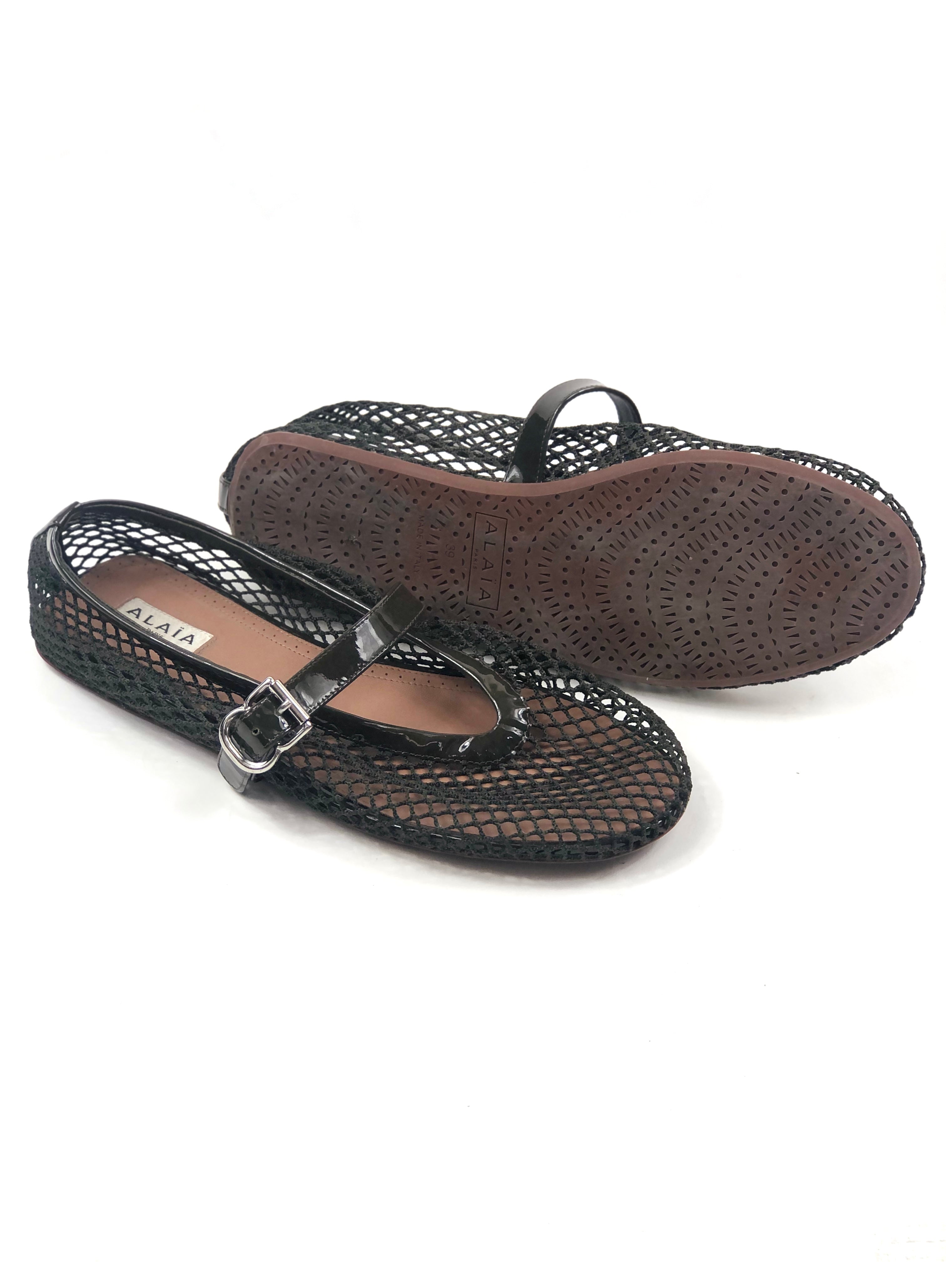 Khaki Mesh Faux-Leather Ballet Flats / ALAIA - Size 39