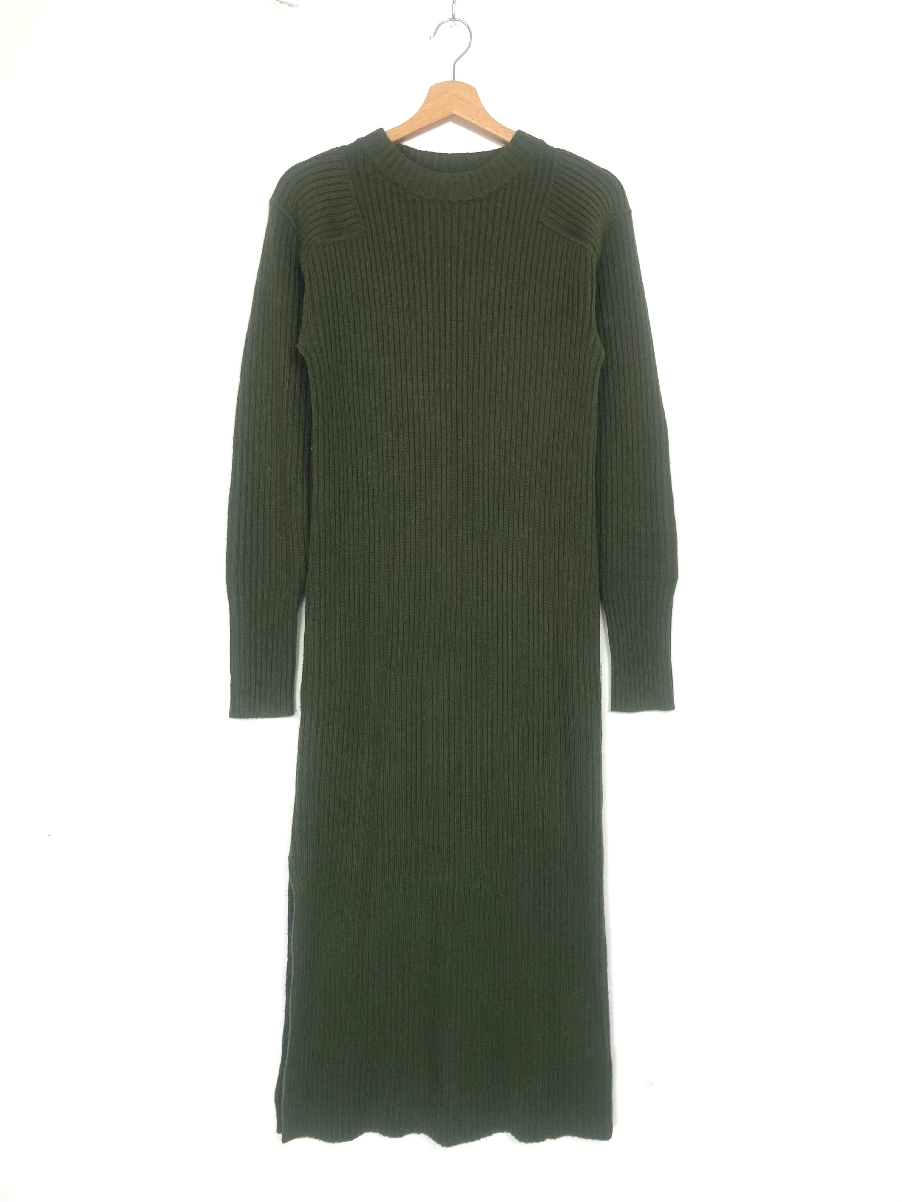 Khaki Wool Blend Knitted Long Sleeves Maxi Dress / ANINE BING - Size S
