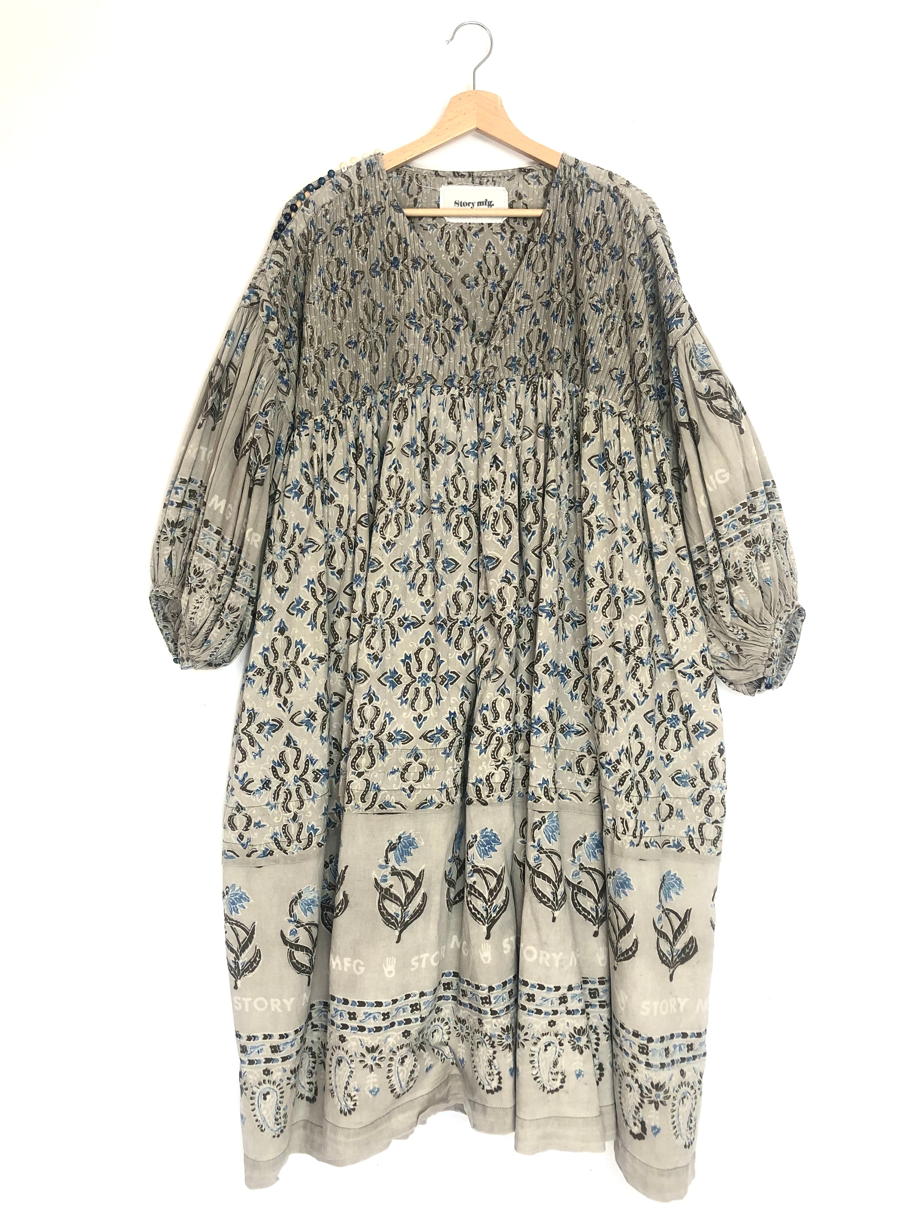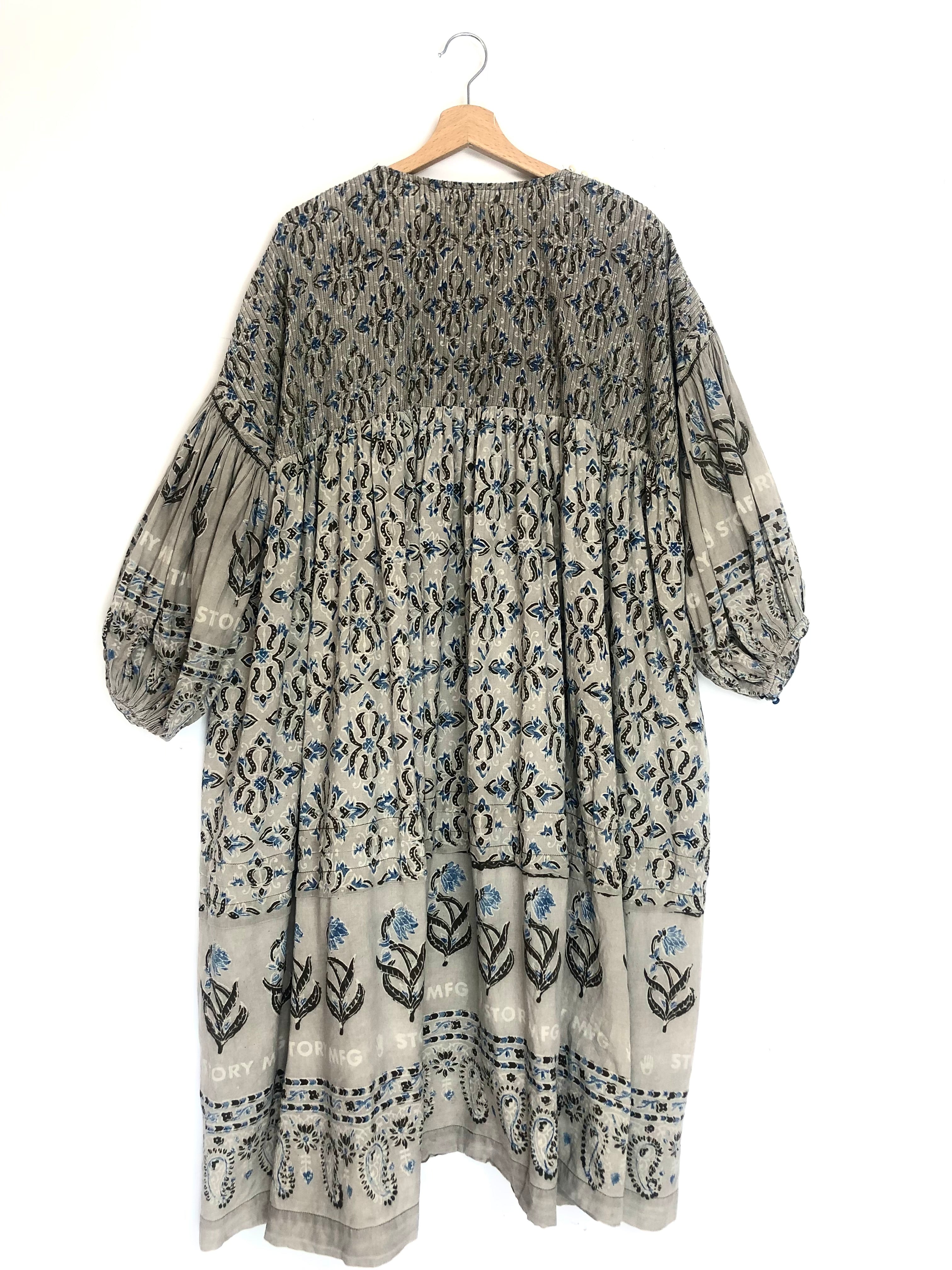Khaki/Grey Printed Organic Cotton Long Sleeves Midi Dress / STORY MFG - Size S