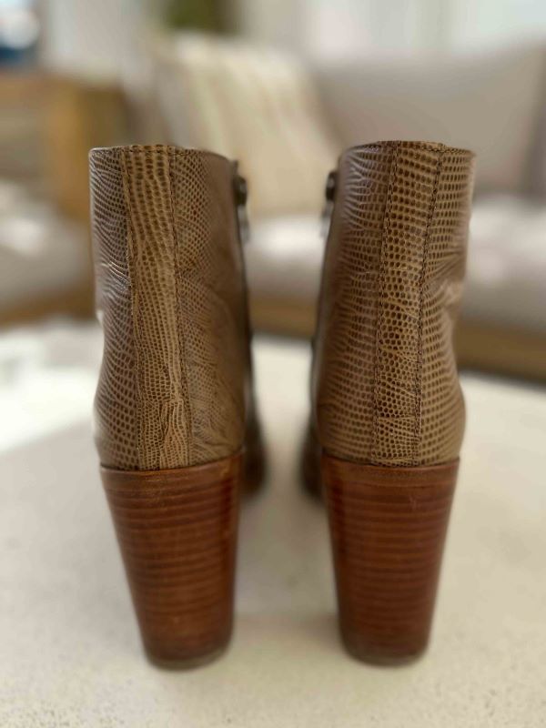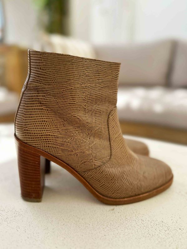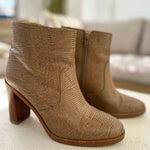 Light Brown Textured Leather Side Zip Block Heel Booties - Size 38