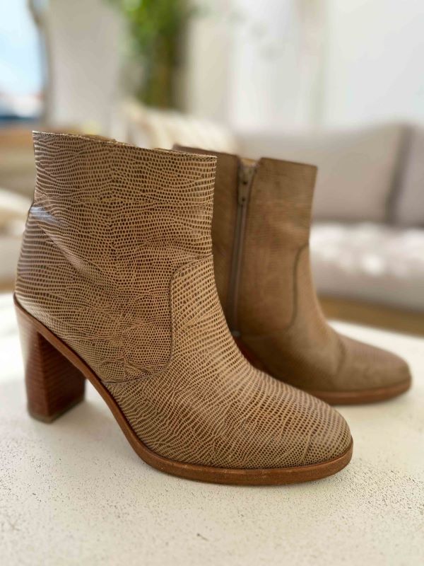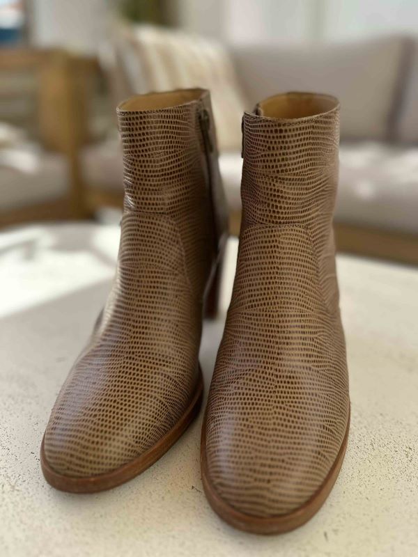 Elevate your footwear collection with these timeless booties feature a light brown textured leather exterior, designed for both style and durability. The side zip ensures easy wear, while the block heel offers all-day comfort and support. Perfect for adding a sophisticated touch to any outfit, these booties can be dressed up or down for any occasion.