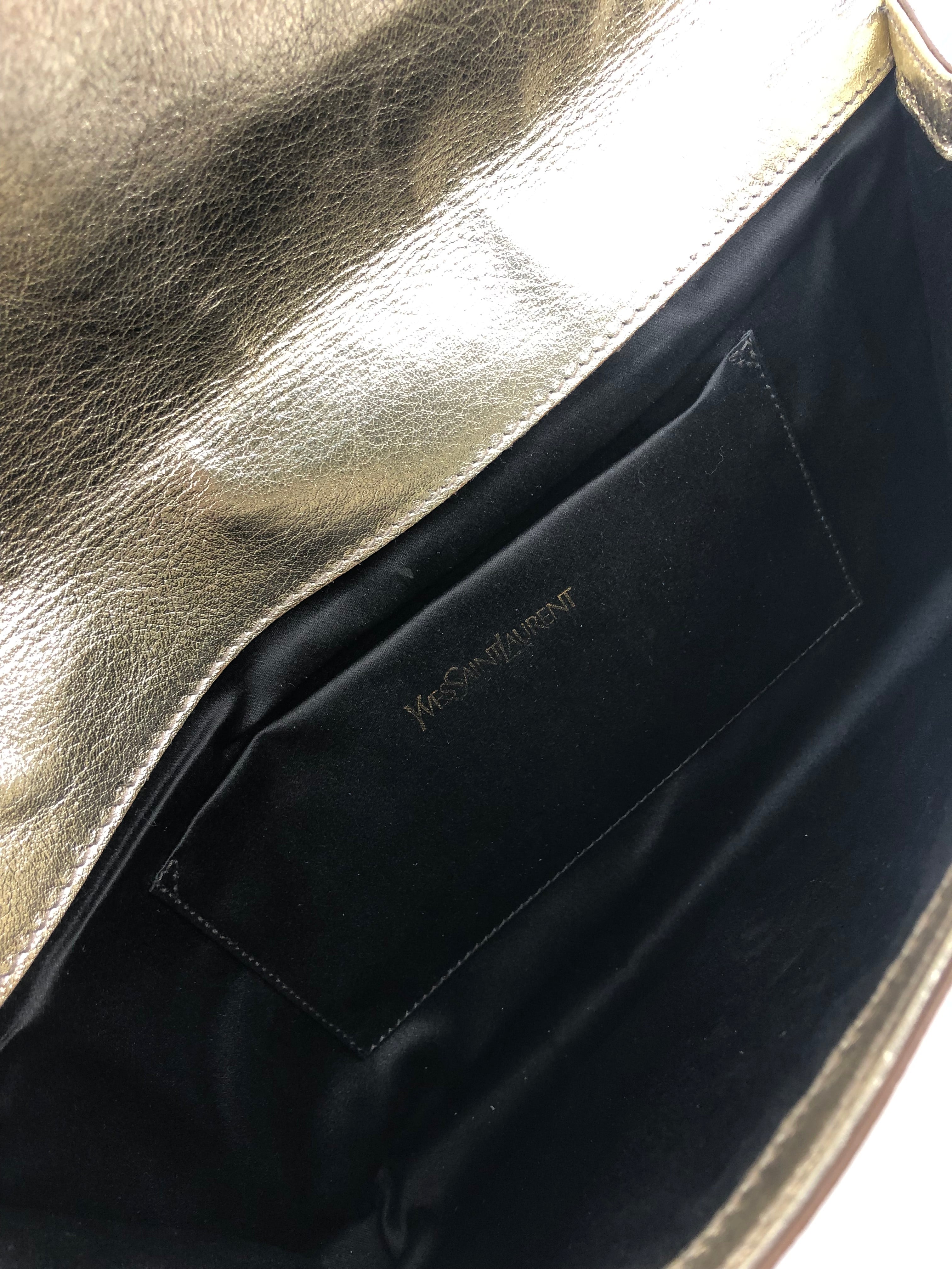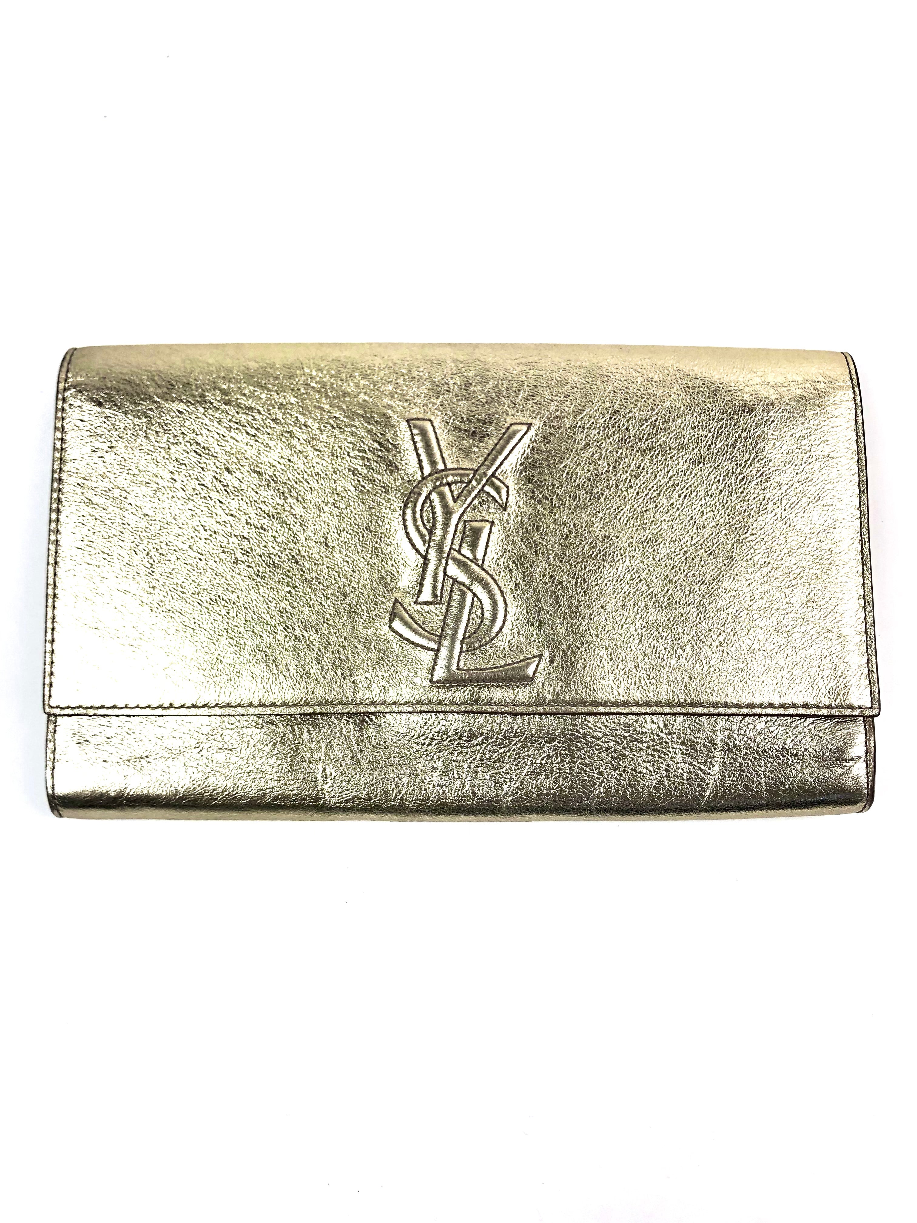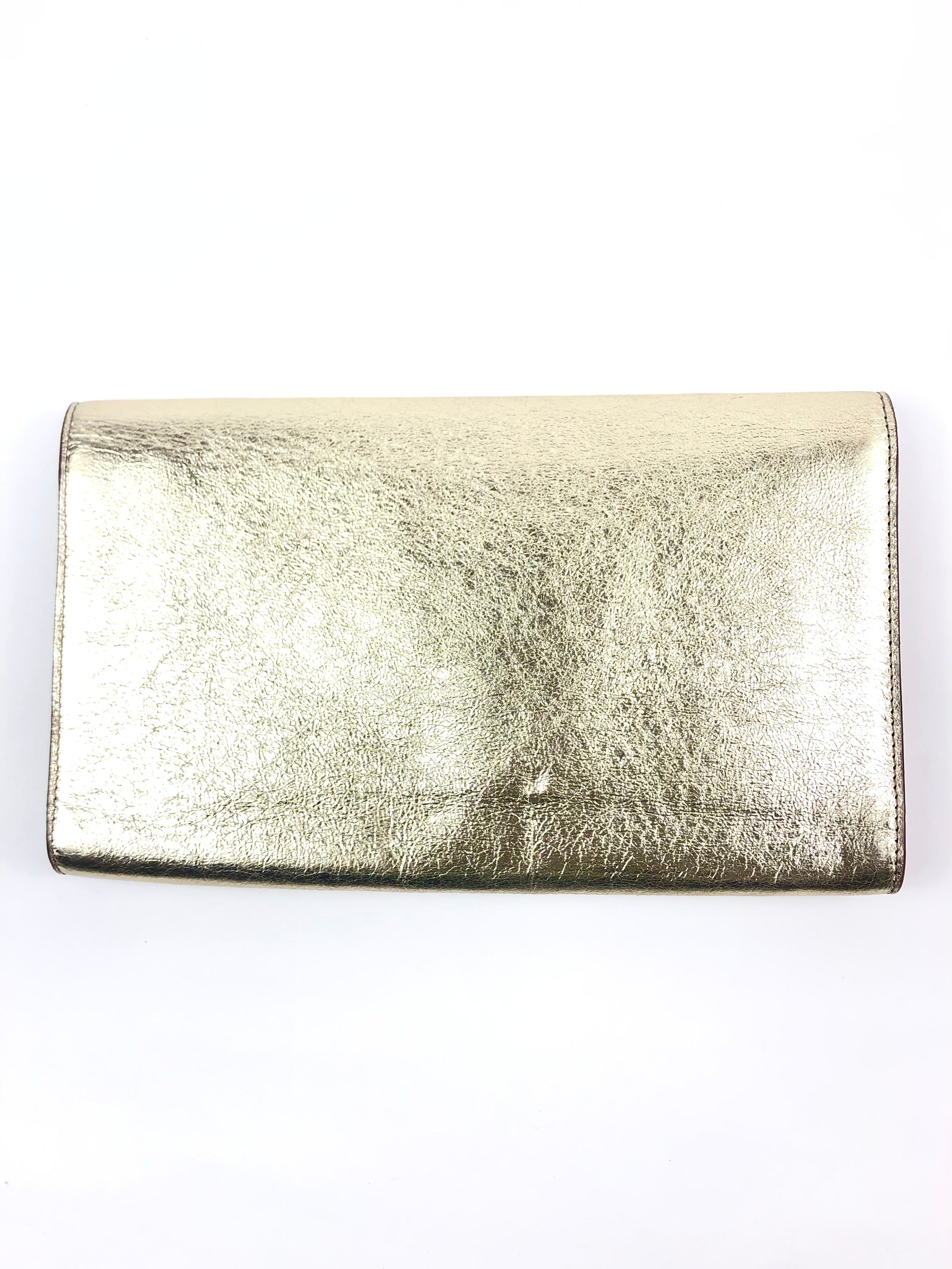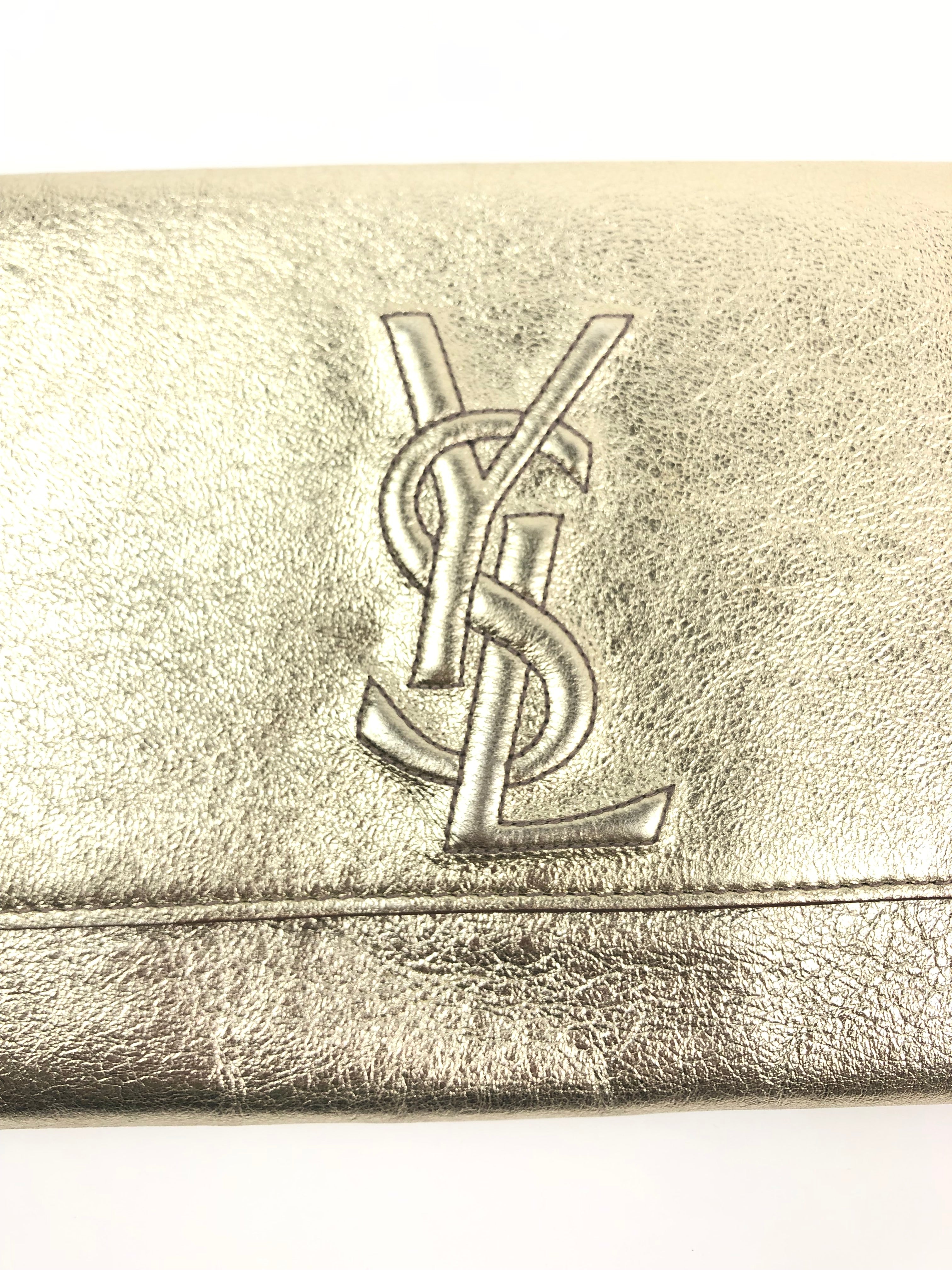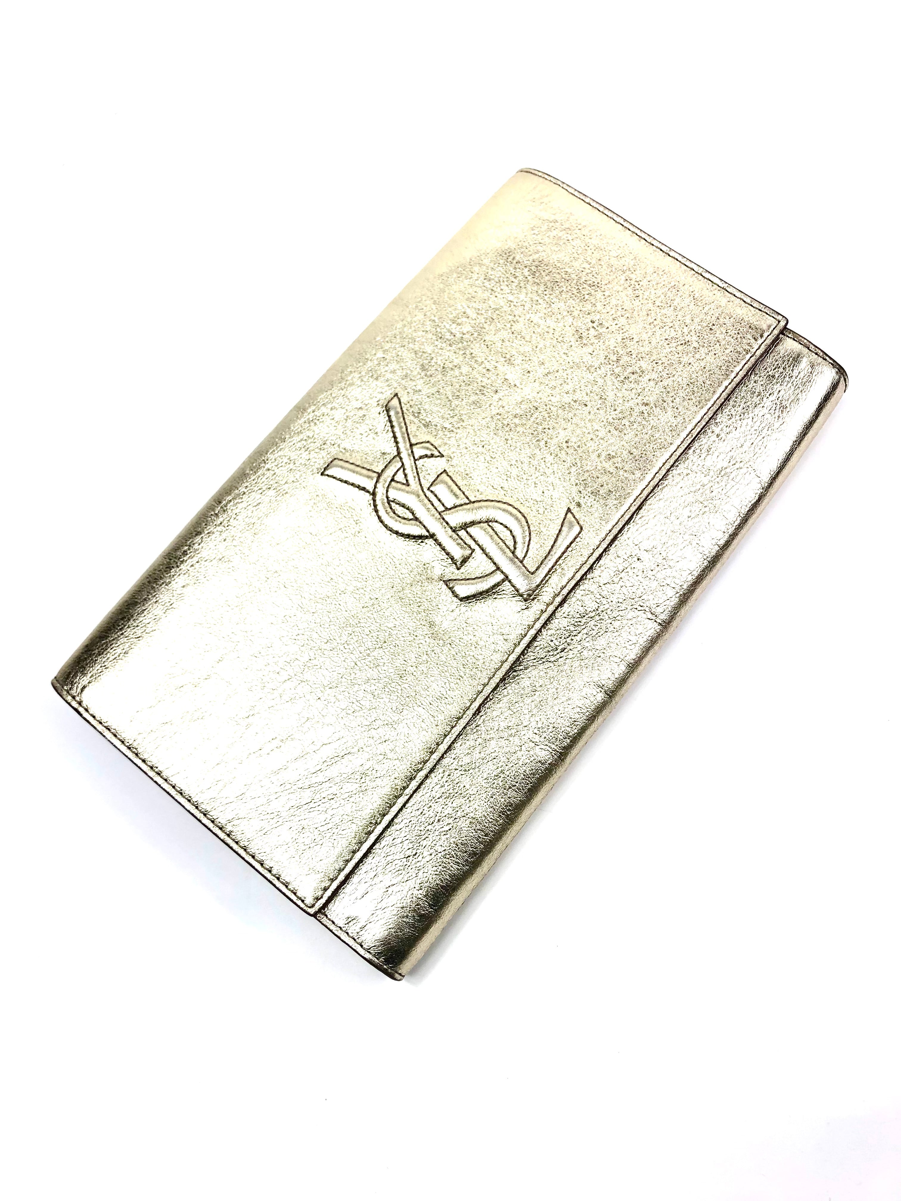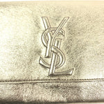 Metallic Gold BELLE DE JOUR Logo Leather Clutch / YVES SAINT LAURENT - One Size