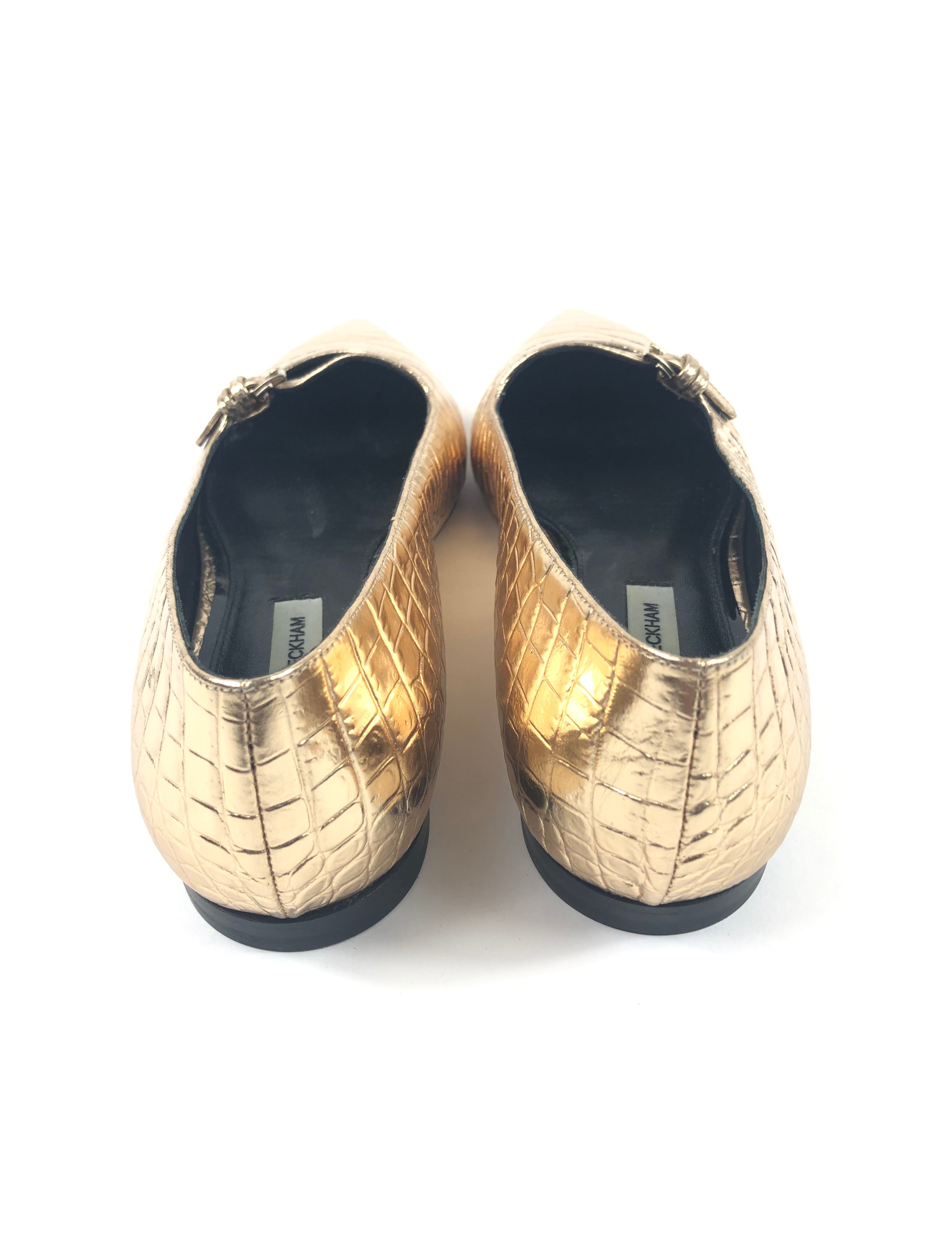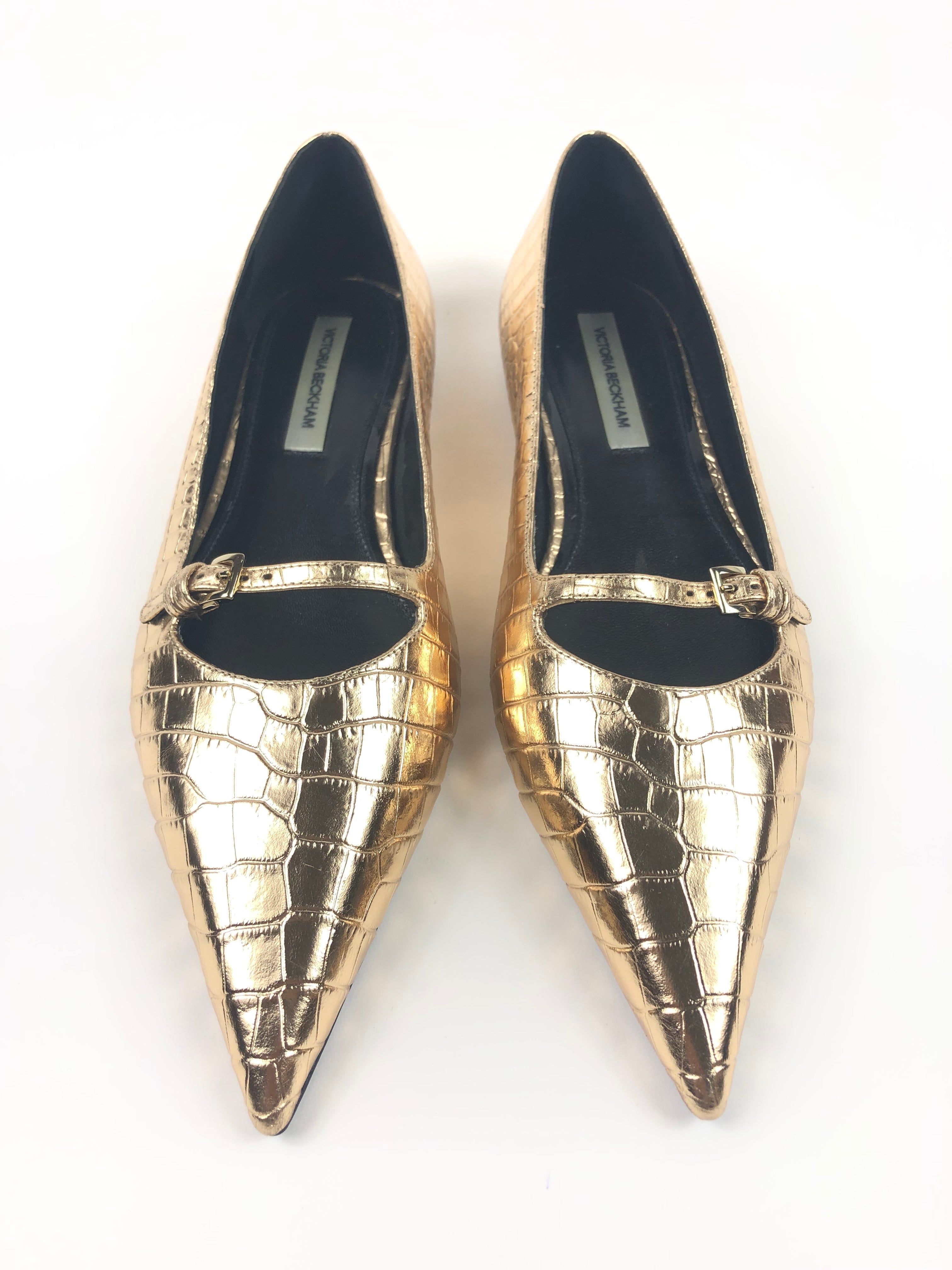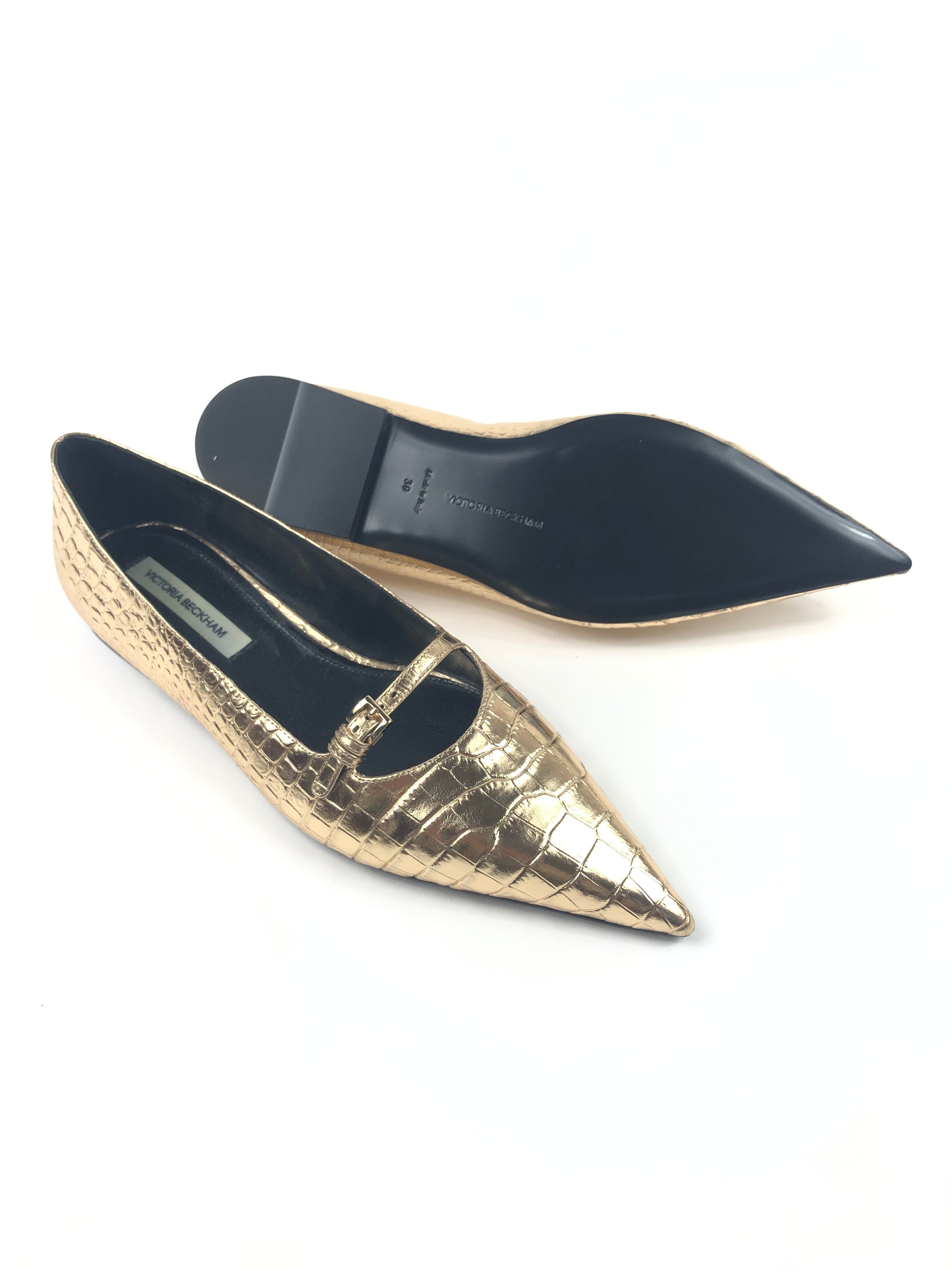 Metallic Gold Croc-effect Leather Ballet Flats / VICTORIA BECKHAM - Size 39