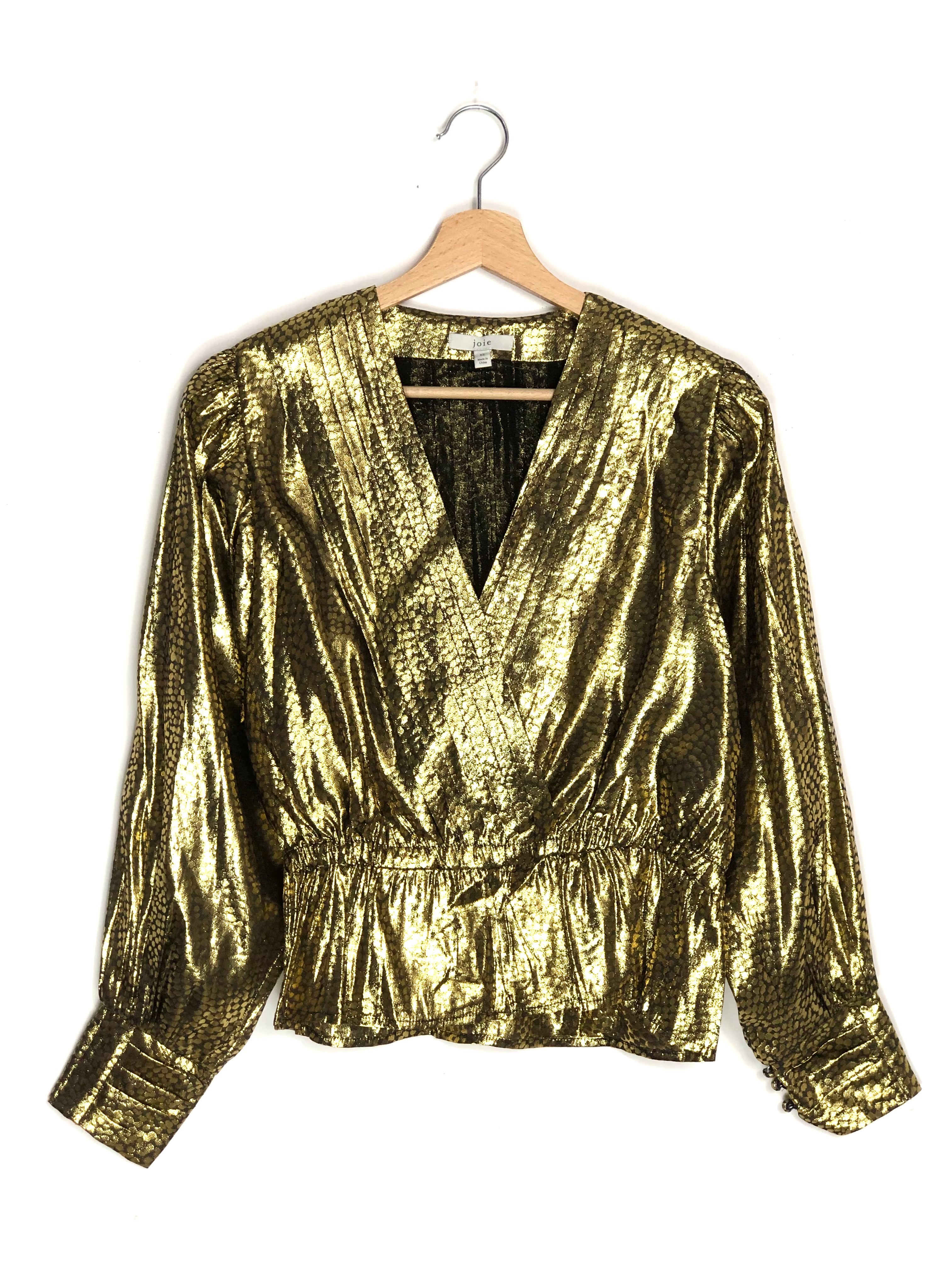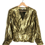 Metallic Gold NADEEN Peplum Wrap Pleated Gathered Blouse / JOIE - Size XS