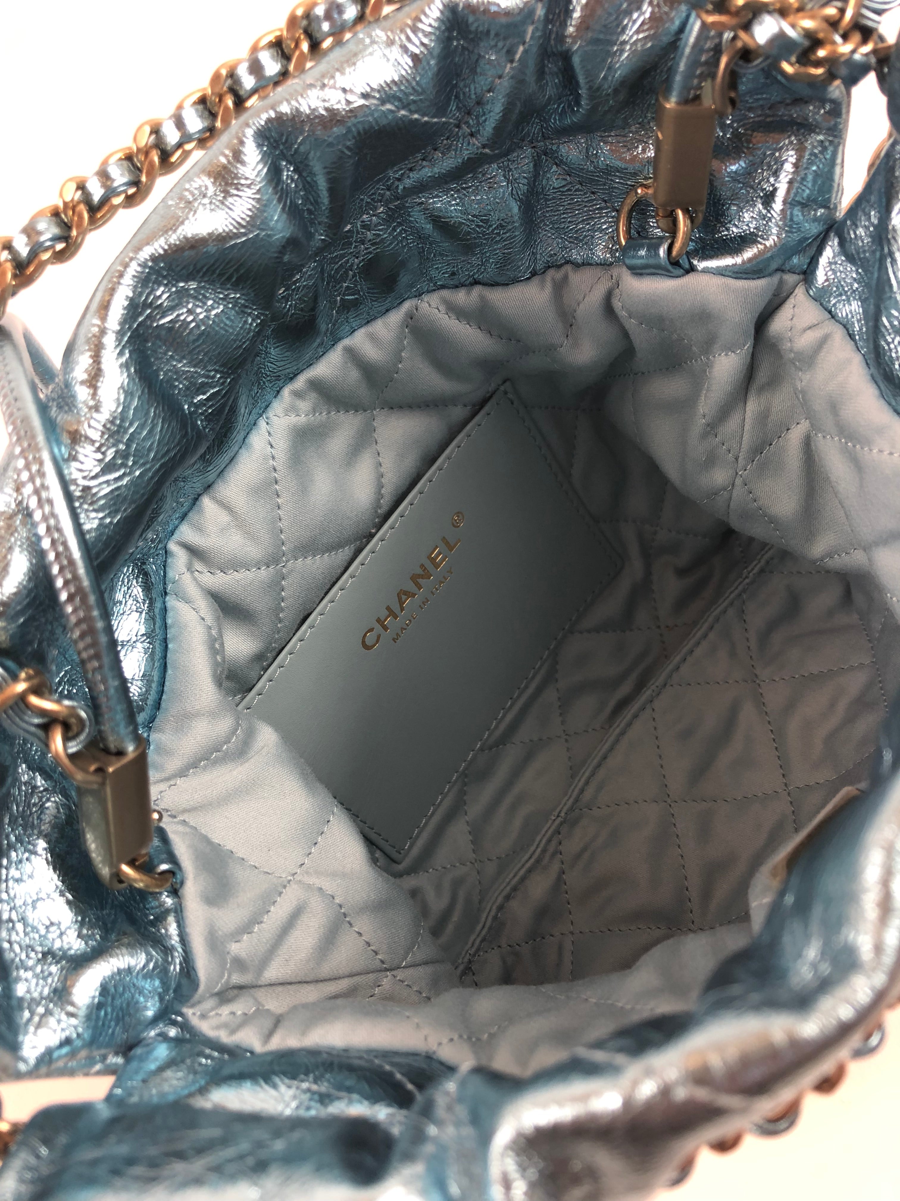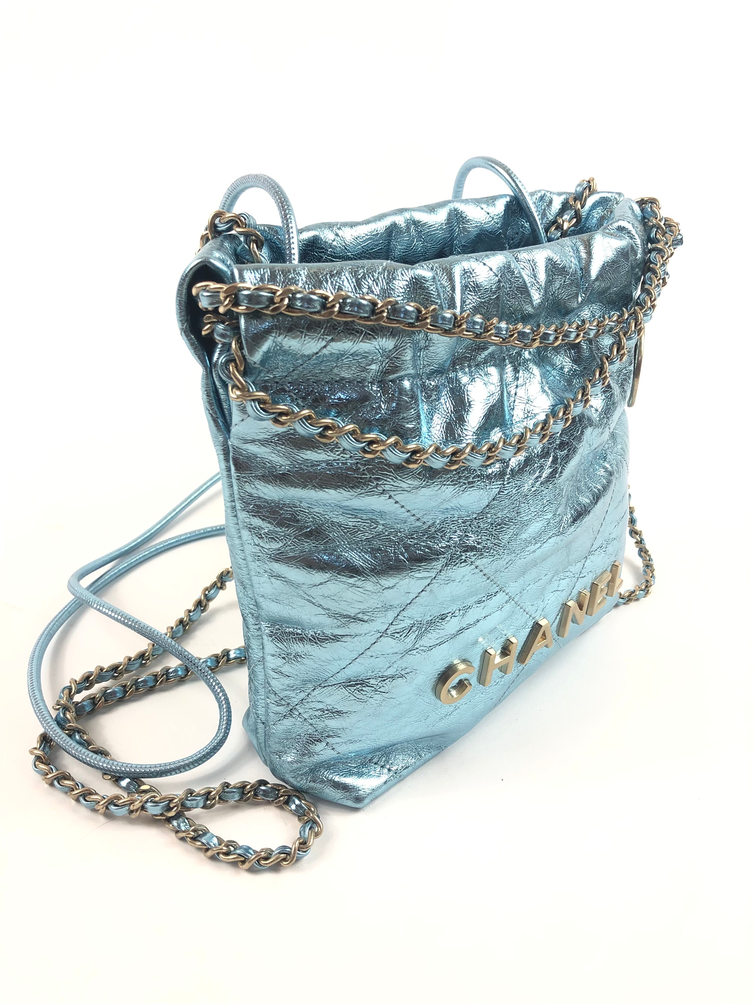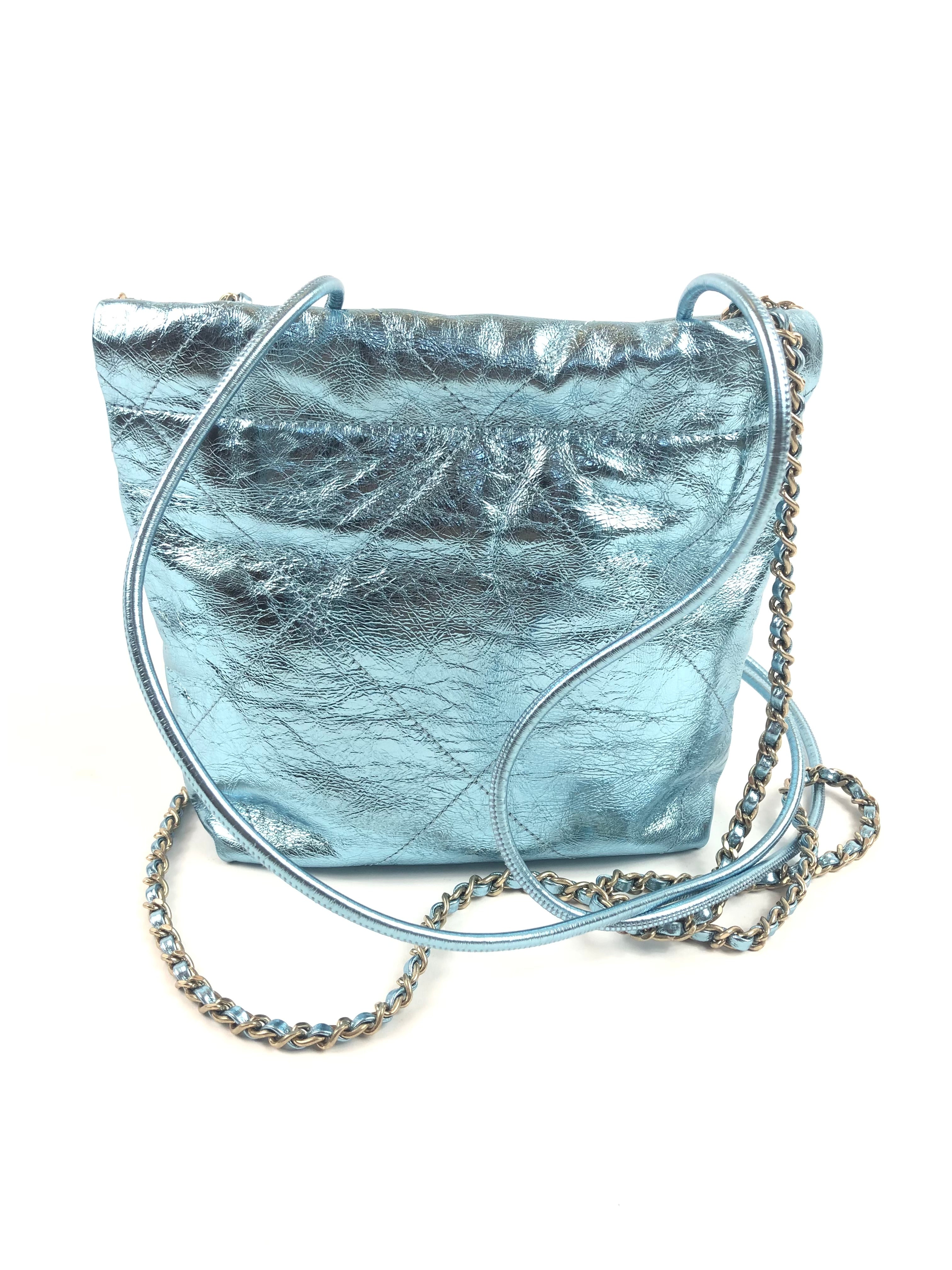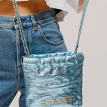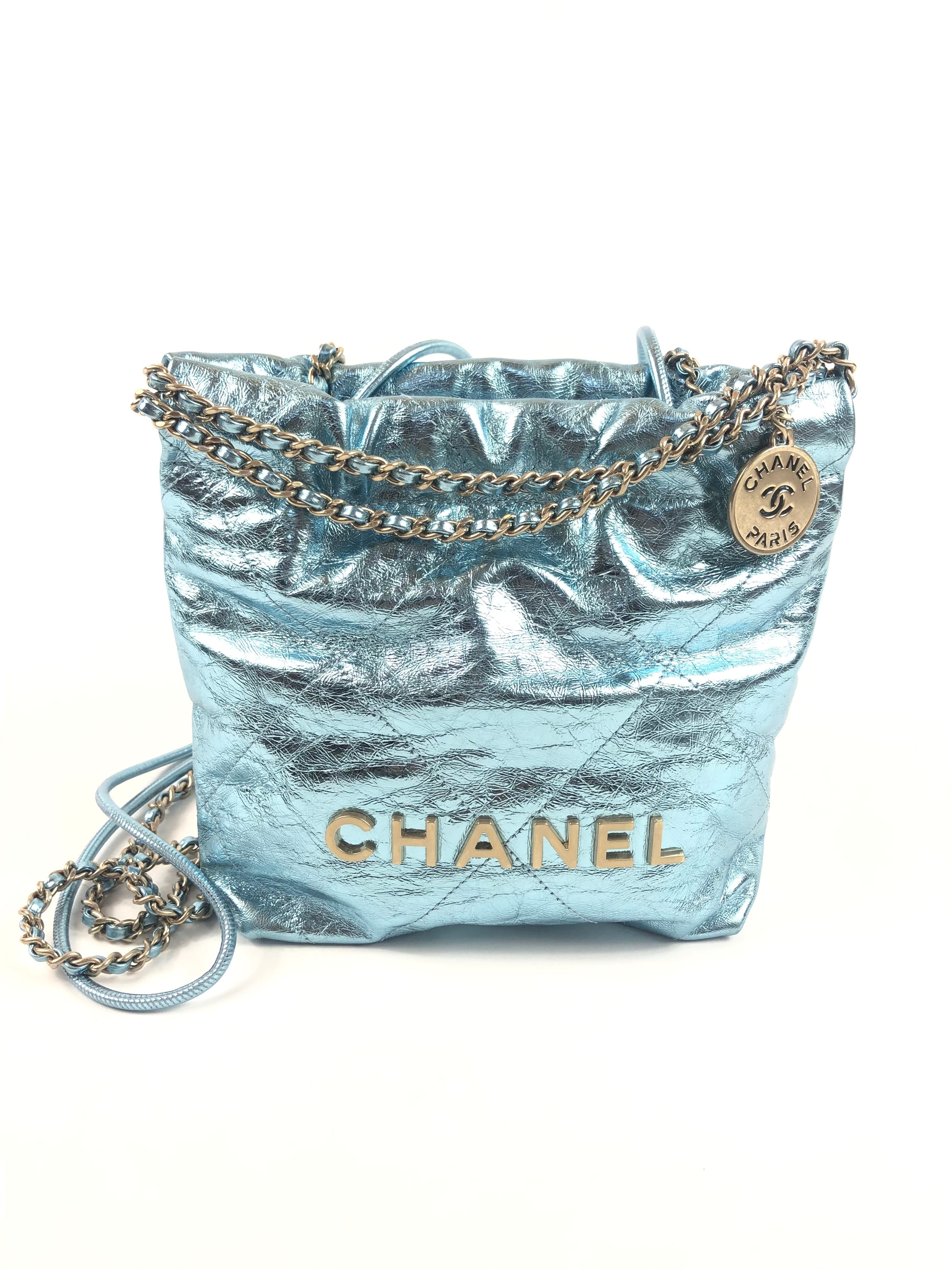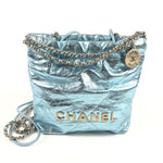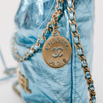 Metallic Light Blue Chanel 22 Mini Handbag / CHANEL