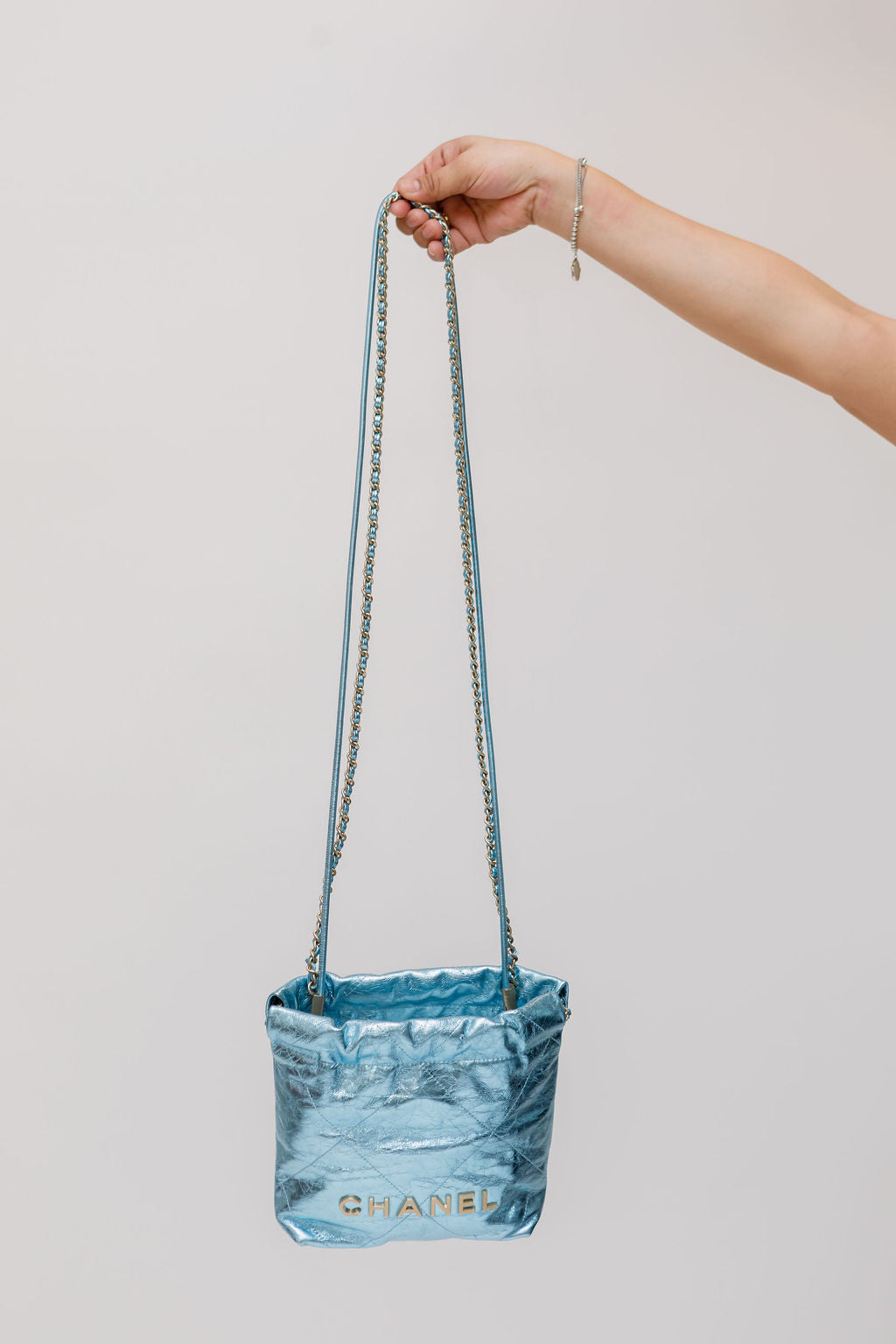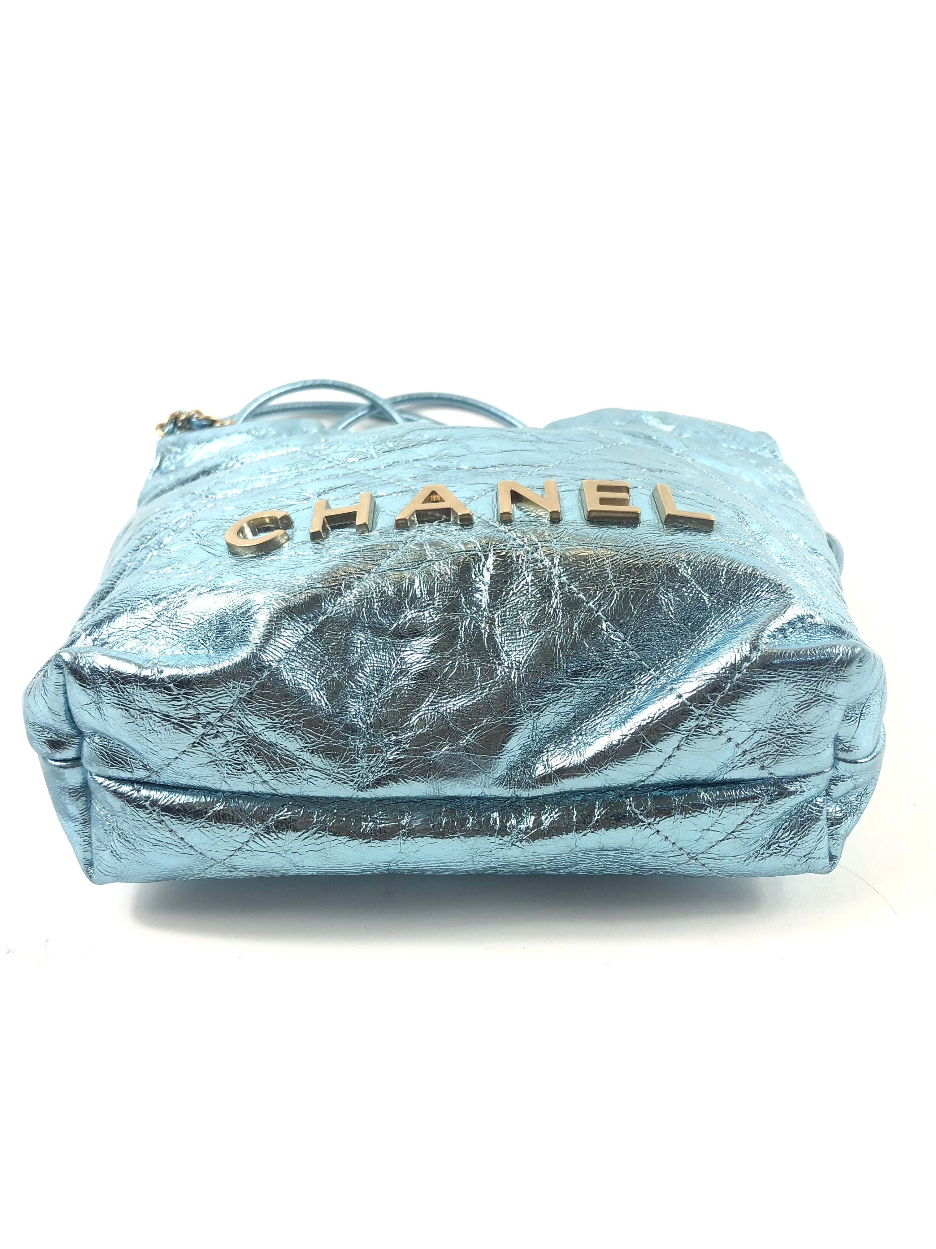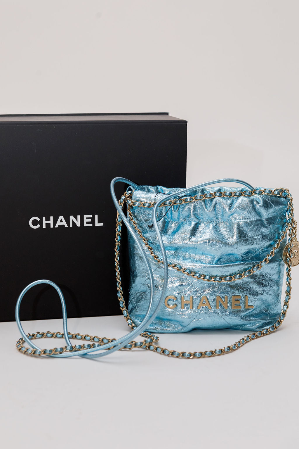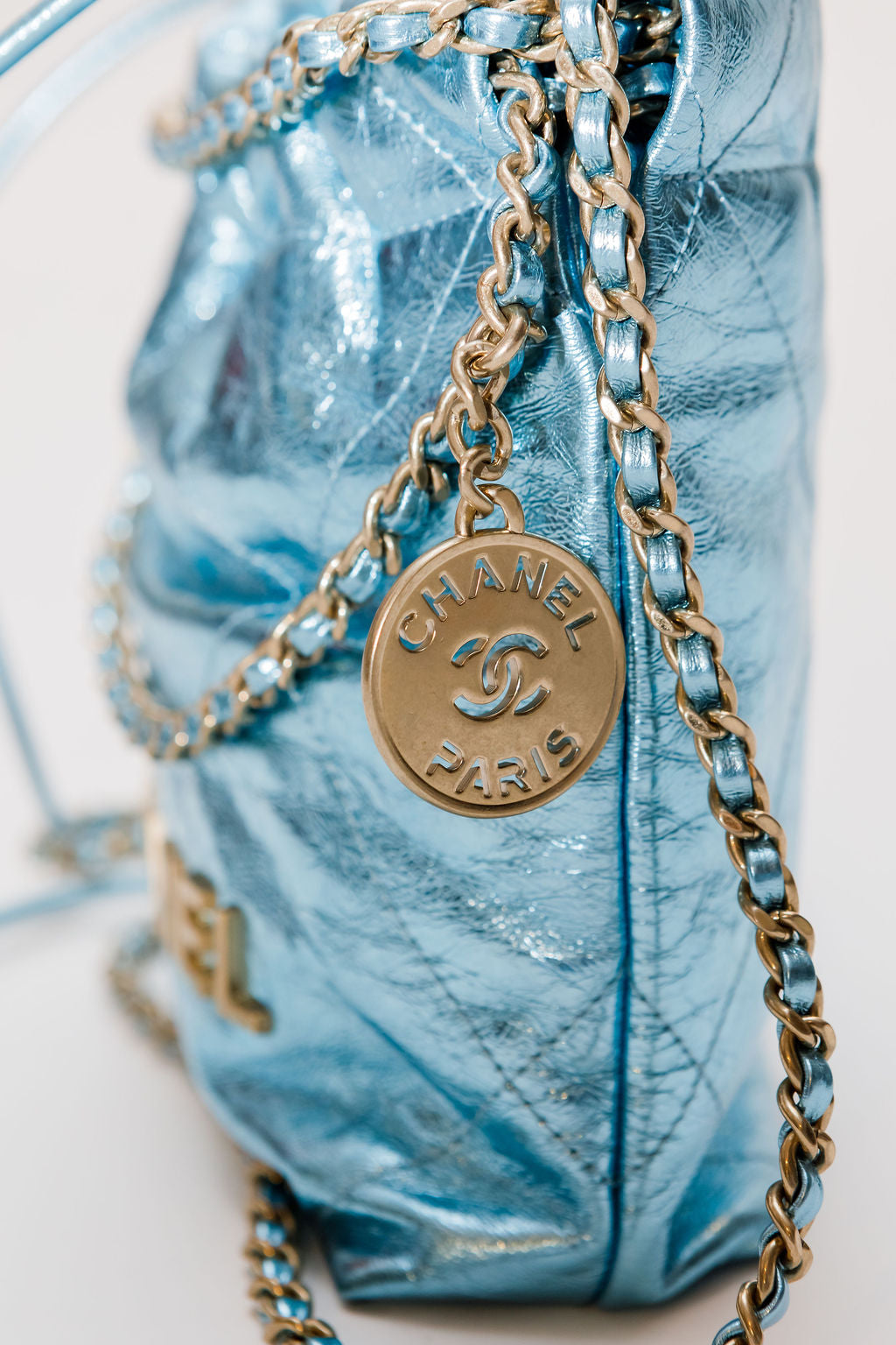 Metallic Light Blue Chanel 22 Mini Handbag / CHANEL
