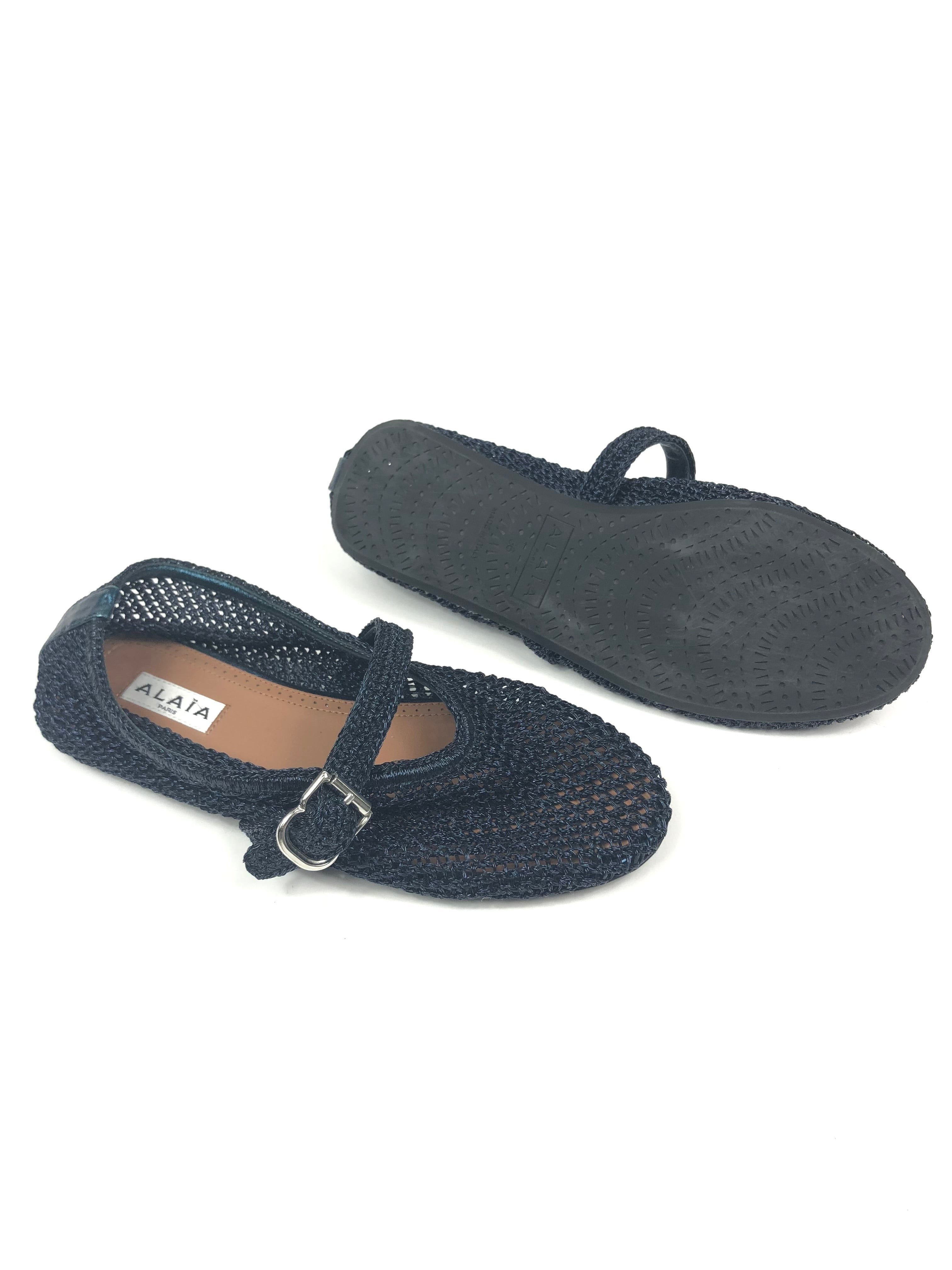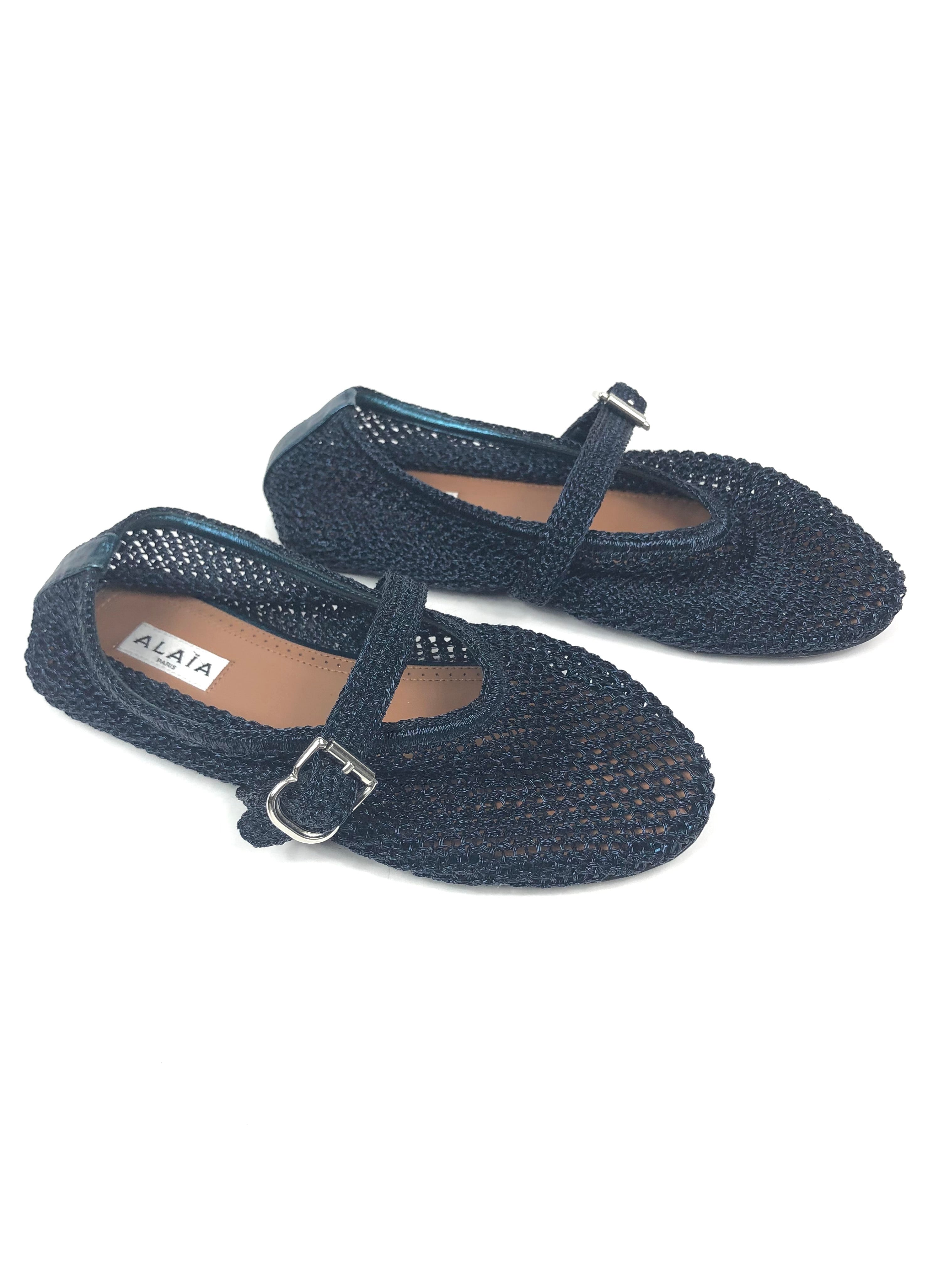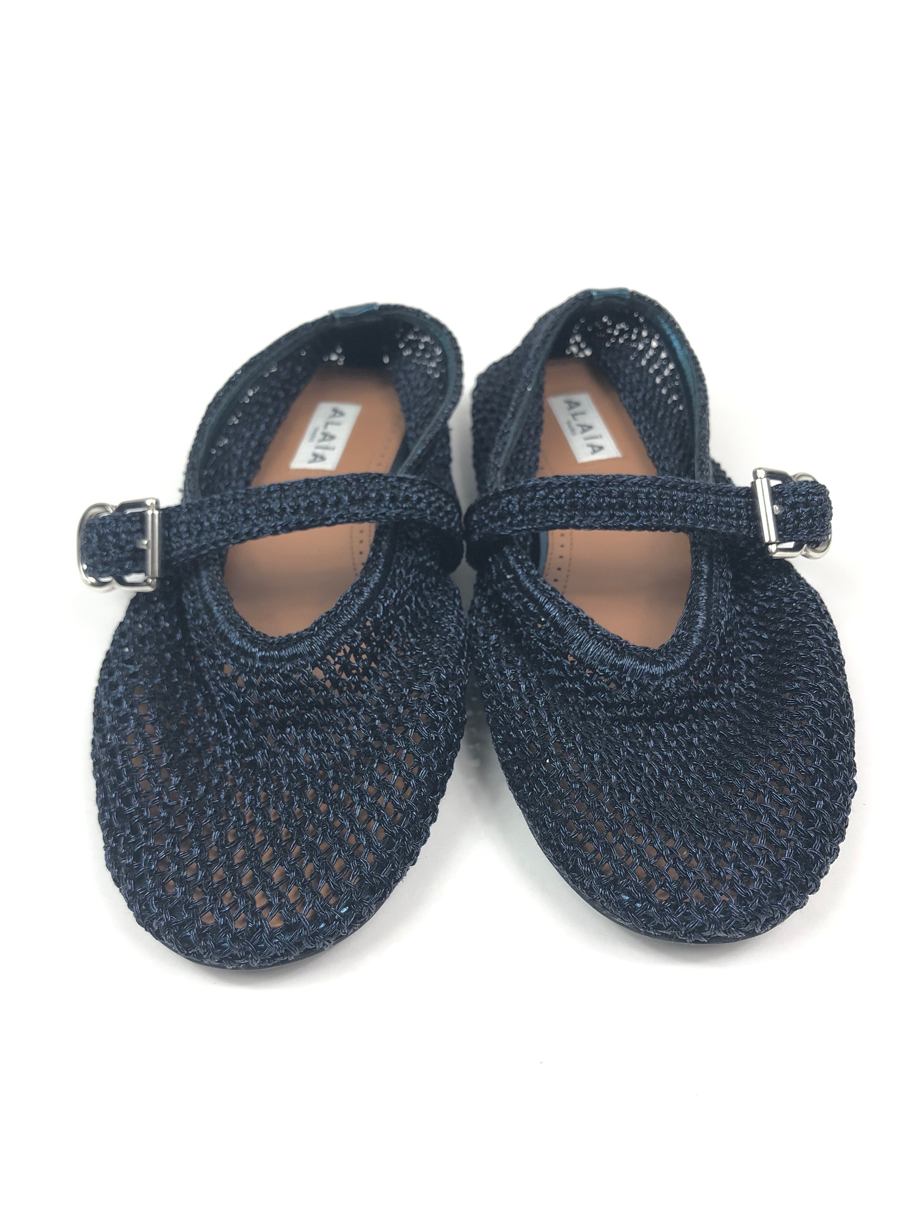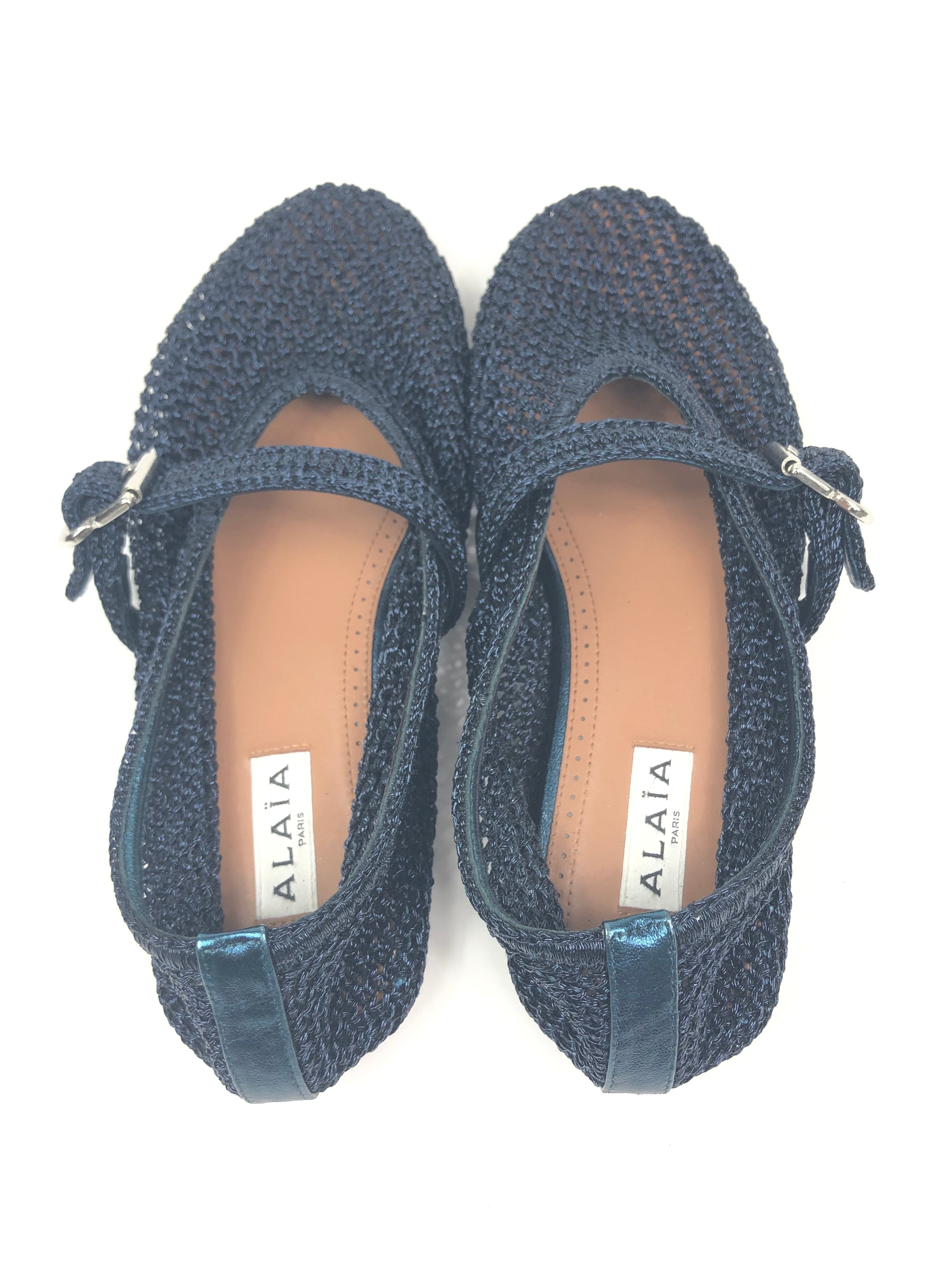 Metallic Navy Crocheted Ballet Flats / ALAIA - Size 36