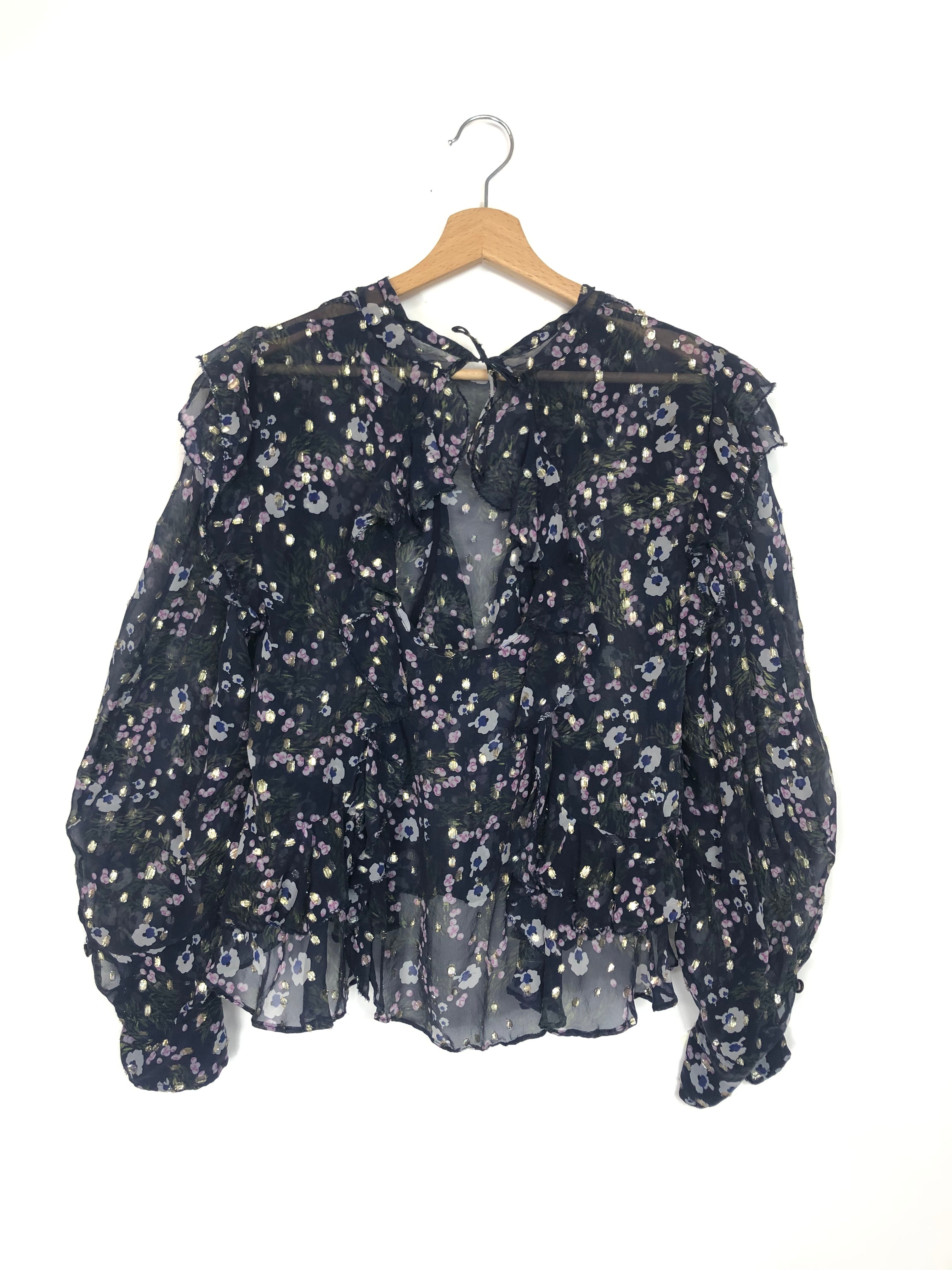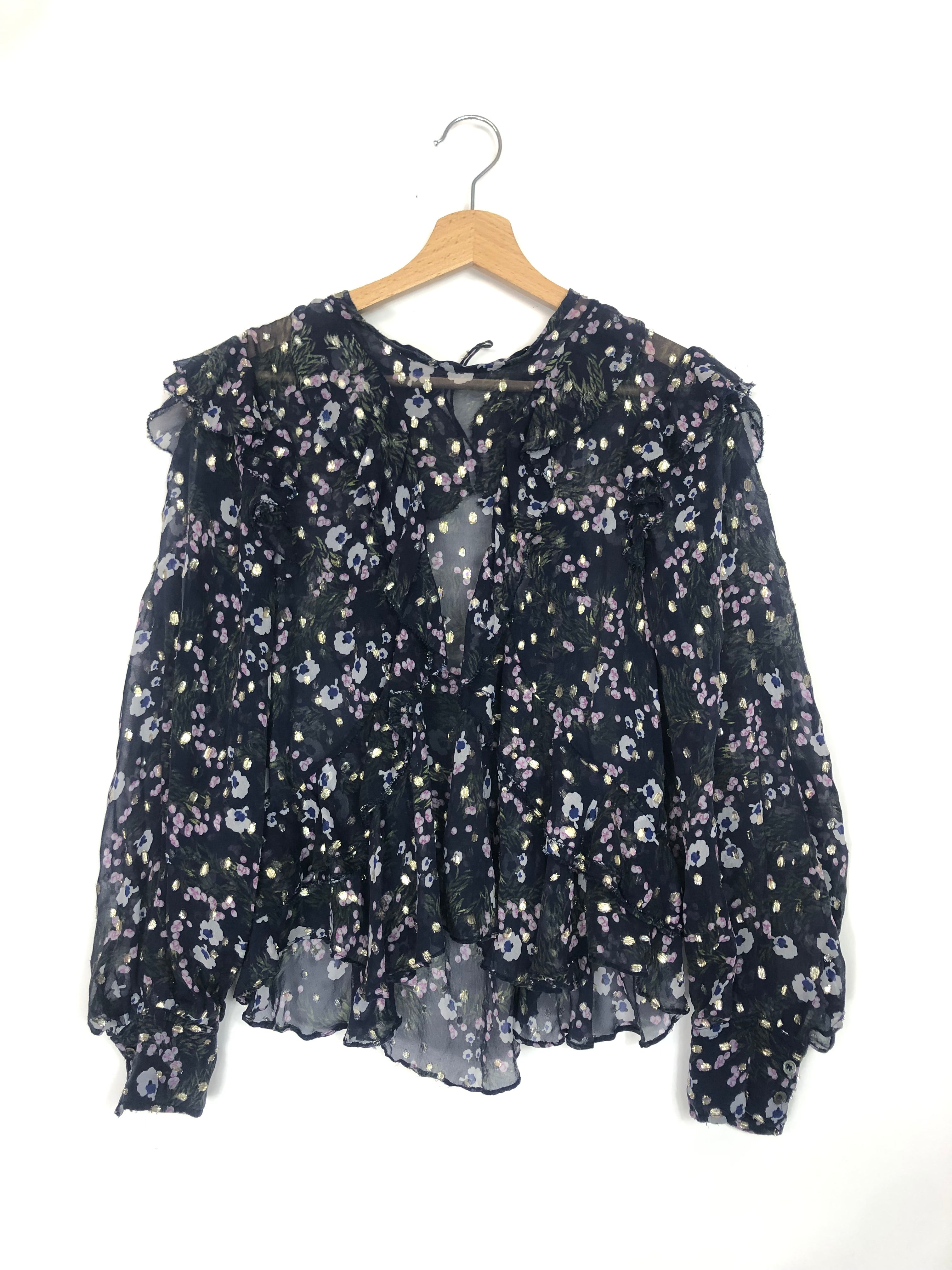 Midnight Blue MIA Georgette Fil coupé Silk-blend Long Sleeves Blouse / ISABEL MARANT - Size 36
