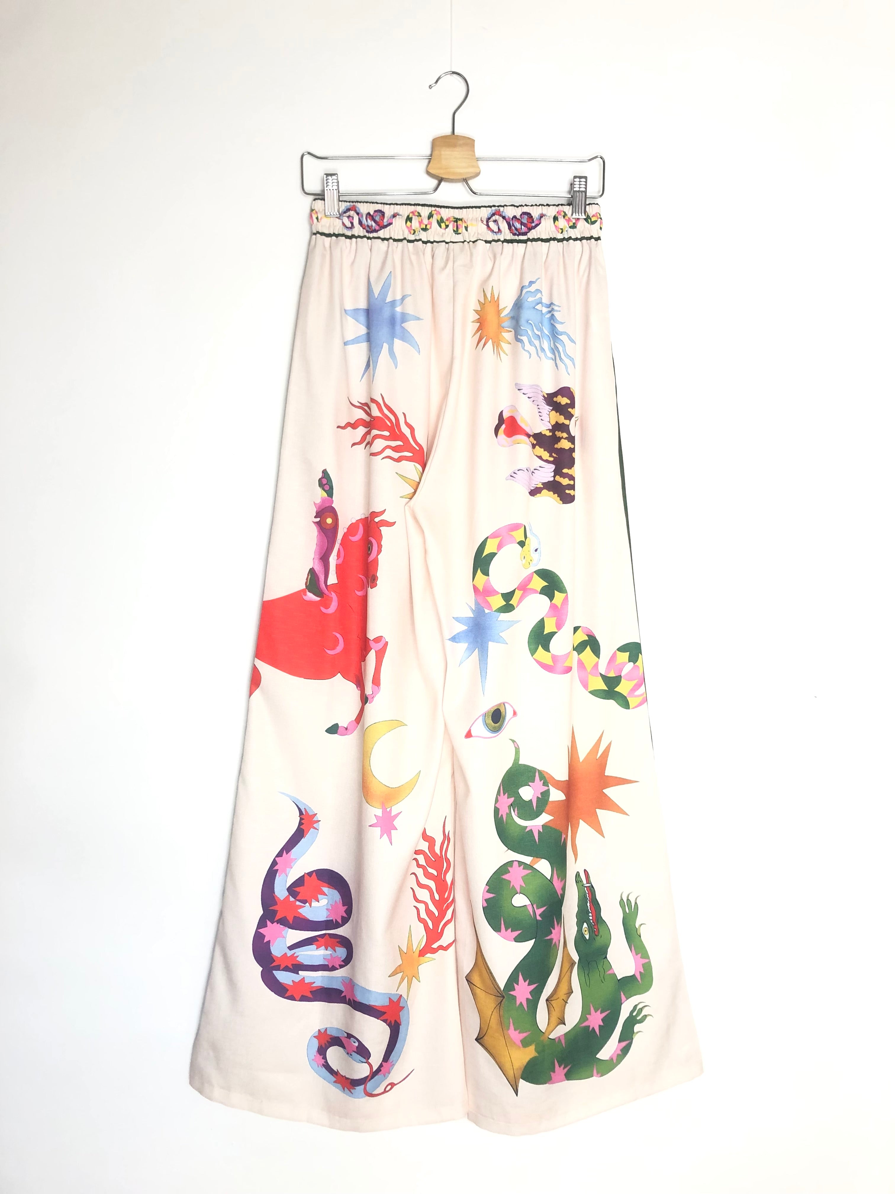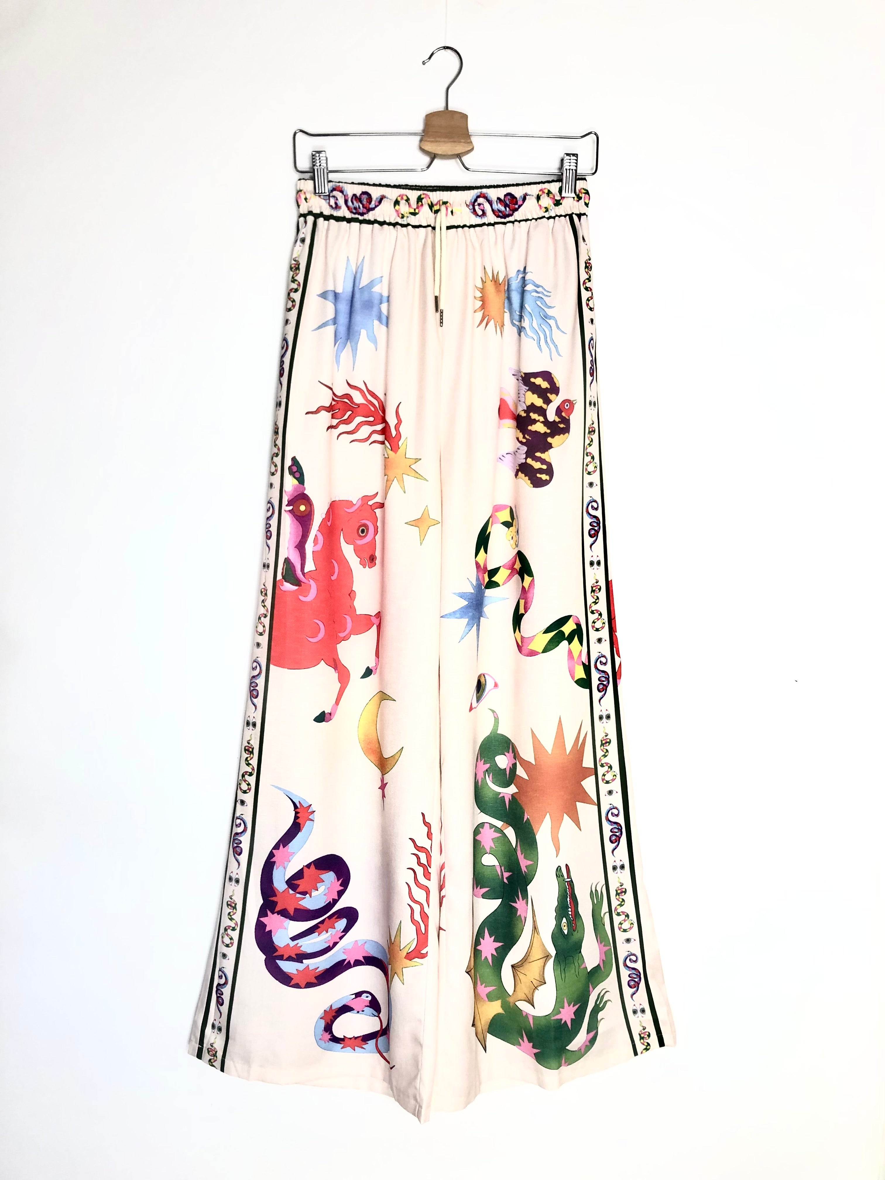 Multicolor Astro Pattern Elastic Waist Flowy Pants / LIKEMYCHOICE - Size M