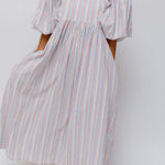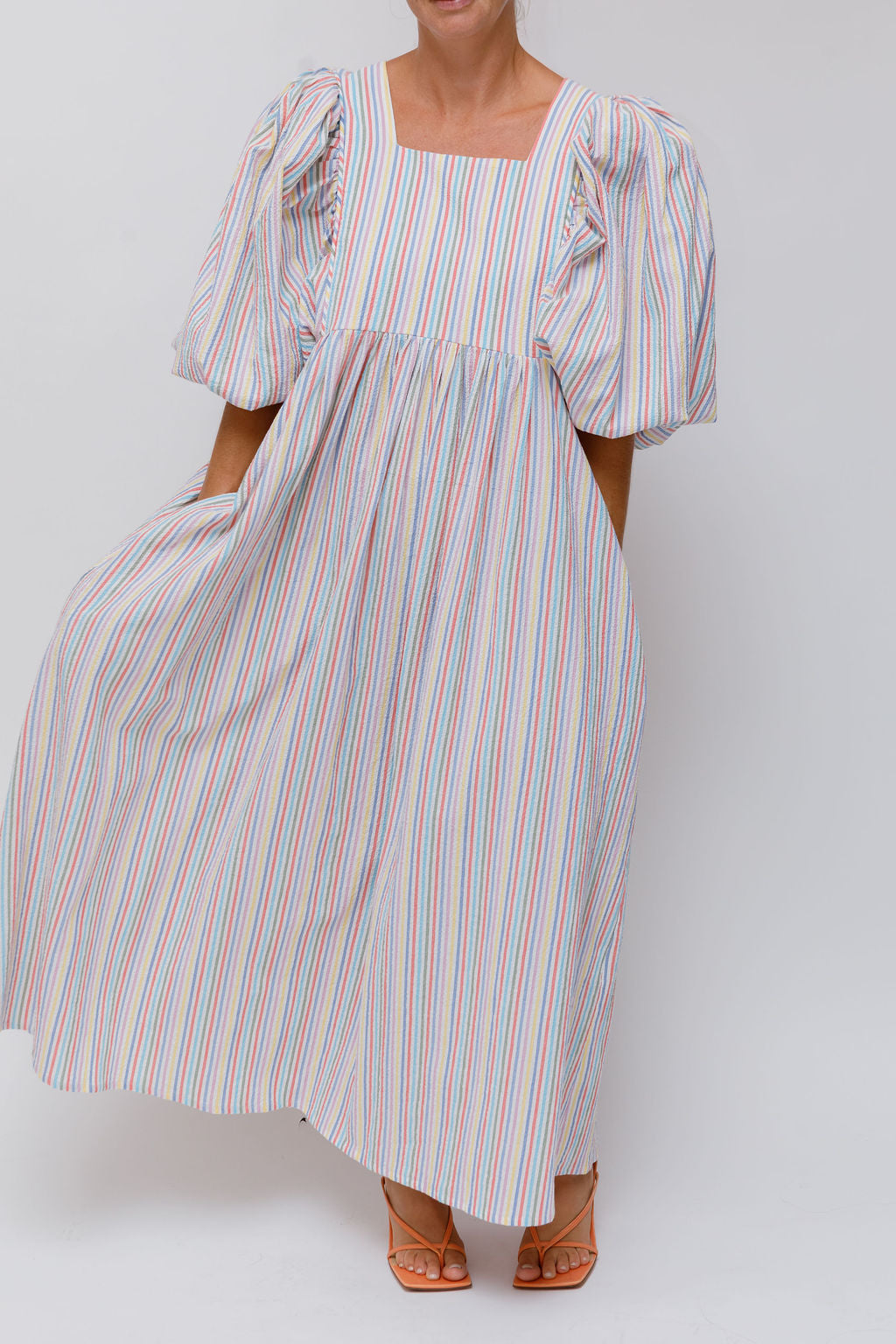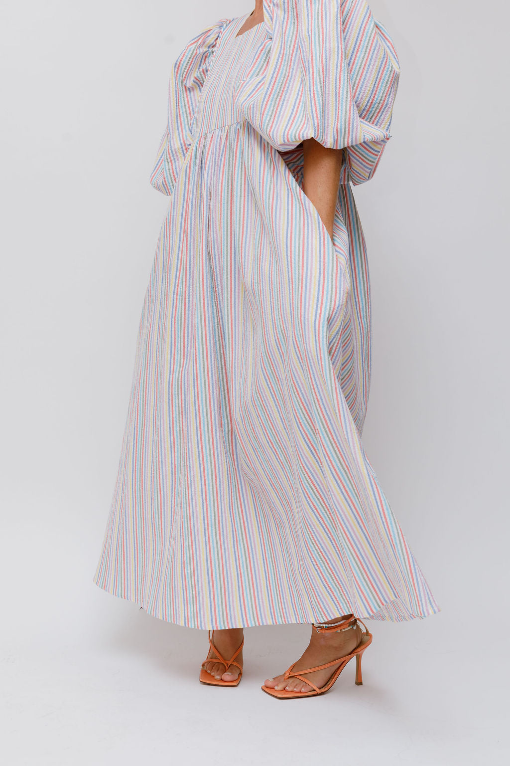 Multicolor CALYPSO Striped Cotton Puffed Sleeves Maxi Dress / THE LABEL EDITION - Size S