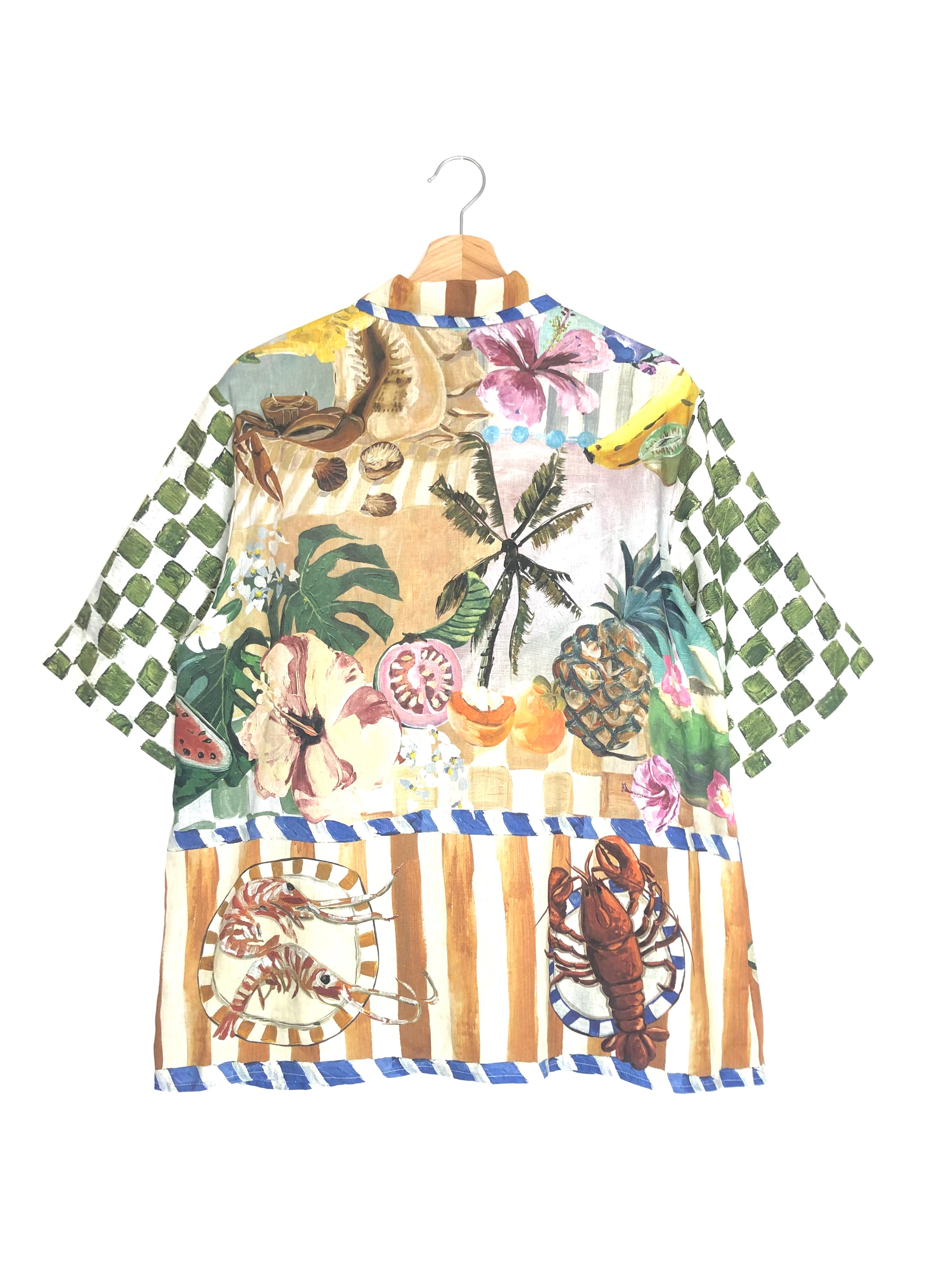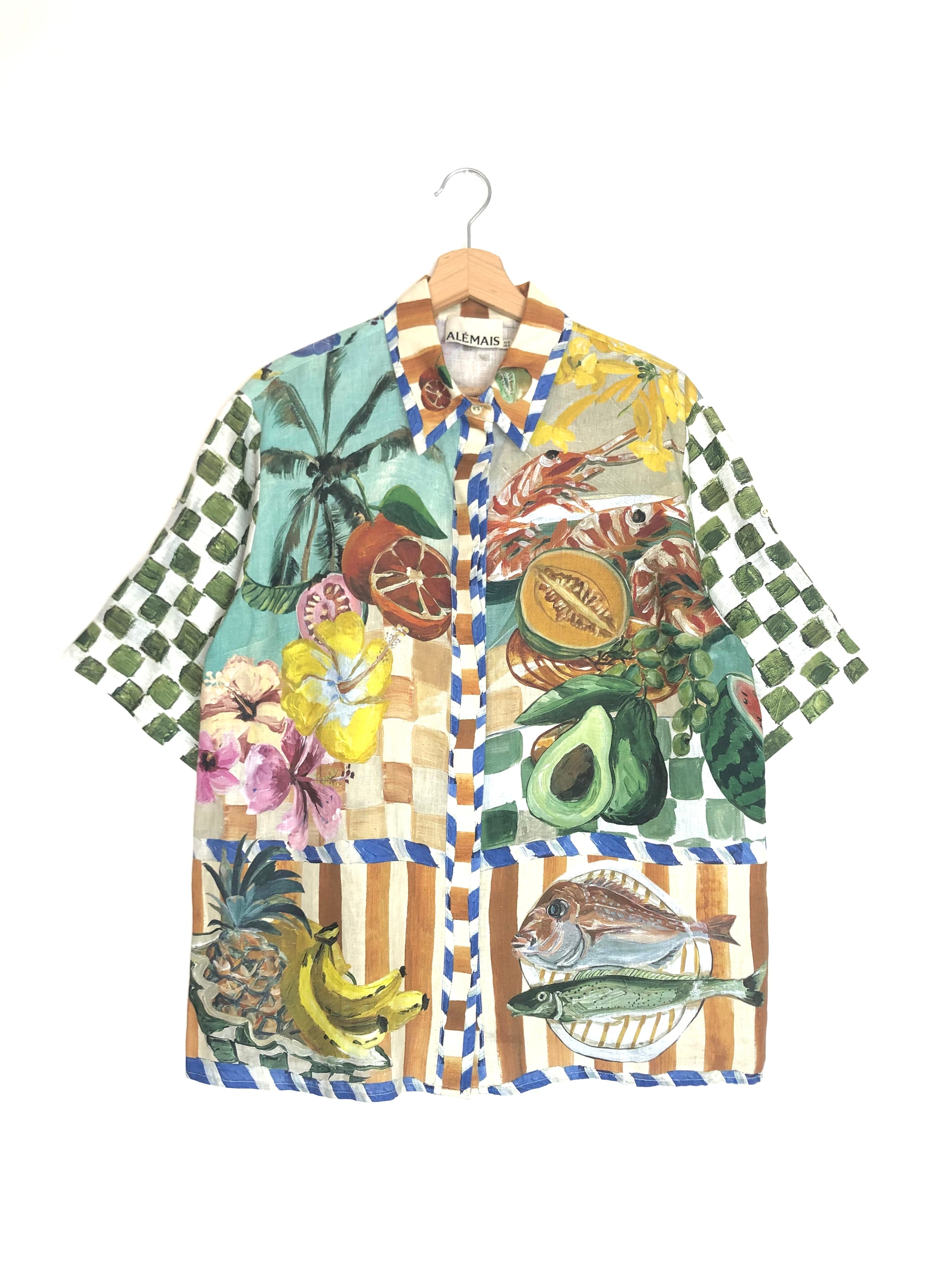 Multicolor Print THEO Oversized Short Sleeves Linen Shirt / ALEMAIS - Size US 4