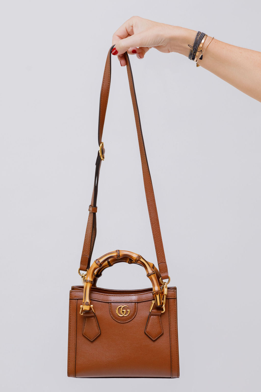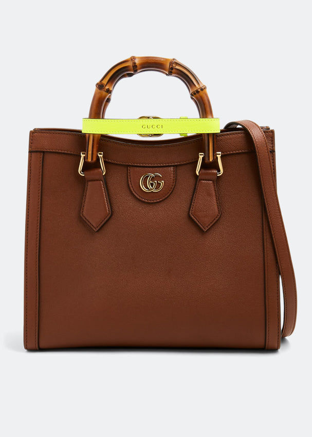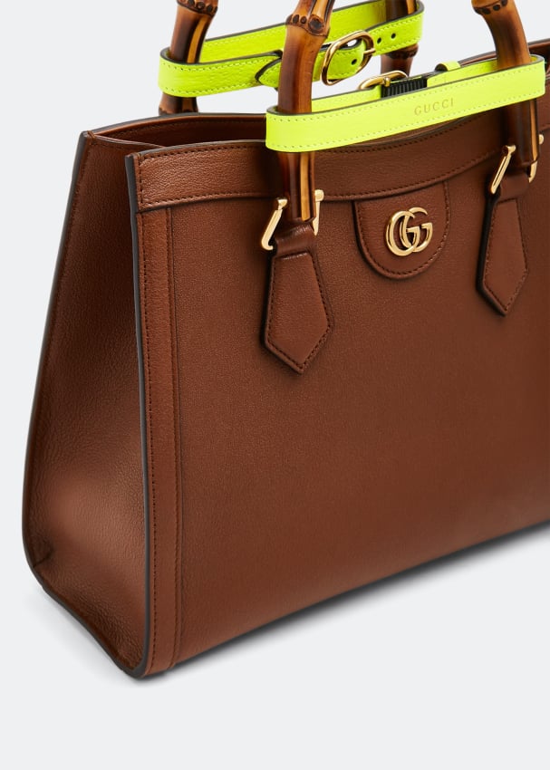 Defined by recognisable elements from Gucci, this Diana small tote bag features bamboo handles and Double G hardware. Take note of the leather exterior, decorative neon handle shapers, interior open pocket, and a detachable and adjustable shoulder strap.