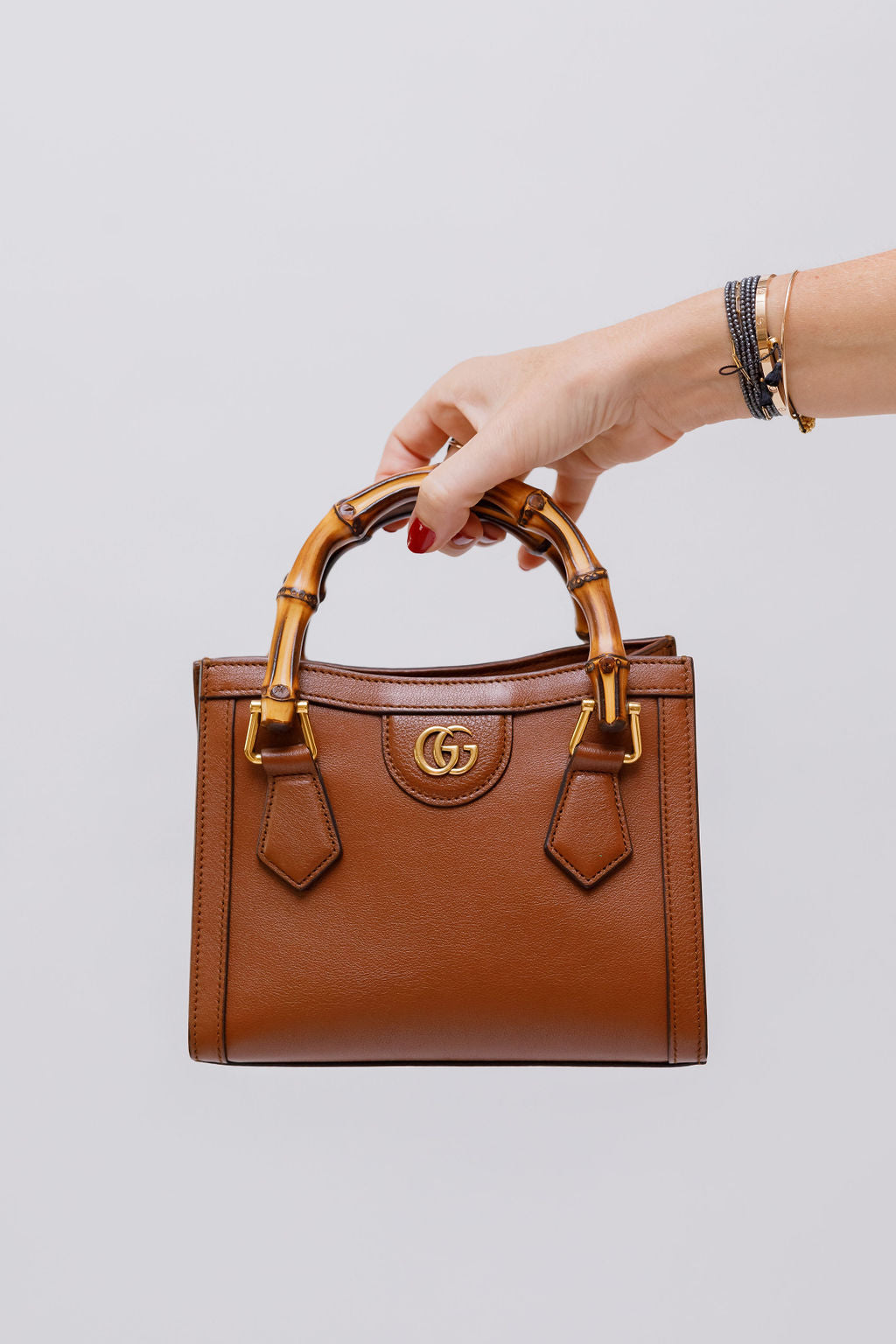 Natural Brown Leather Bamboo DIANA Mini Tote Bag / GUCCI