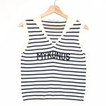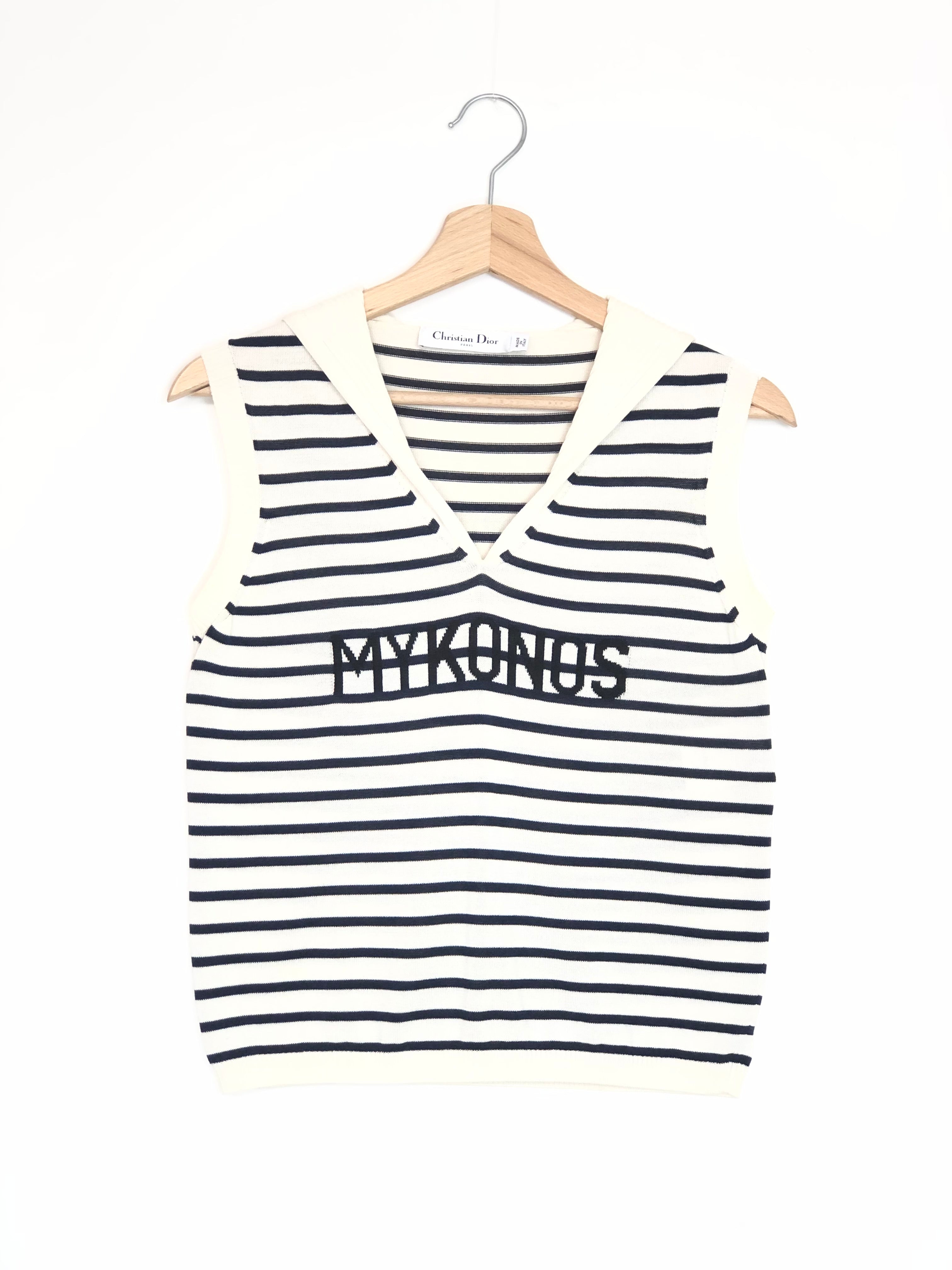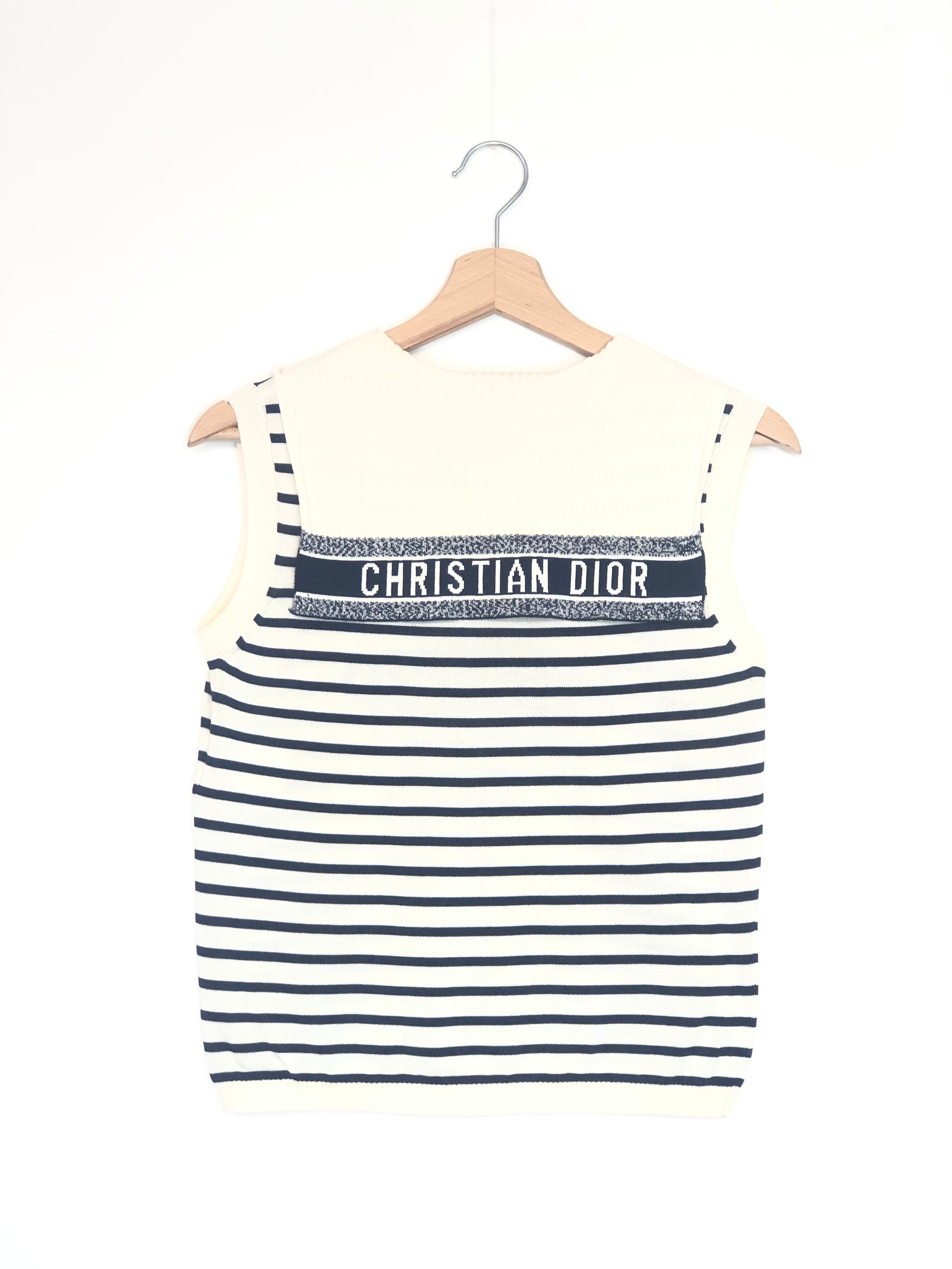 Navy and White Striped MYKONOS Cotton -Silk Knit Sleeveless Top / CHRISTIAN DIOR - Size 36
