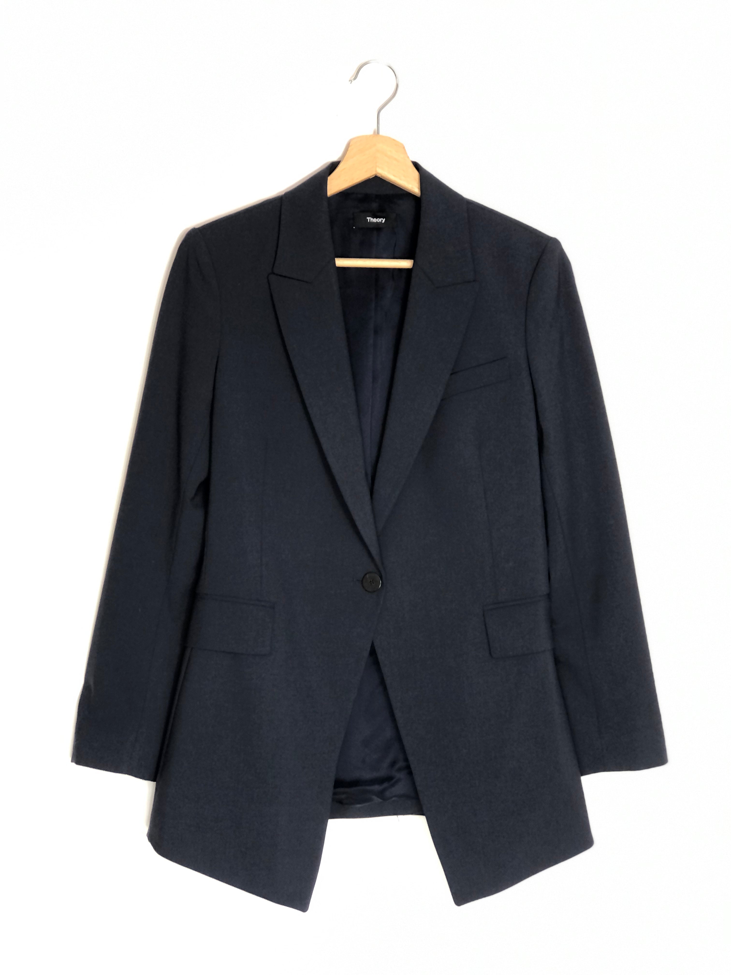 Navy Blue ETIENNETTE Wool-blend Jacket / THEORY - Size 2