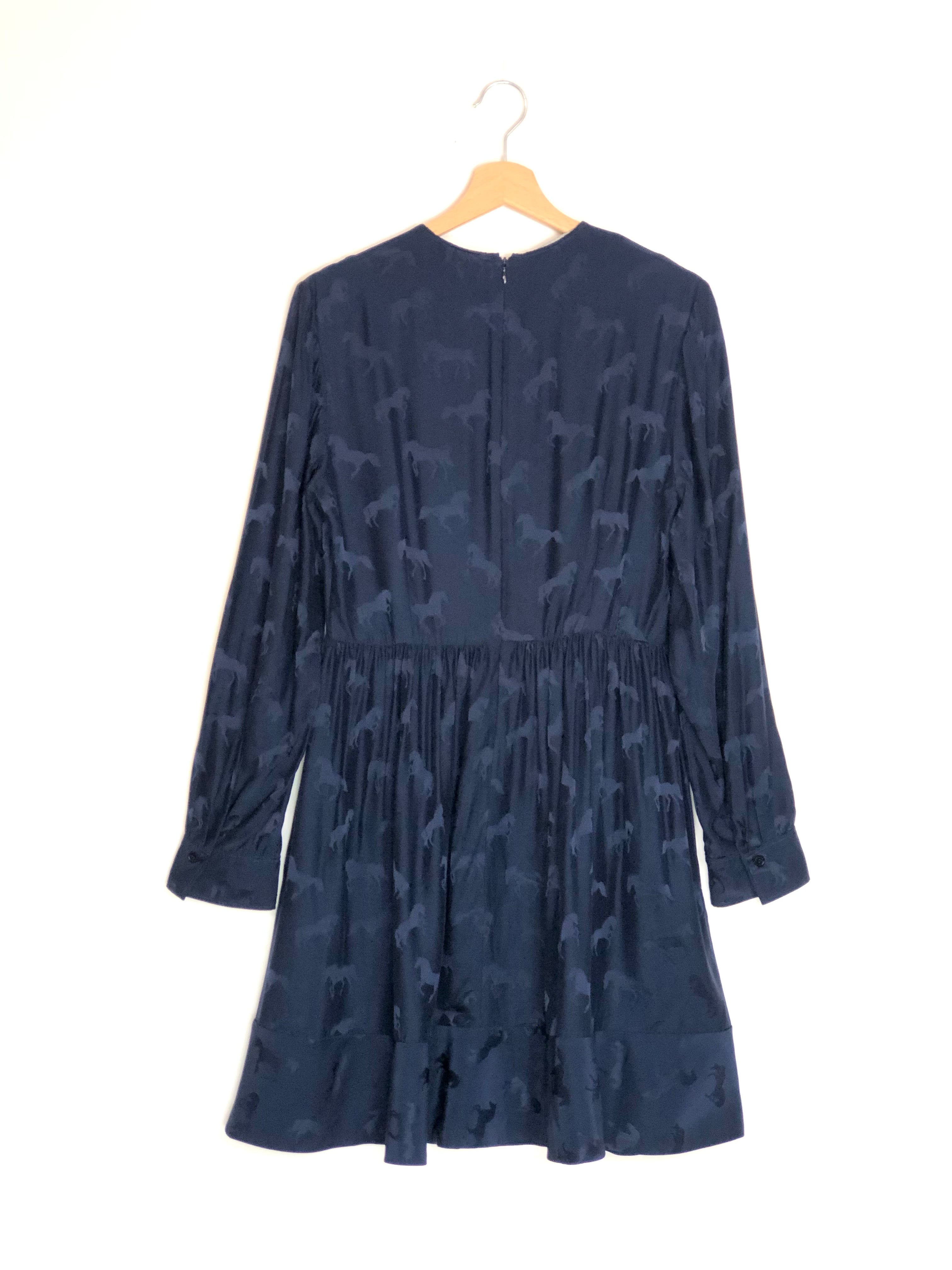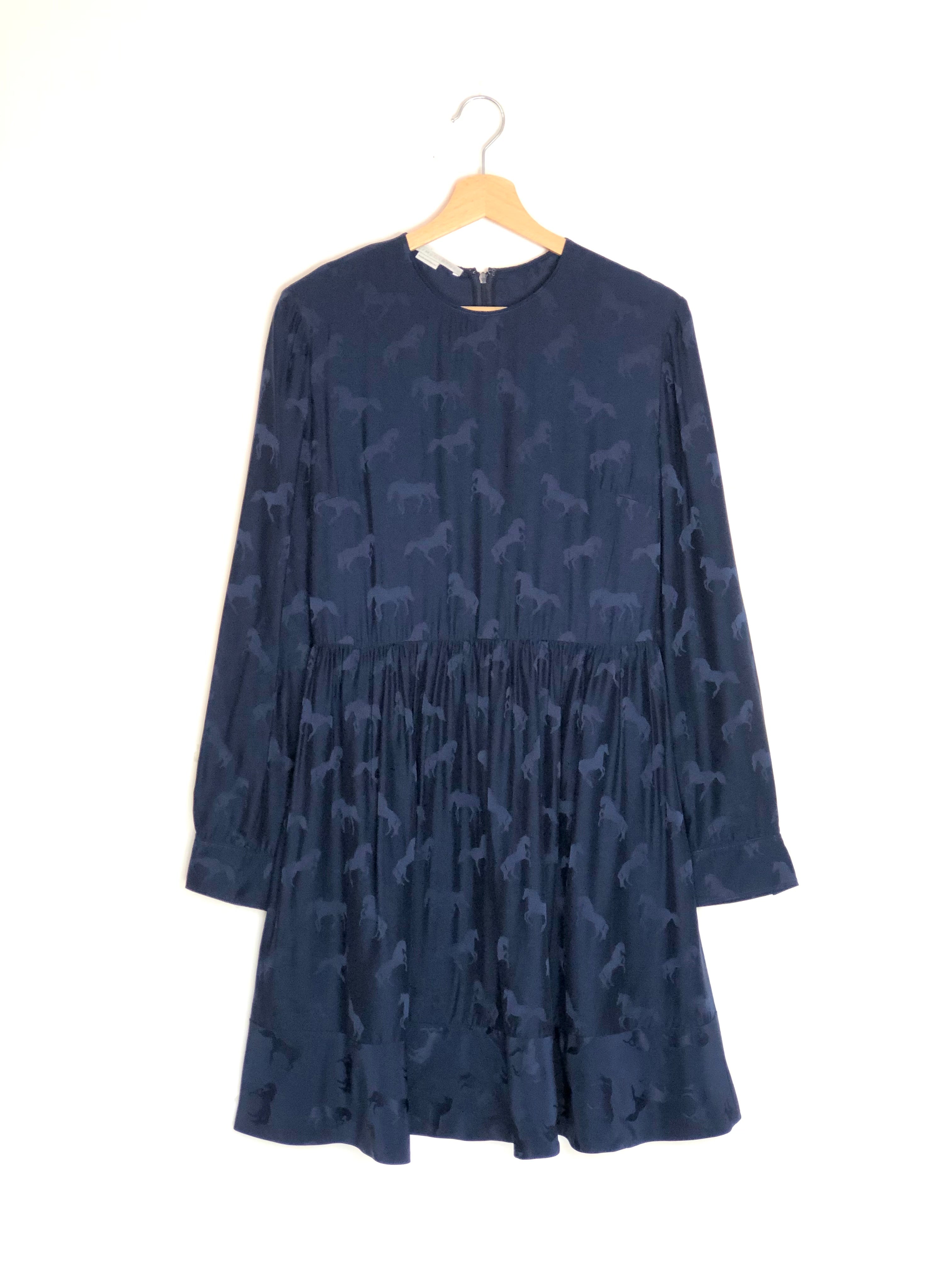 Navy Blue Horse Jacquard Silk Blend Dress / STELLA MCCARTNEY - Size 40