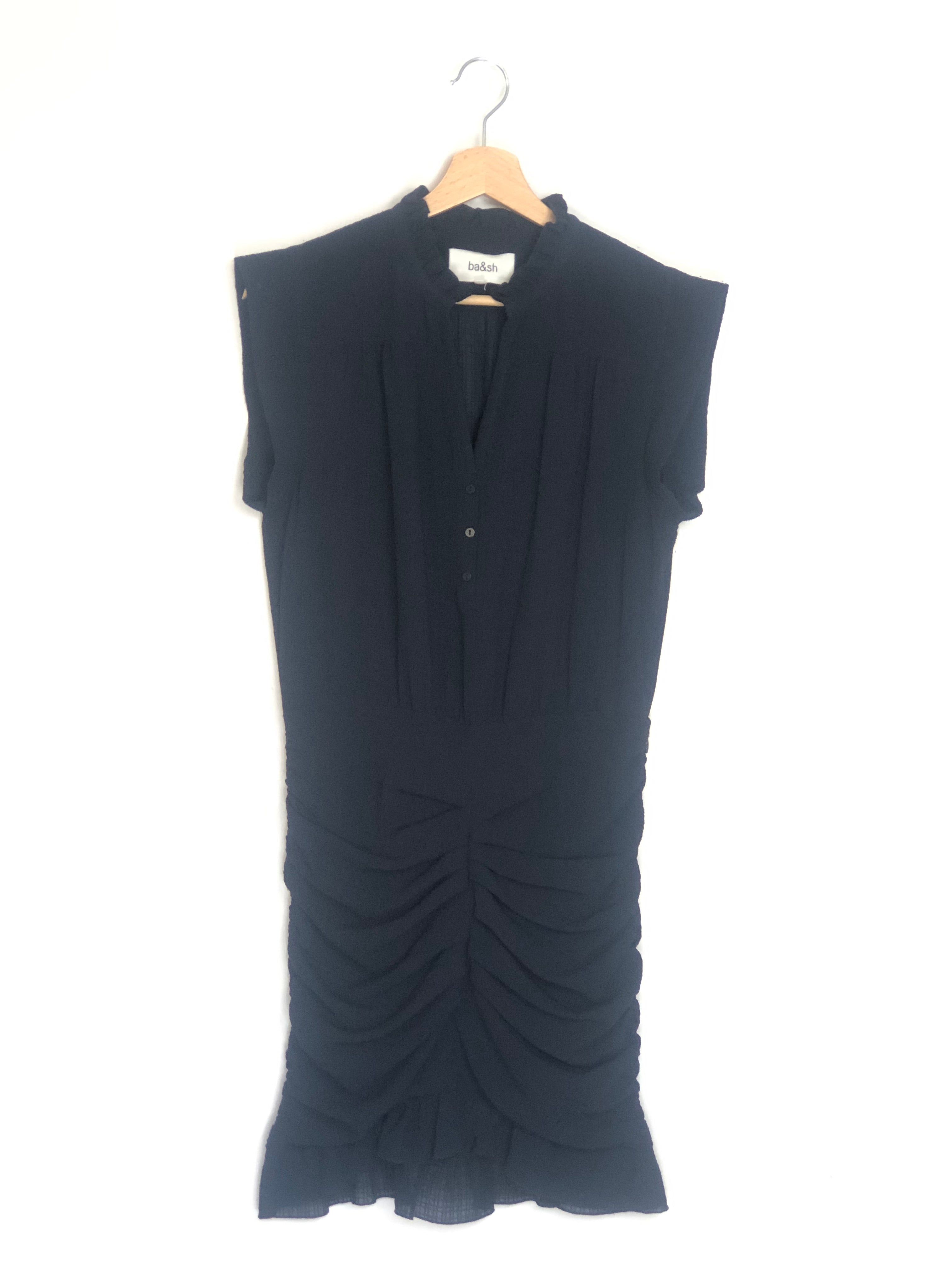 Navy Blue ISA Ruched Textured-gauze Mini Dress / BA&SH - Size 2