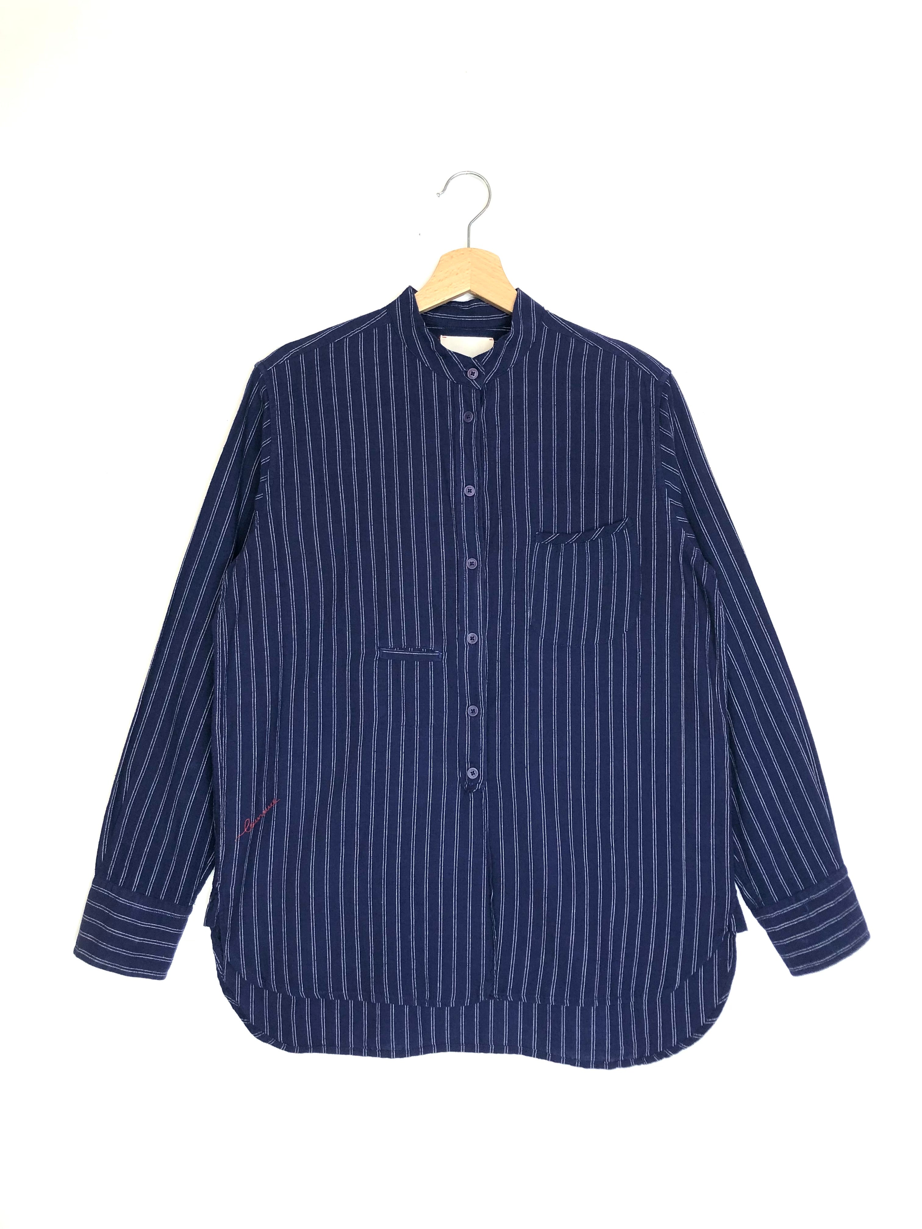 Navy Blue MAXOU Chambray Striped Blouse / LAURENCE BRAS - Size 36