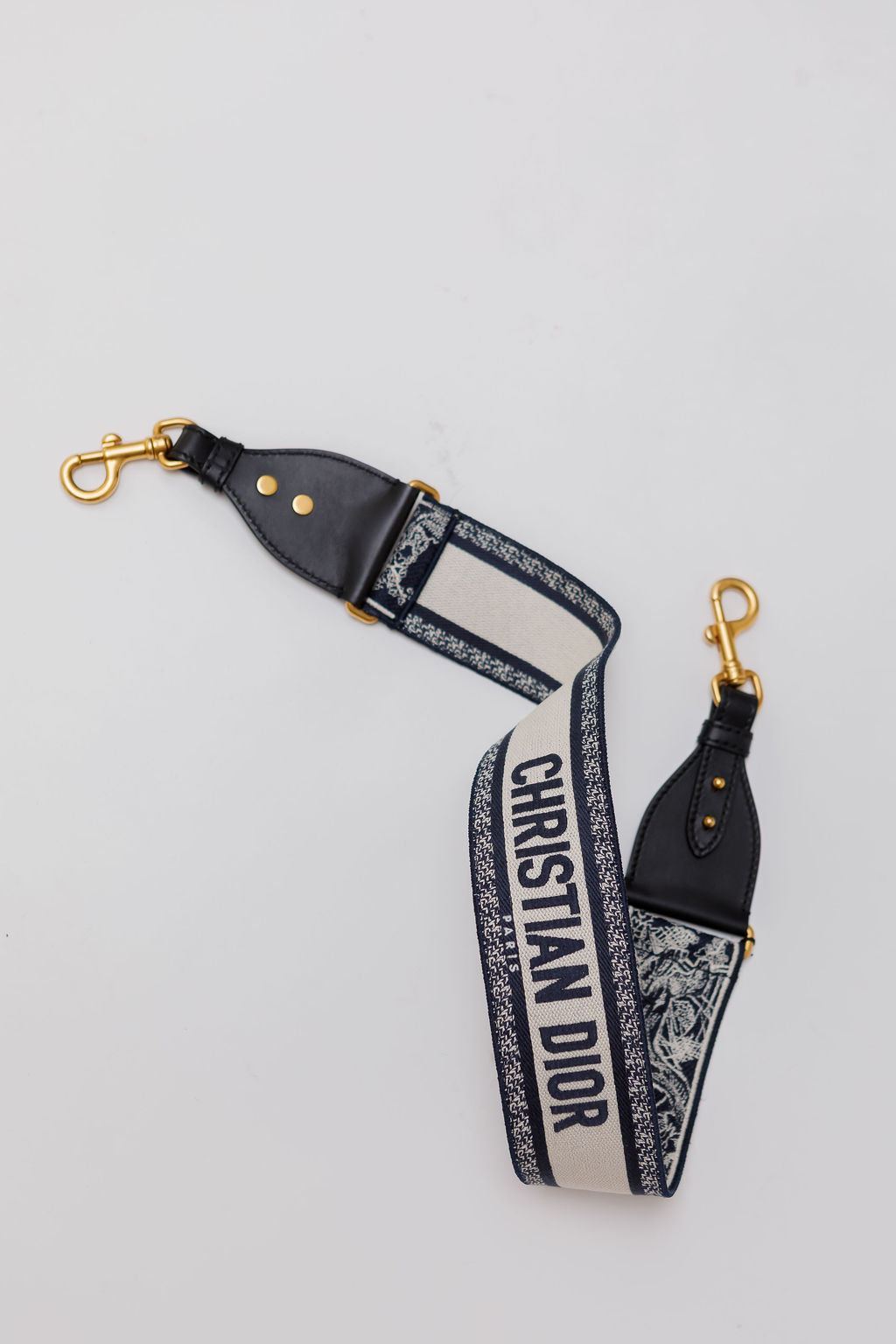 Navy Blue OBLIQUE Logo Canvas Adjustable Shoulder Strap with Ring / CHRISTIAN DIOR