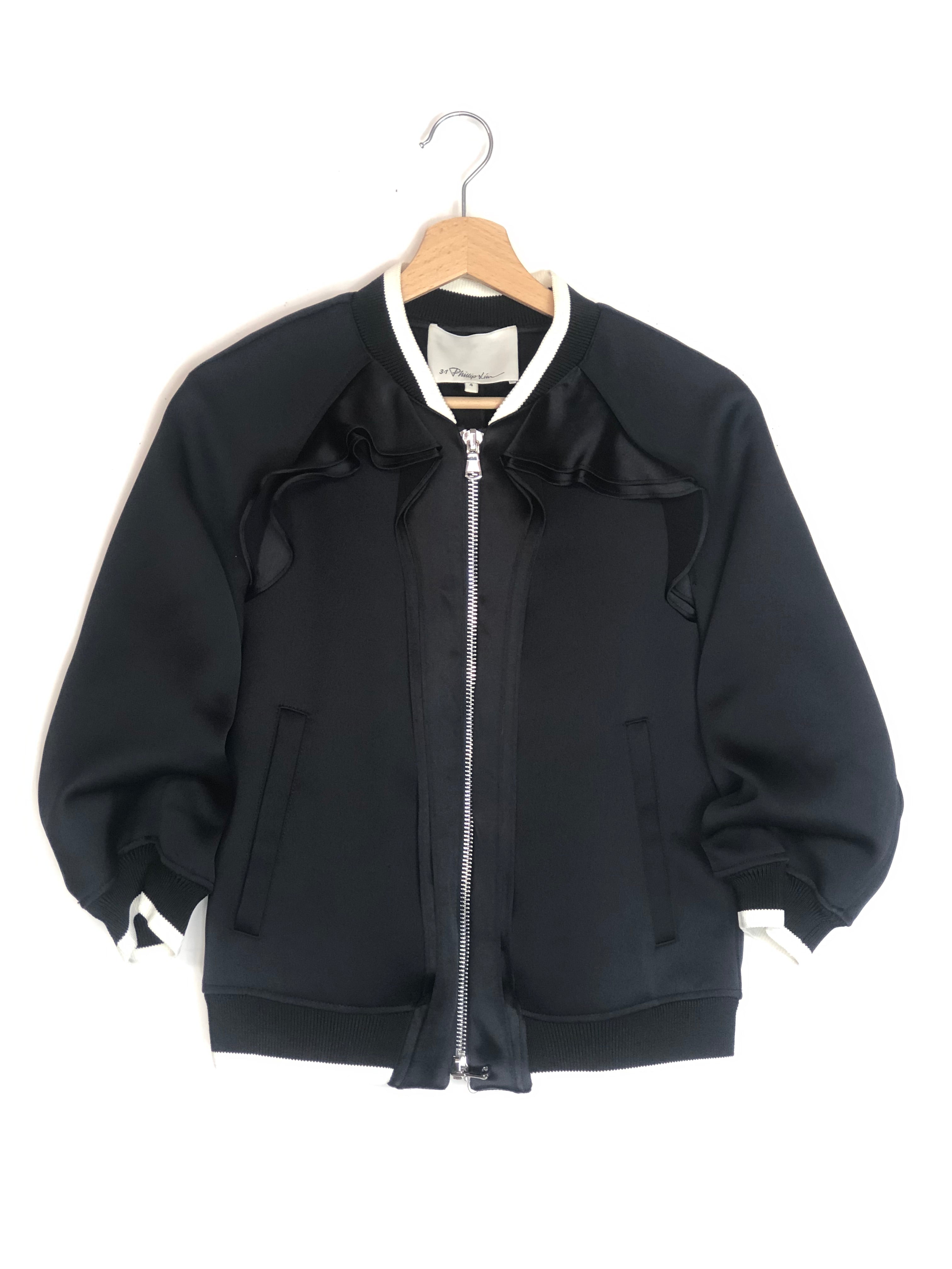 Navy Blue Ruffled Trim Bomber Jacket / 3.1 PHILLIP LIM - Size US 4