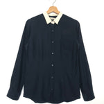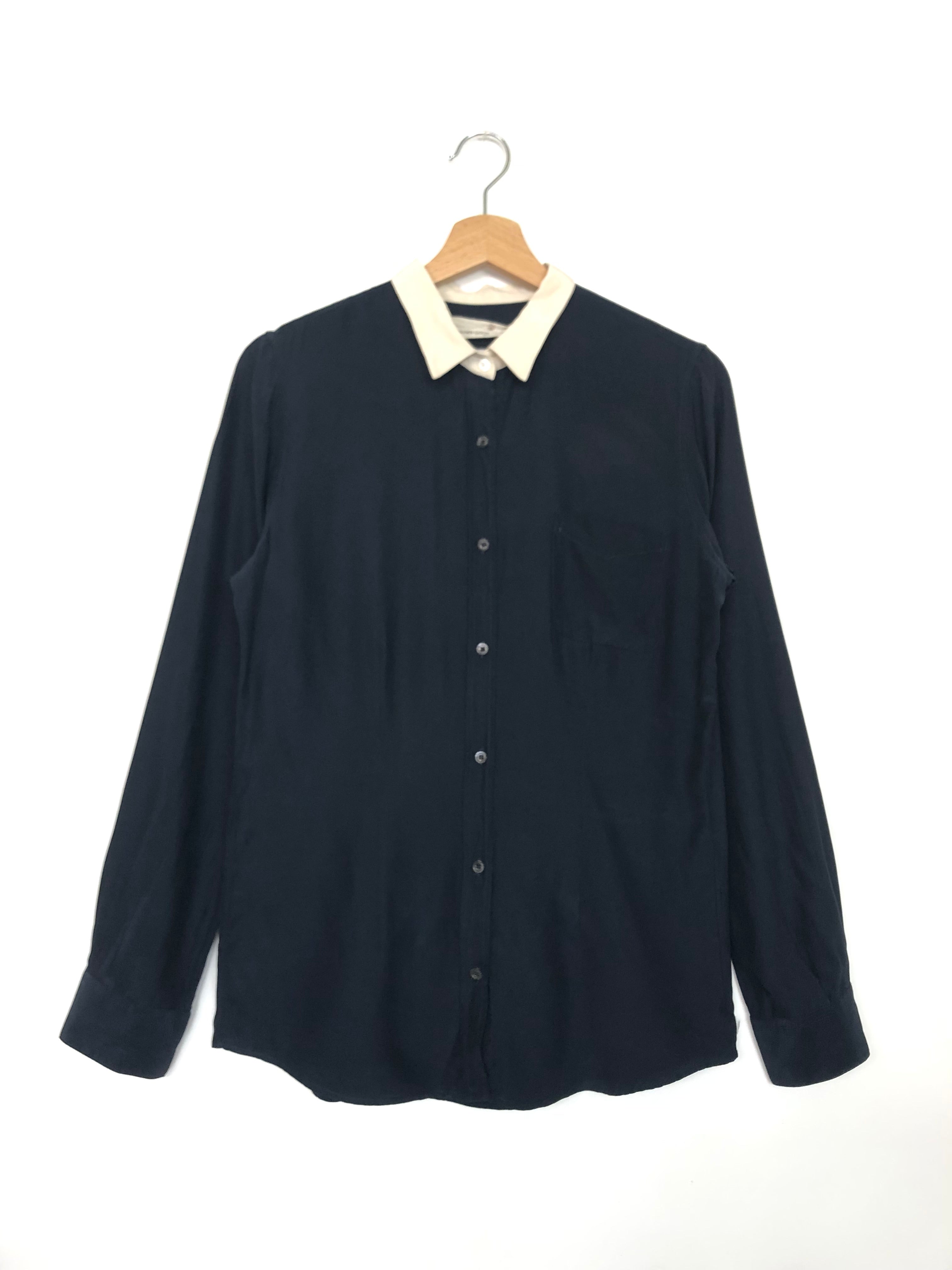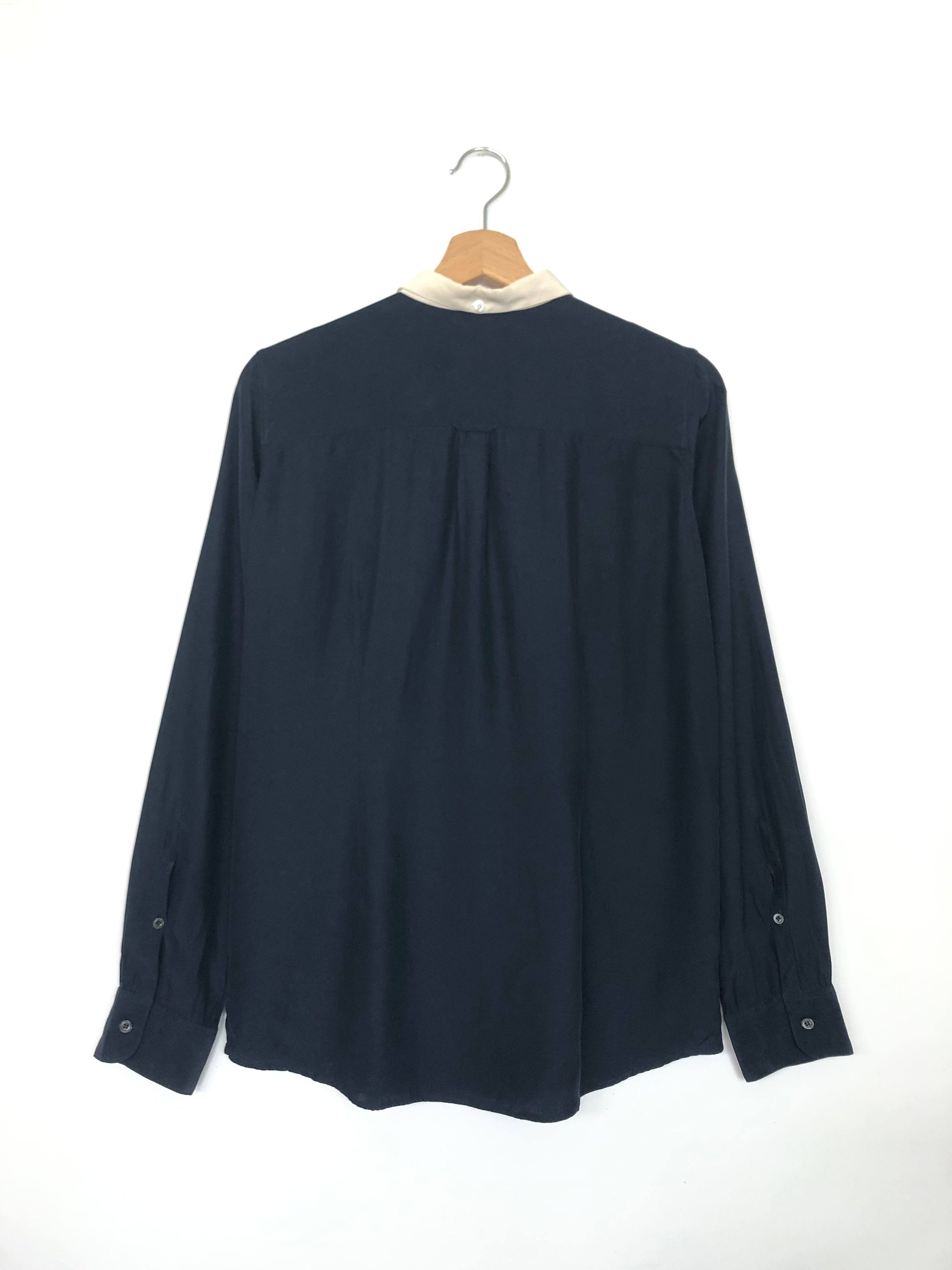 Navy Blue with White Collar Silk Satin Shirt / GOLDEN GOOSE DELUXE - Size L