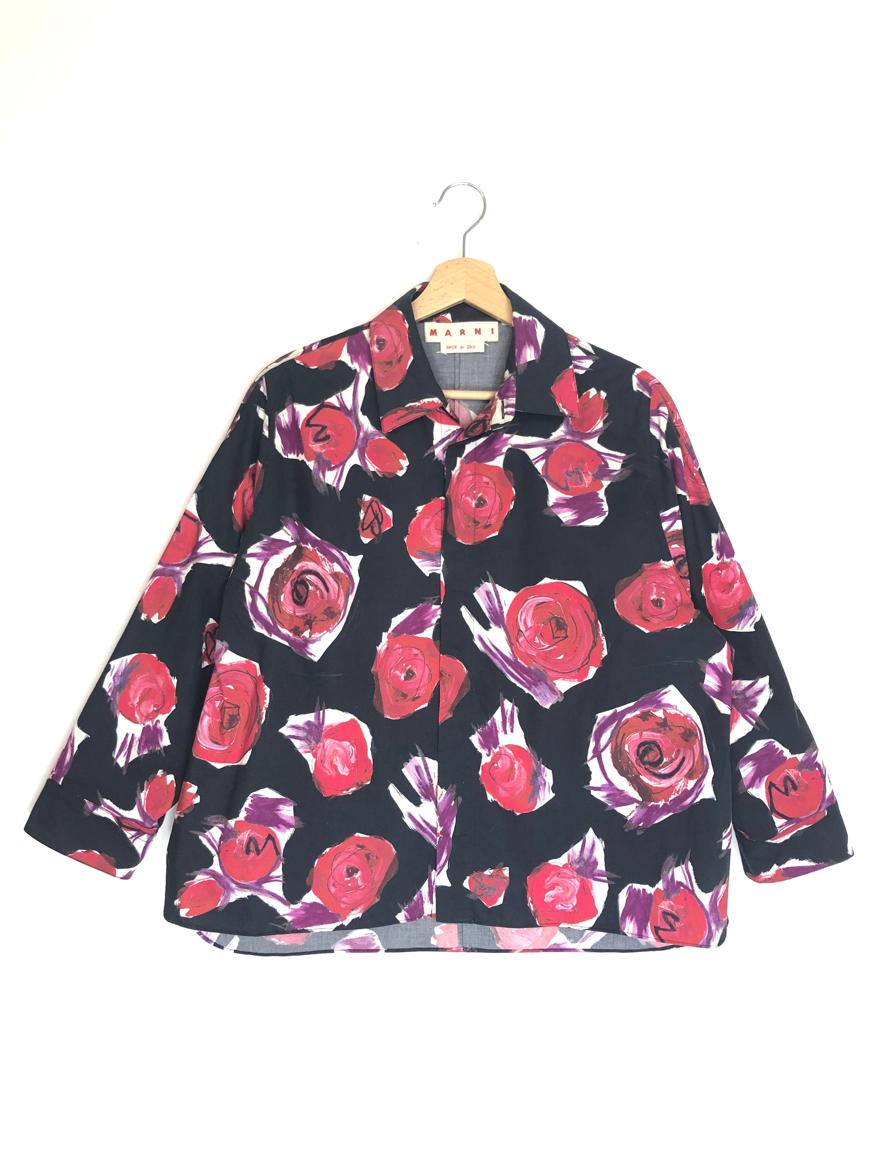 Navy Roses Print Poplin Shirt / MARNI - Size IT 42