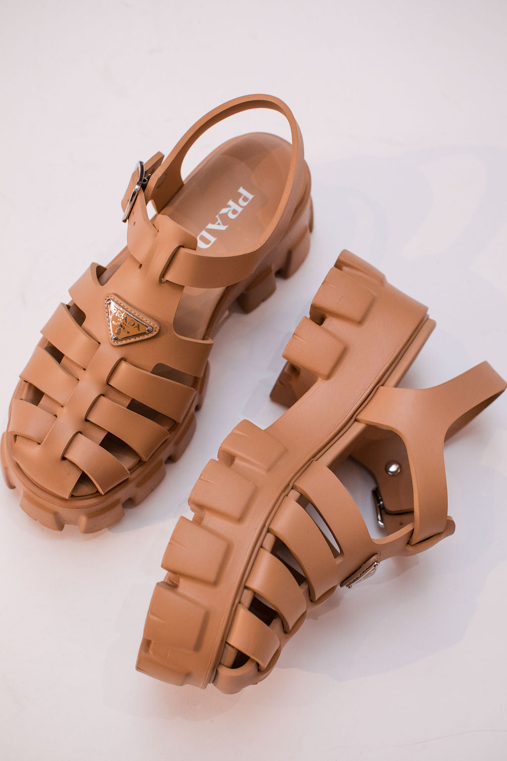 Neutral Rubber Monolith Cage Platform Sandals / PRADA - Size 38