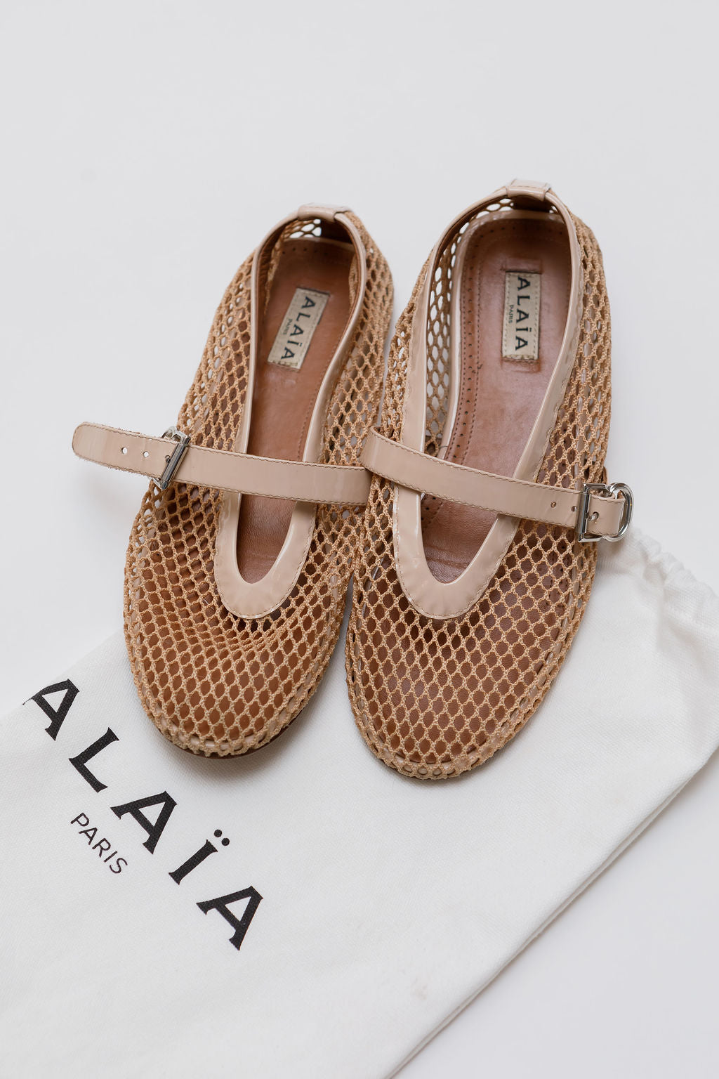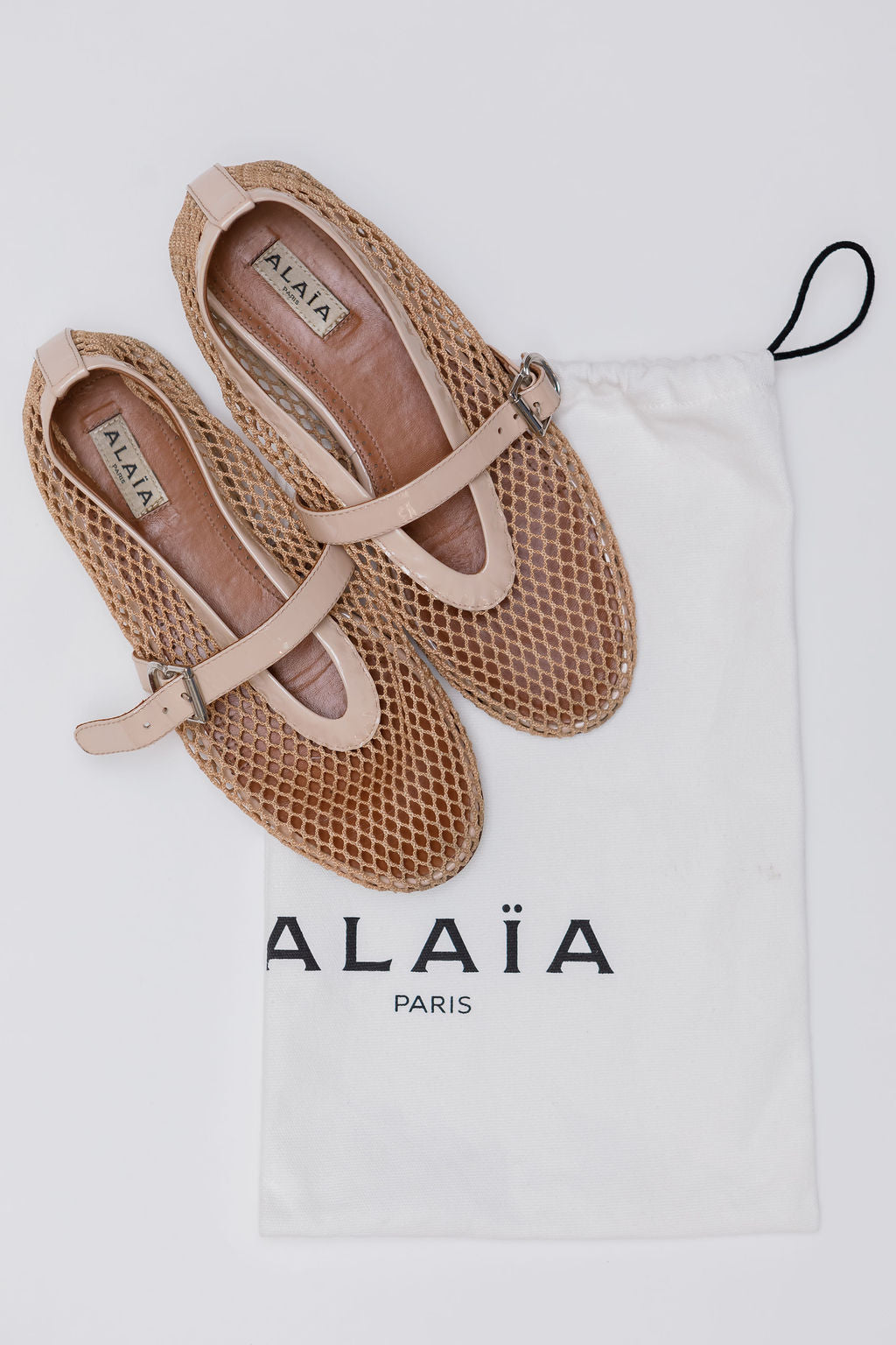 Nude Fishnet and Patent Leather Ballet Flats / ALAIA - Size 38