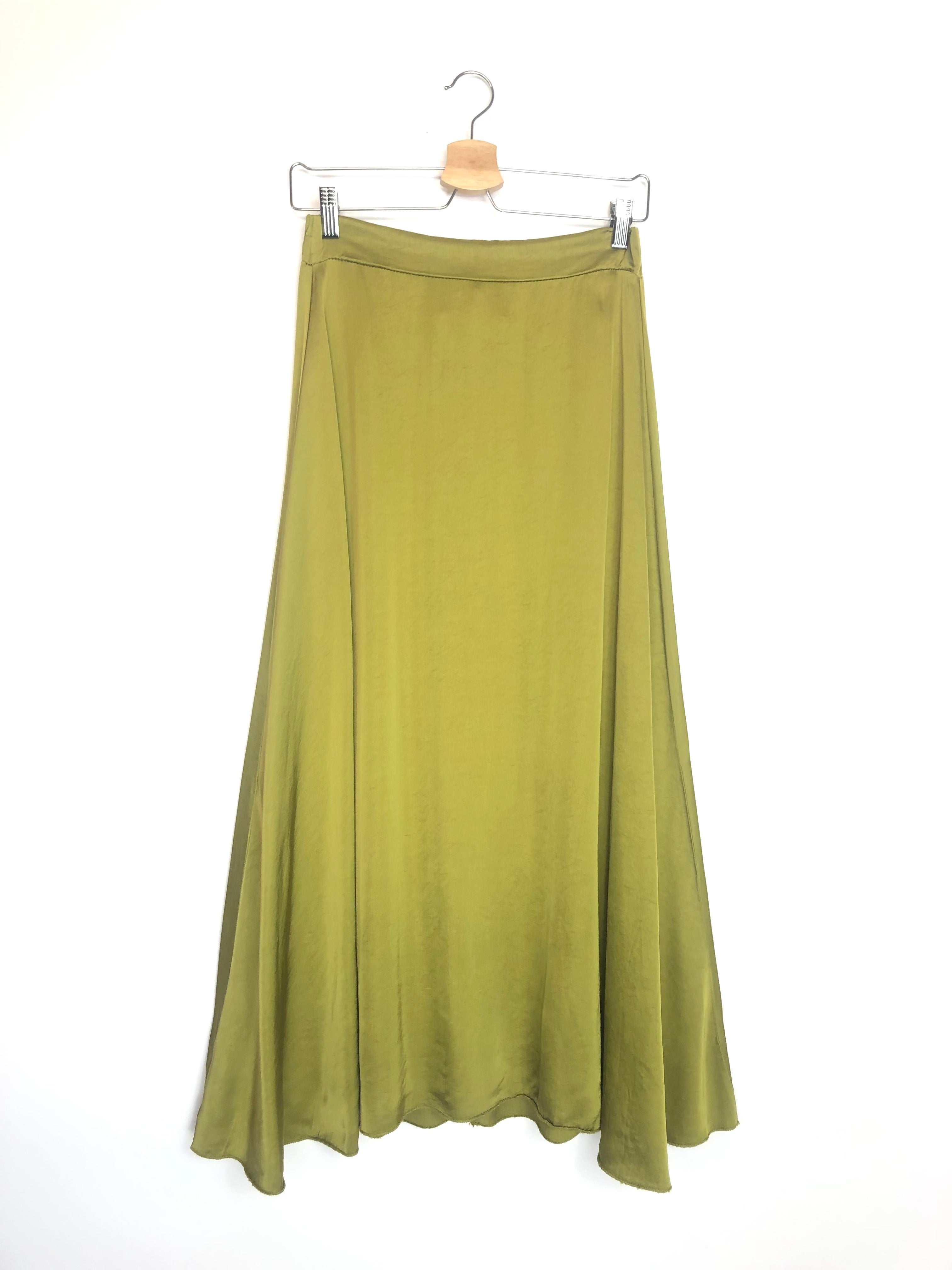 Olive Green Satinated Midi Skirt - One Size