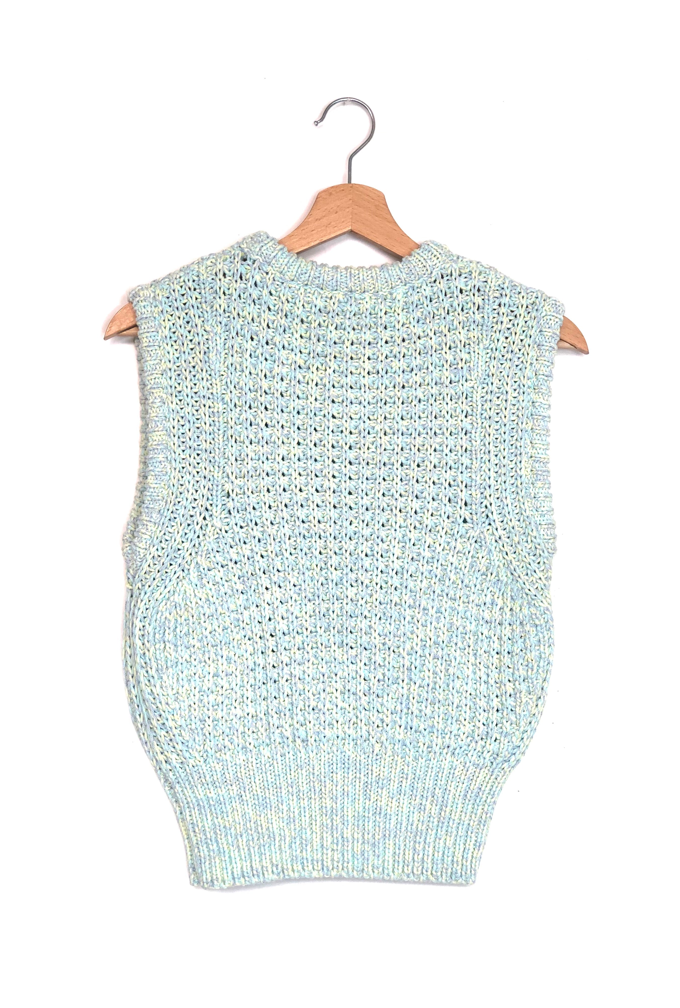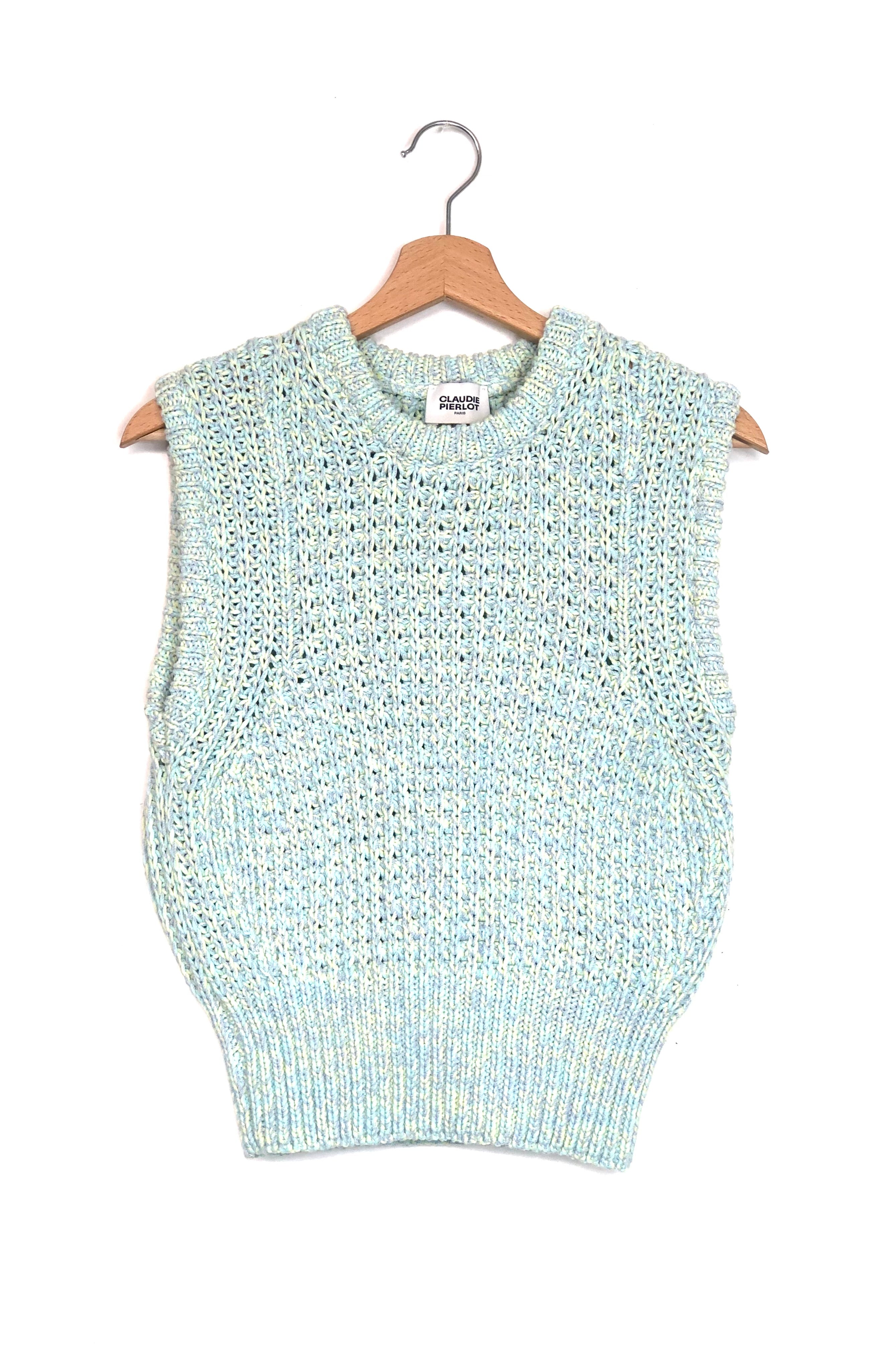 Pastel Green/Yellow MICETTA Sleeveless Knit Cotton-blend Sweater Vest / CLAUDIE PIERLOT - Size 1