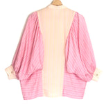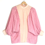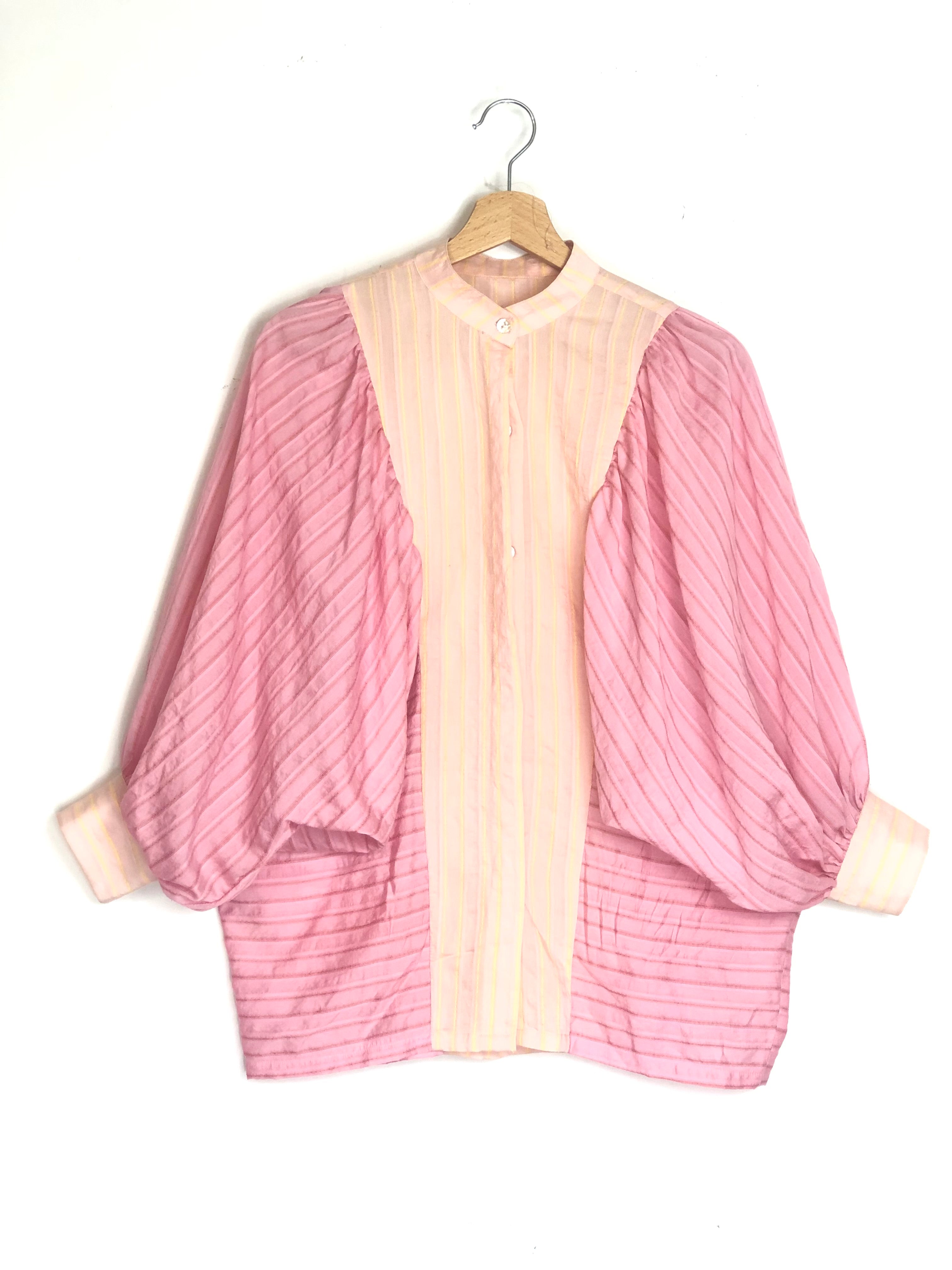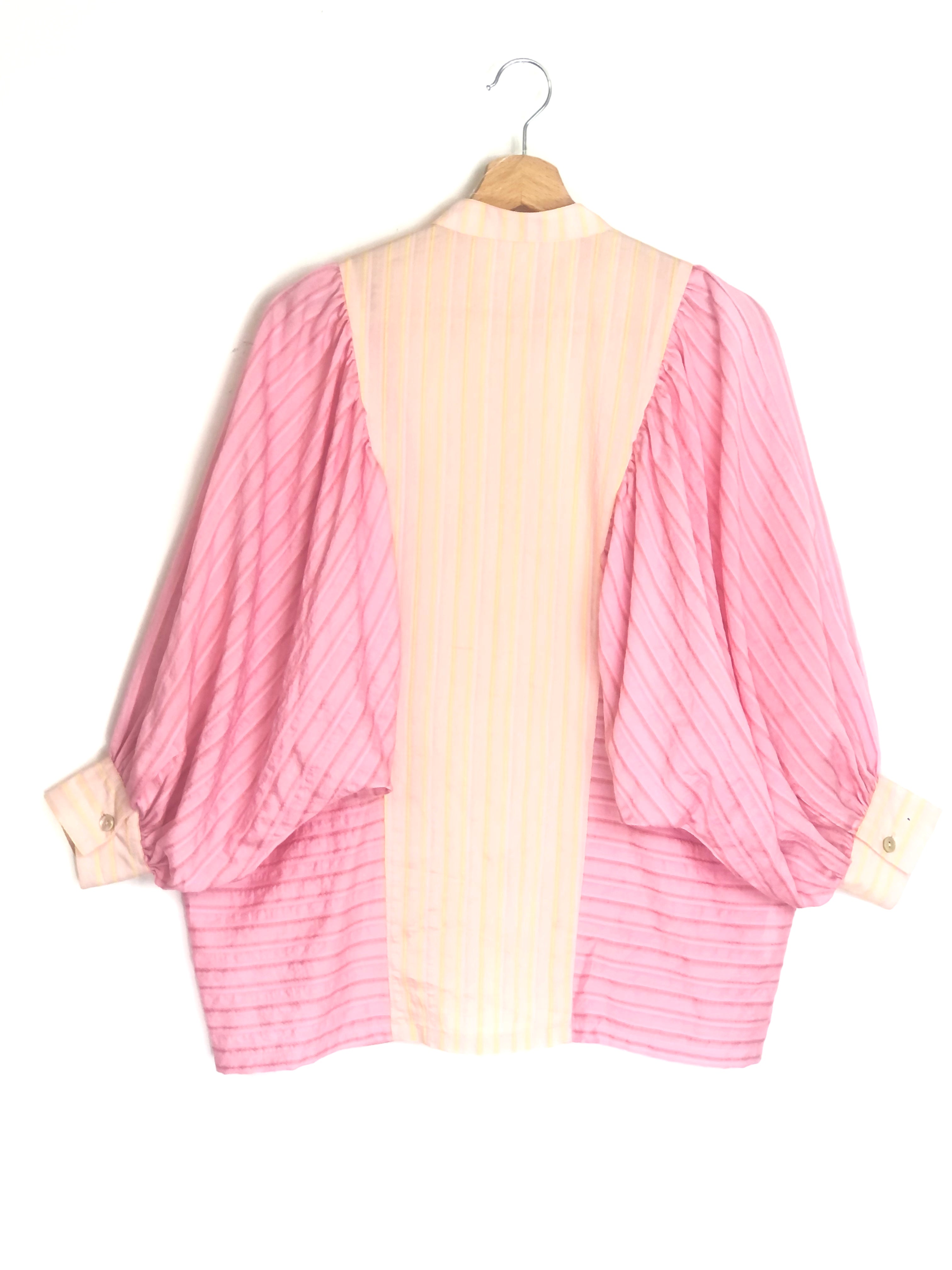 Pink and Yellow Striped Puffed Sleeves Cotton Blouse / BY MARY - Size S