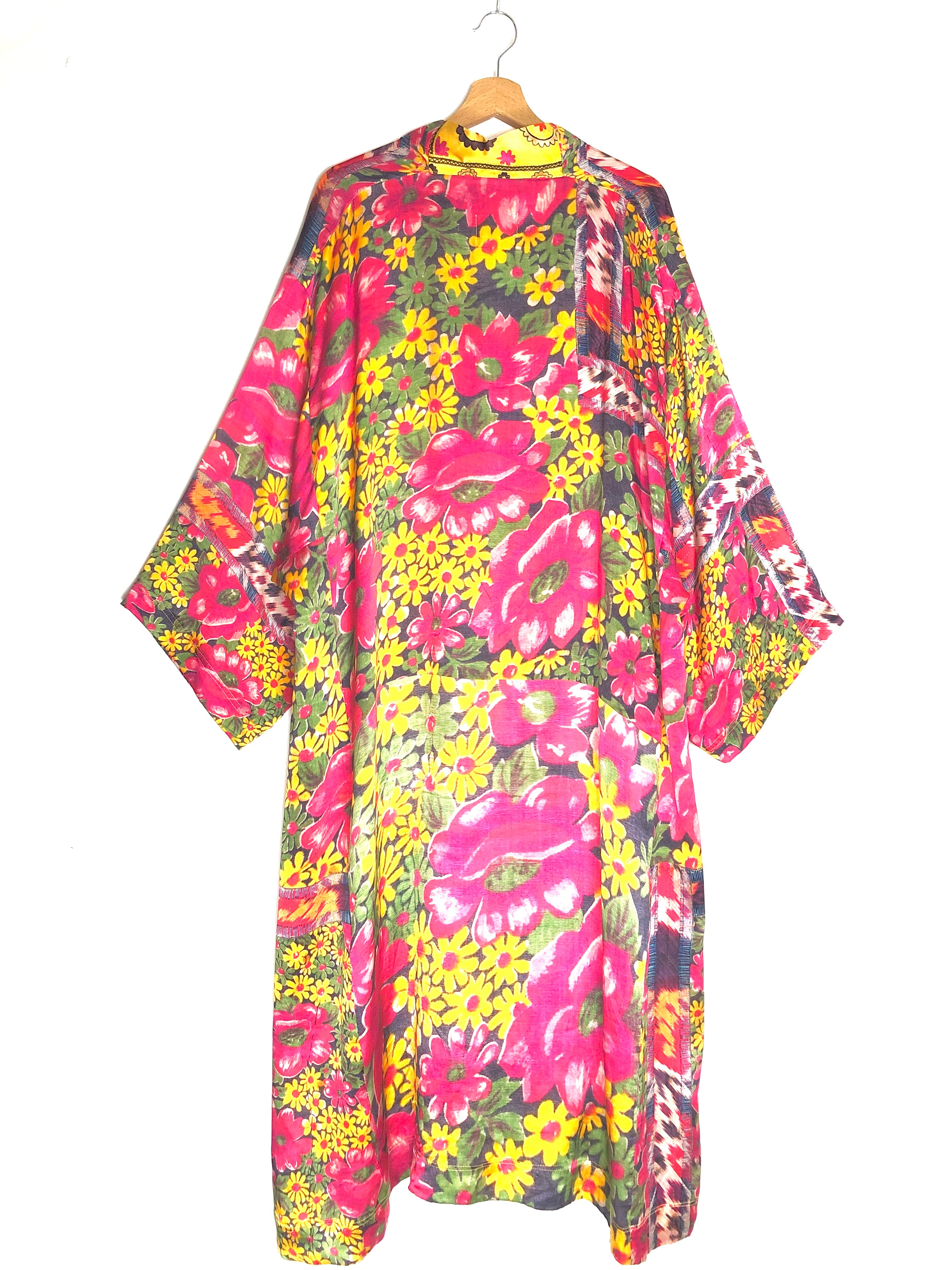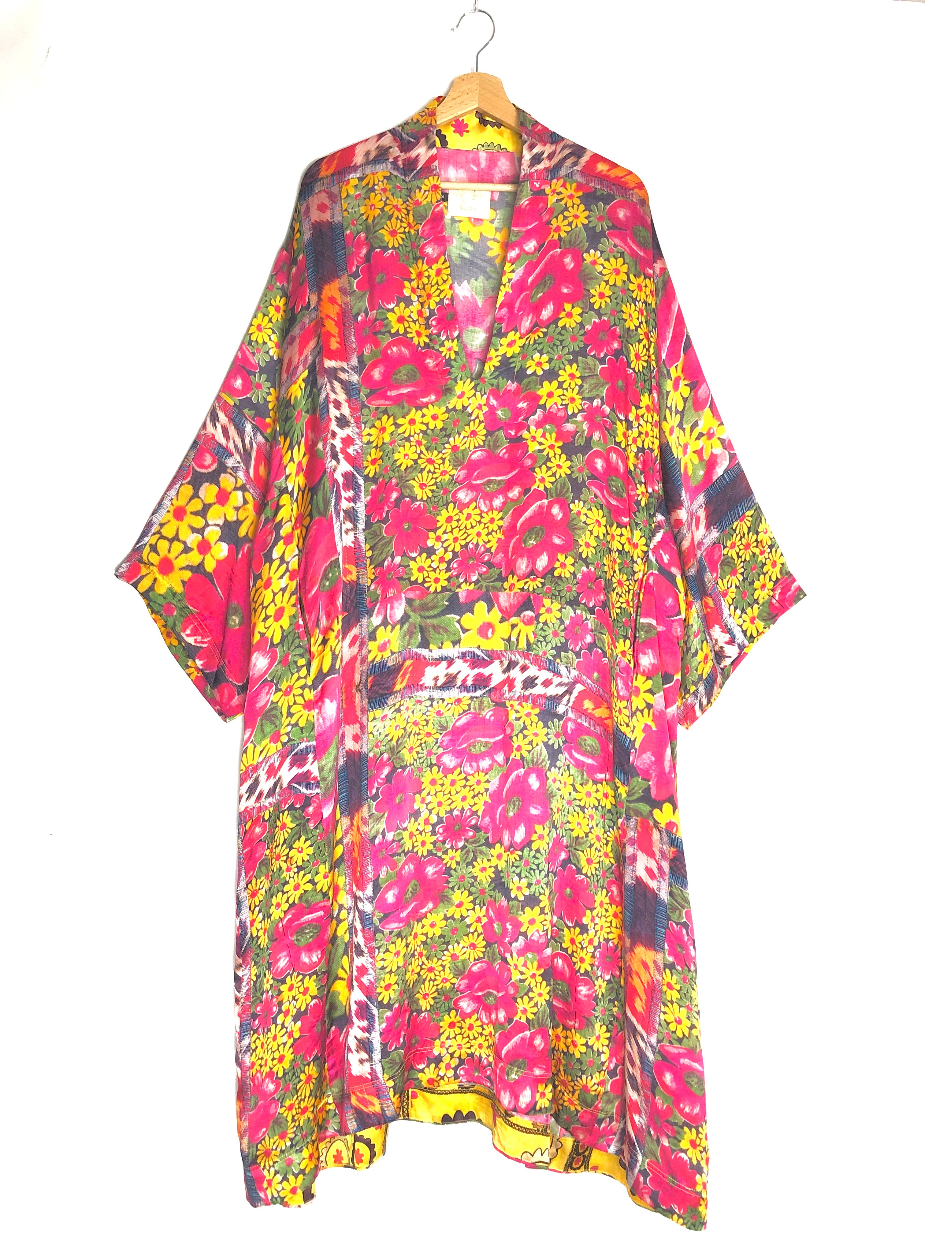 Pink Multicolor Floral Kaftan Midi Dress / BOKJA - Size S