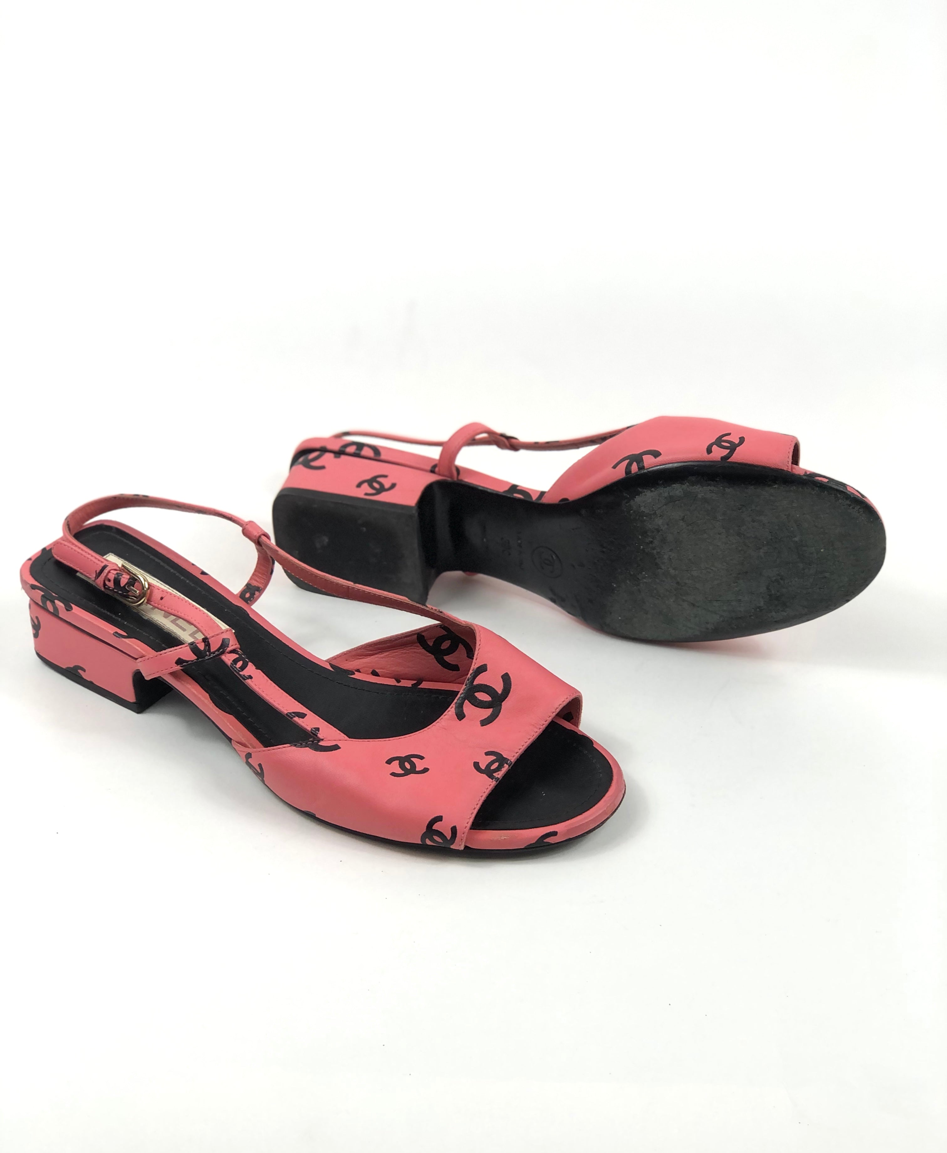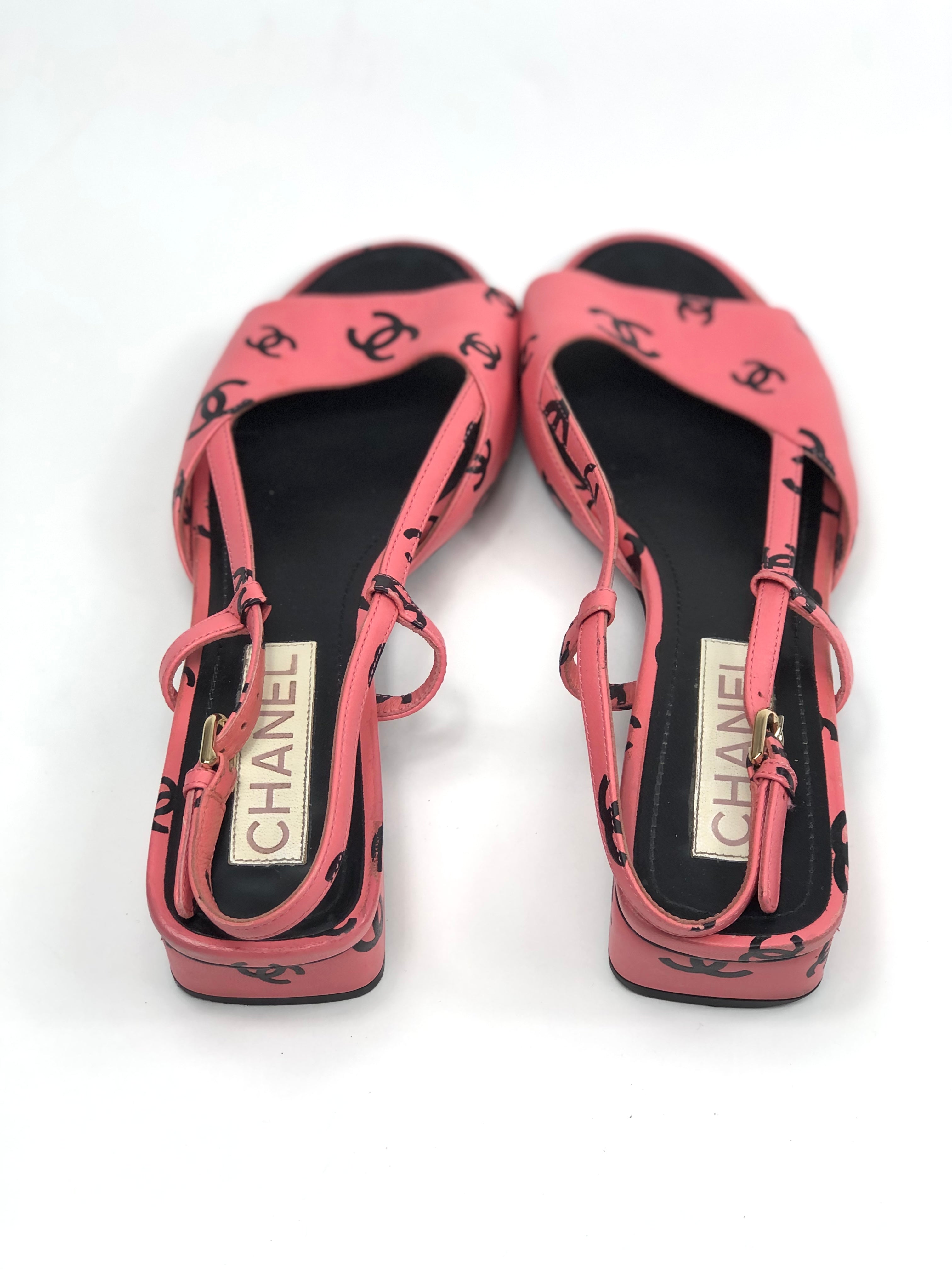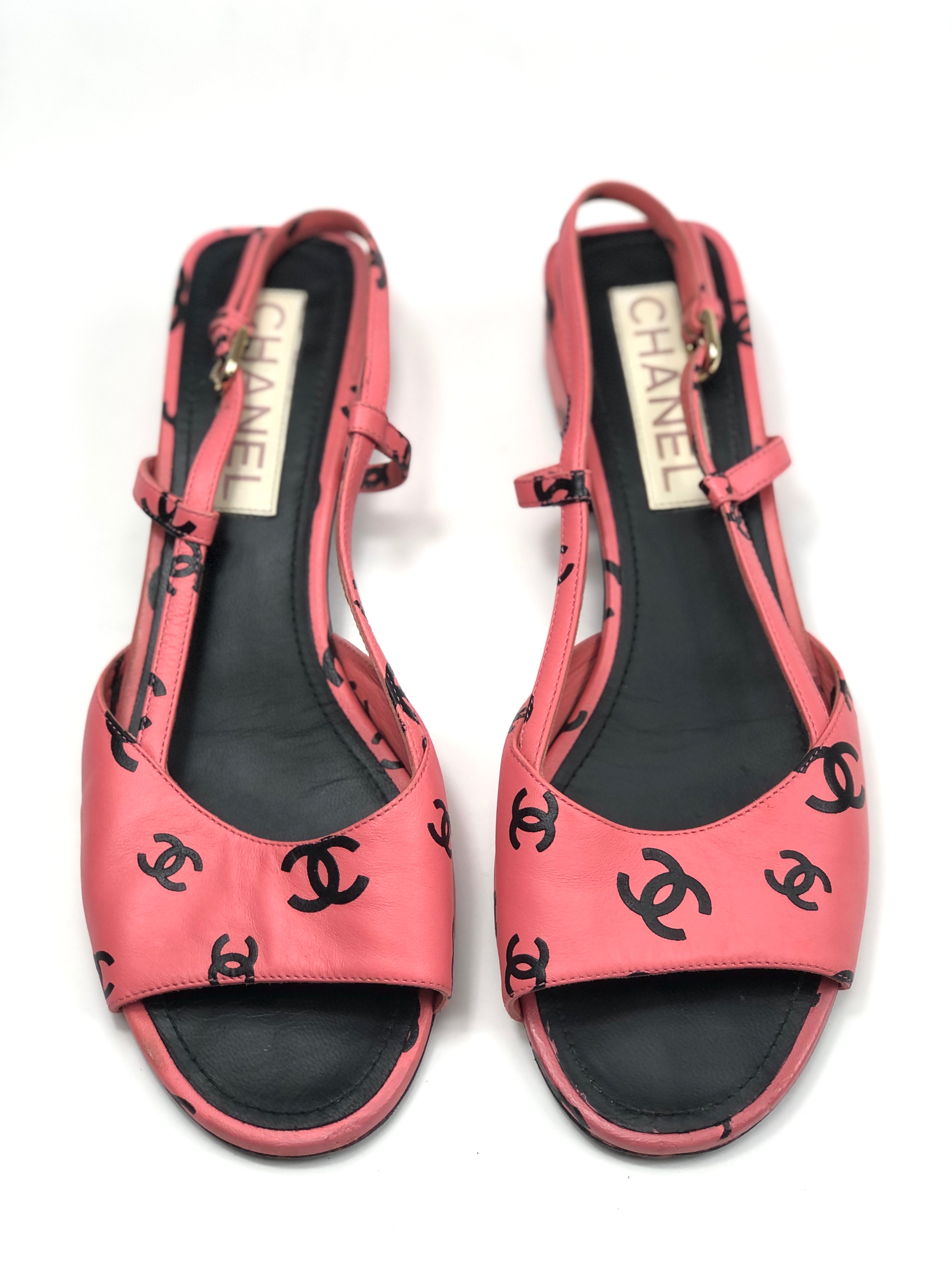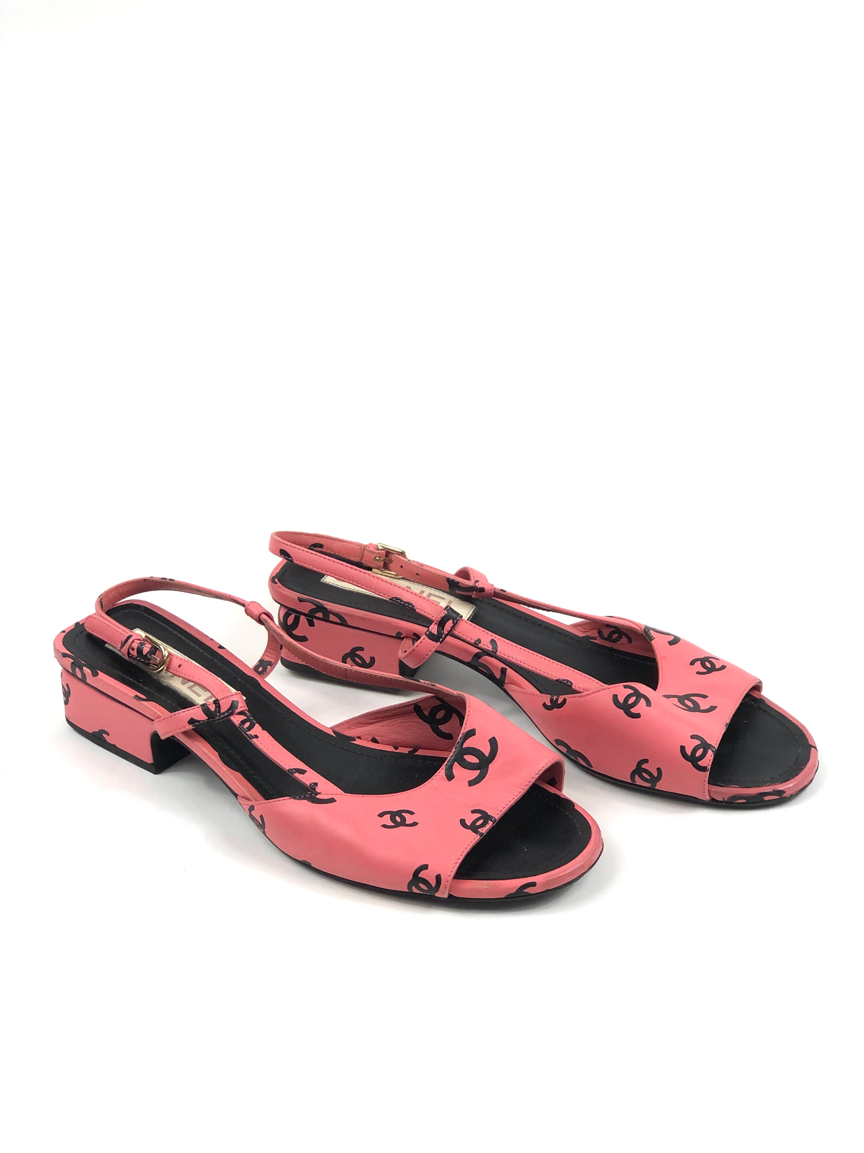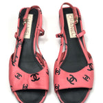 Pink/Black CC Print Leather Slingback Sandals / CHANEL - Size 39